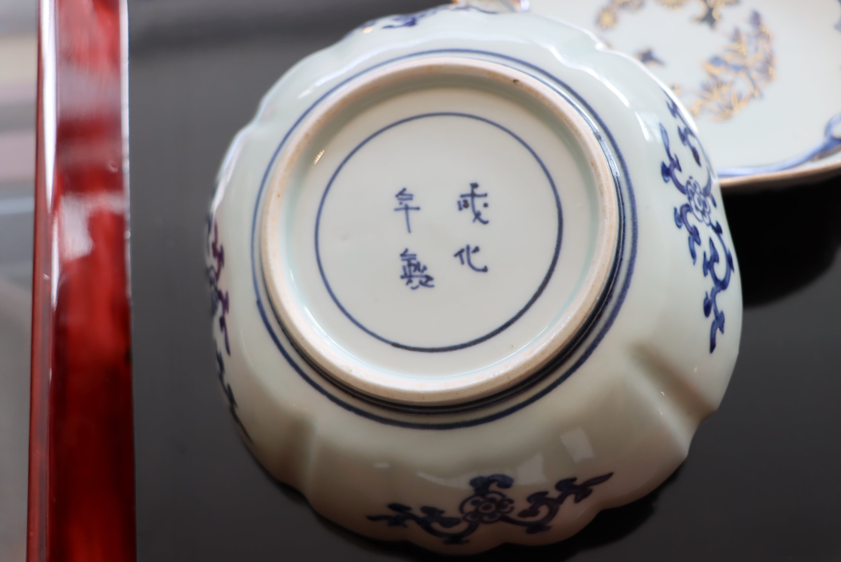 状態:口縁に施された金彩が一部剥離、及び、薄くなっています。