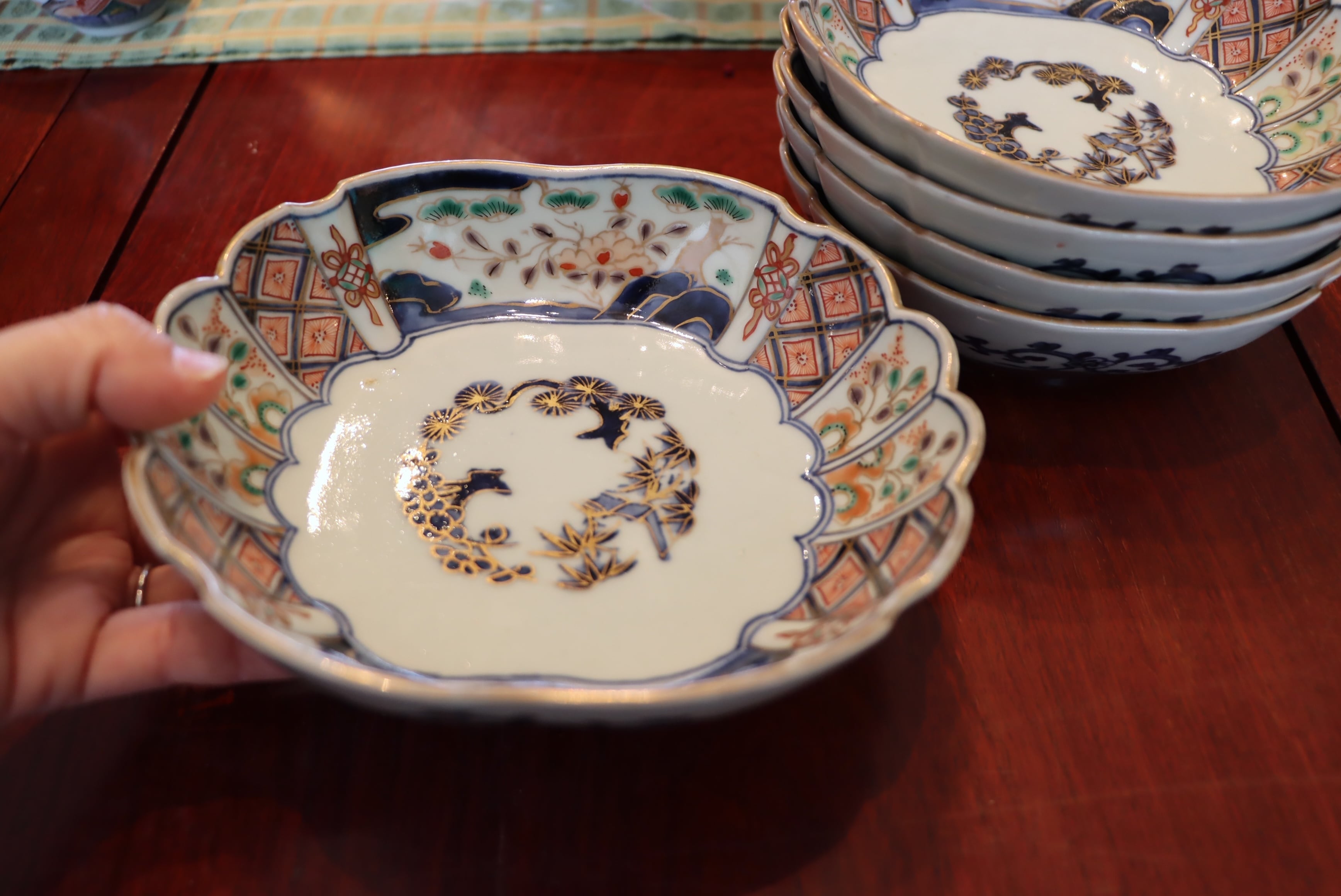 古伊万里 色絵 松竹梅文 木瓜形 変形皿/Old Imari quince shaped plate