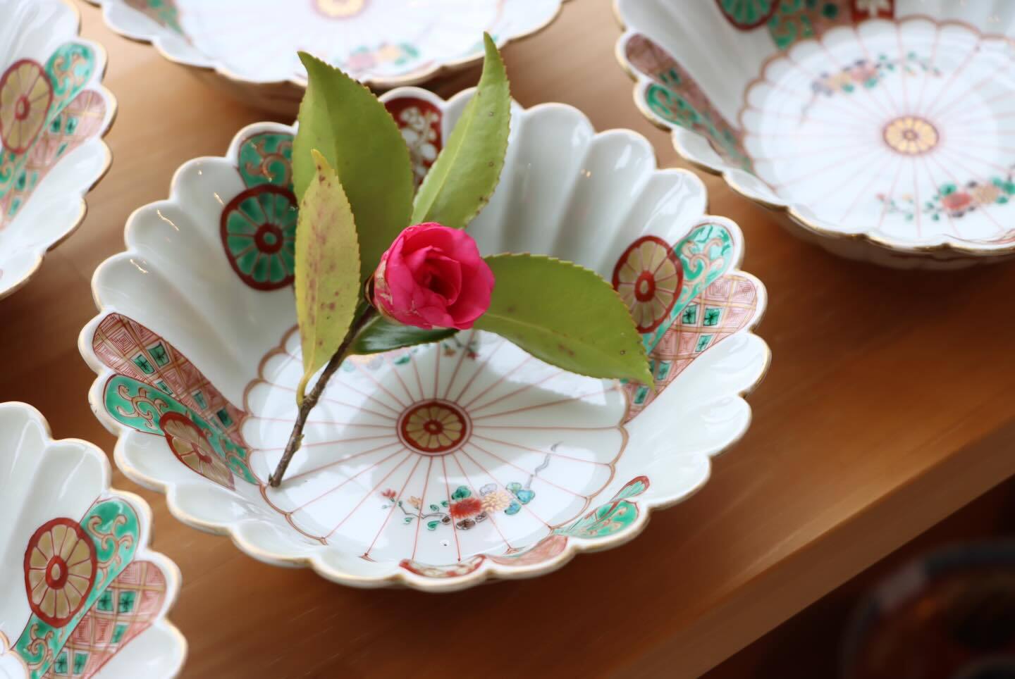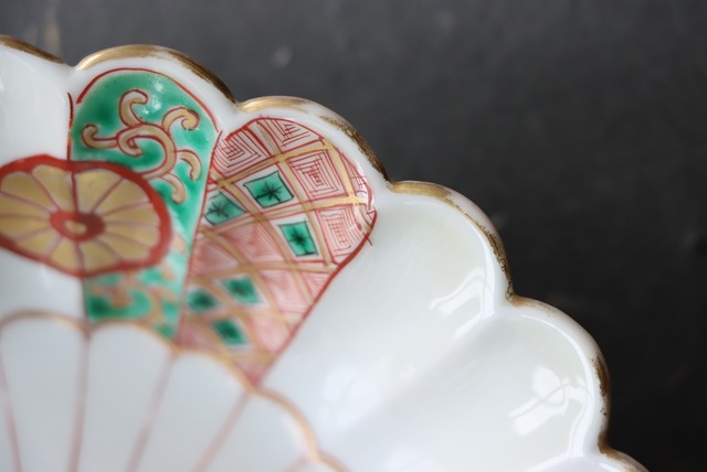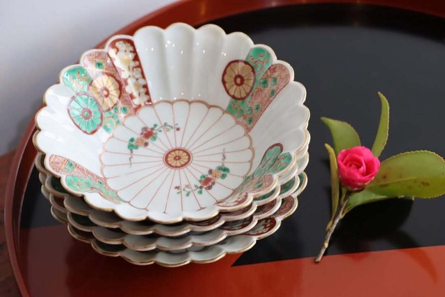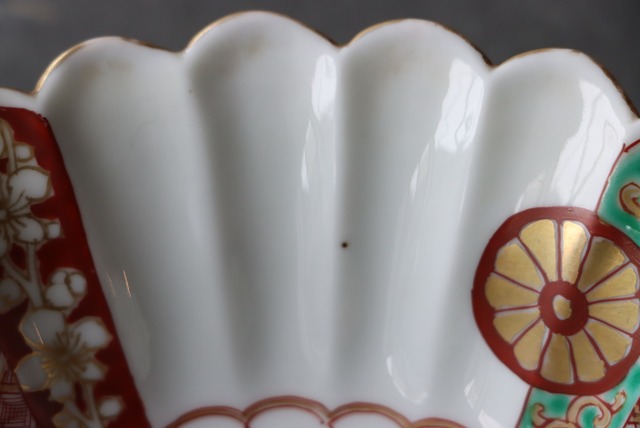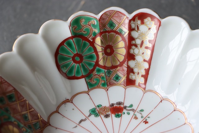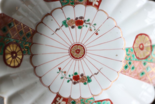 【Daisyo-ji Imari chrysanthemum shaped "Namasu" bowl with chrysanthemum design in overglaze enamels.】