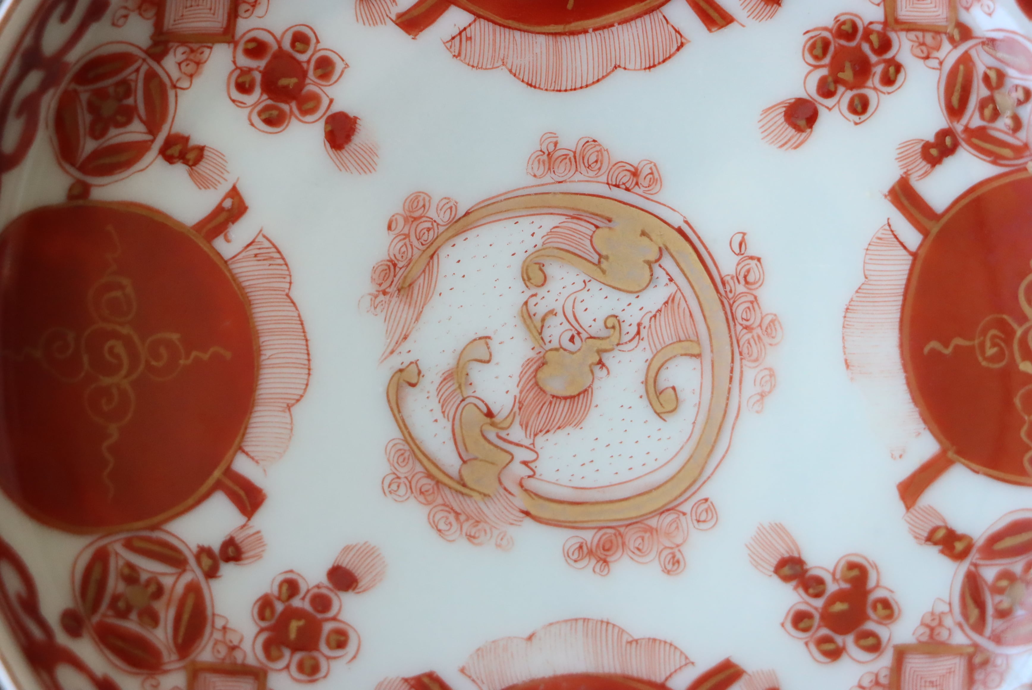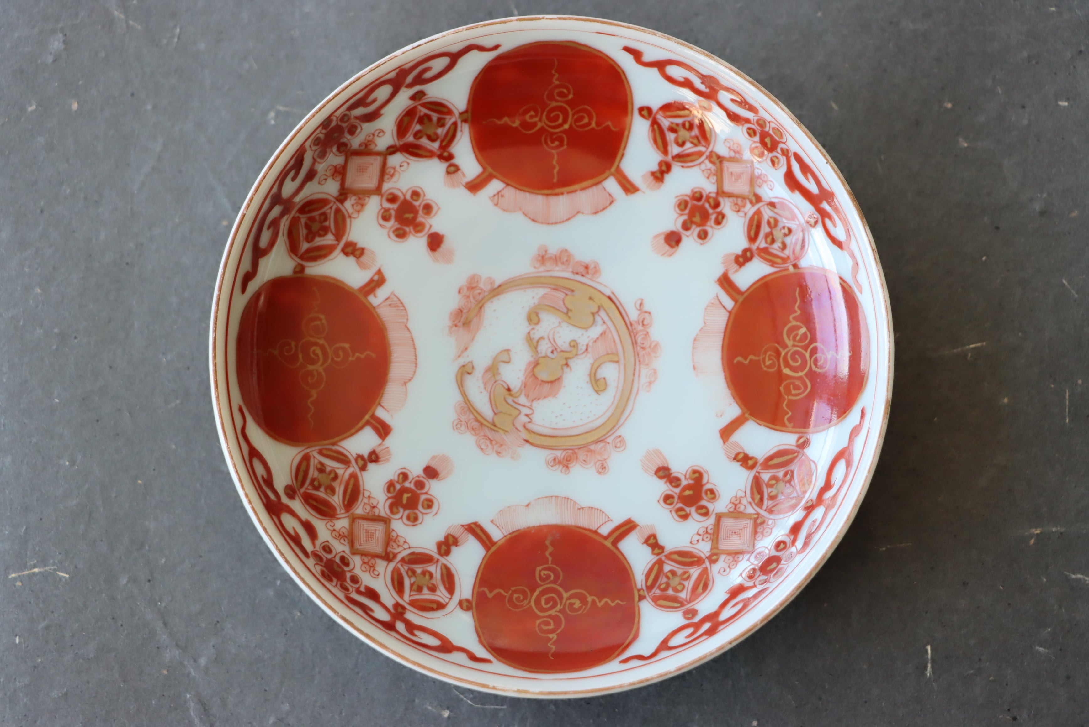 【Kutani small plate with "Akadama Yoraku pattern in red glaze enamels.】