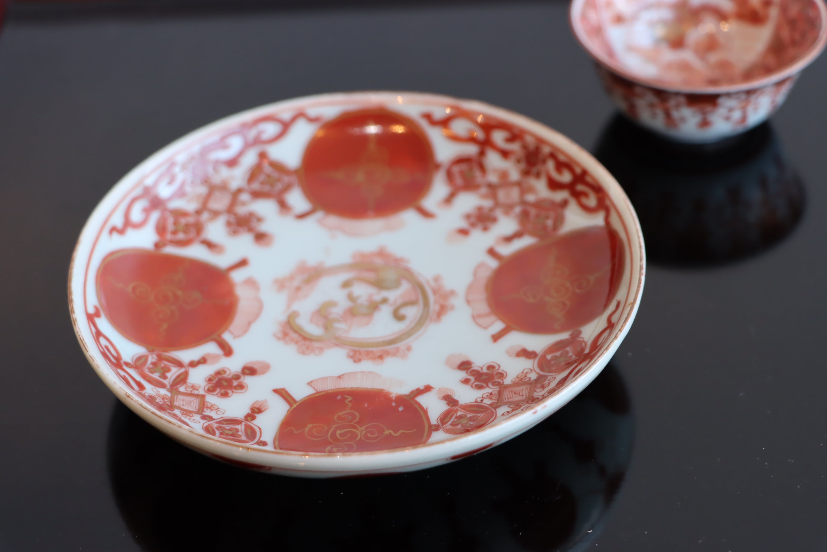 九谷焼 赤絵 赤玉瓔珞文 小皿/Kutani small plate