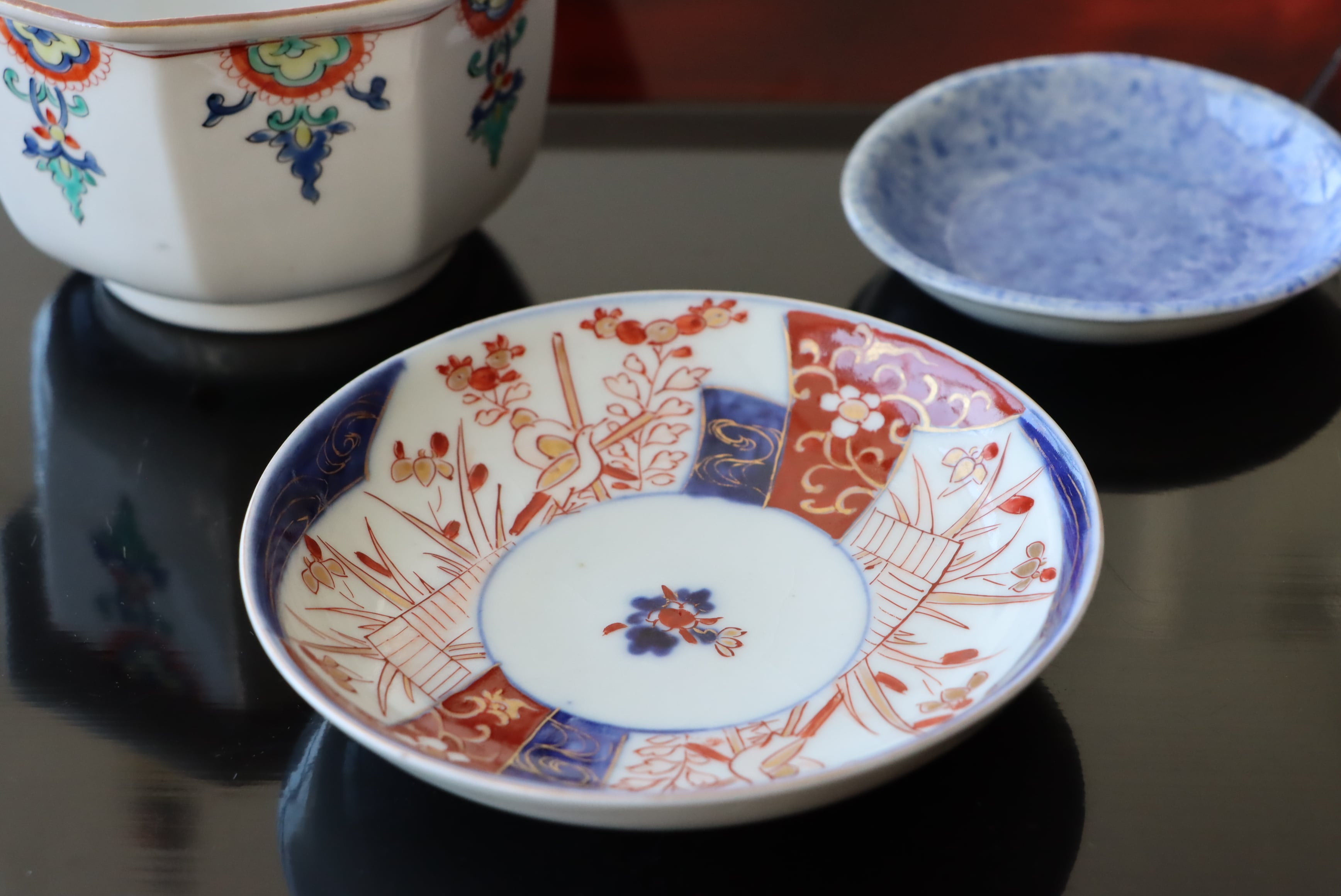赤絵のあたたかな色合いと、藍の引き締まったライン。