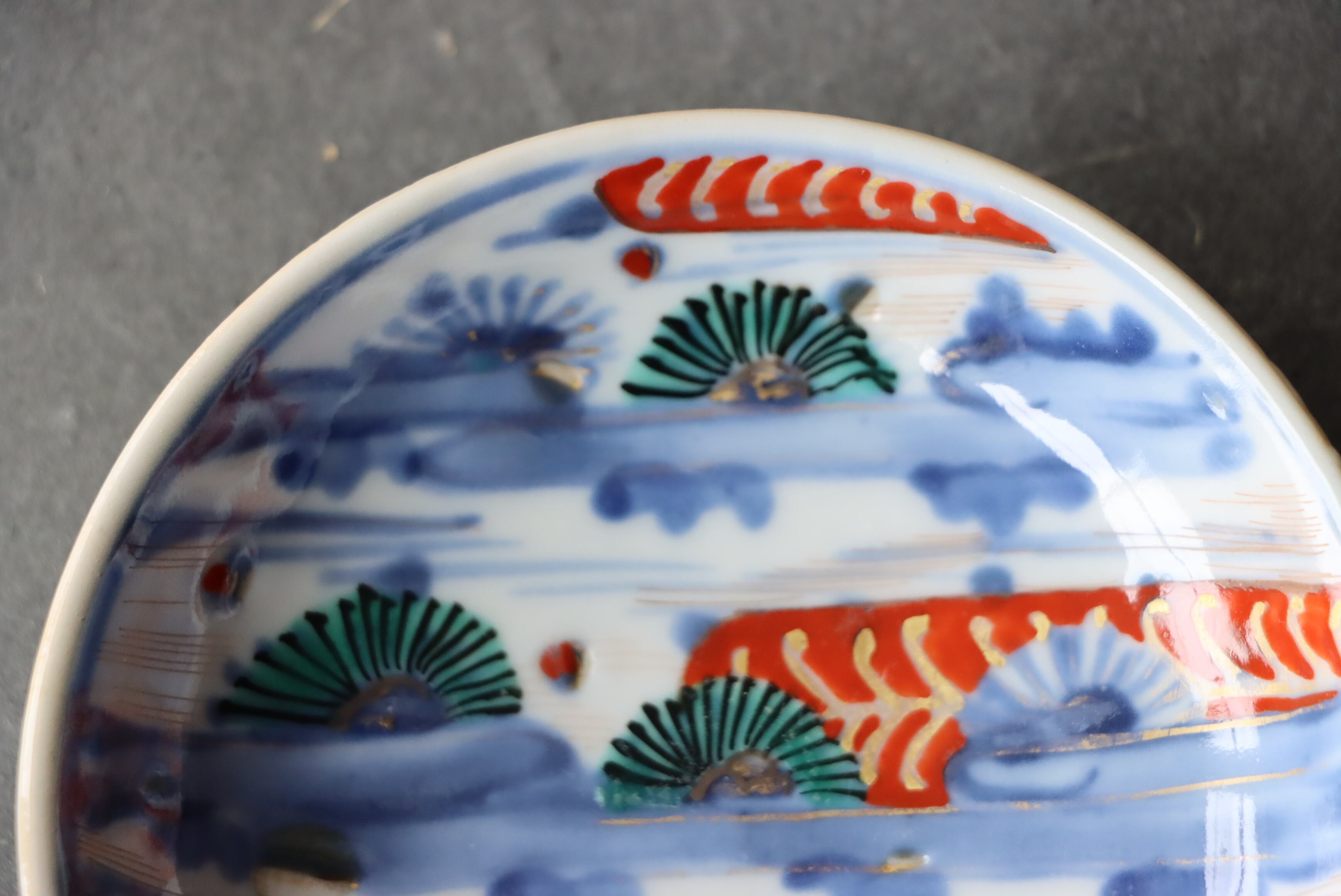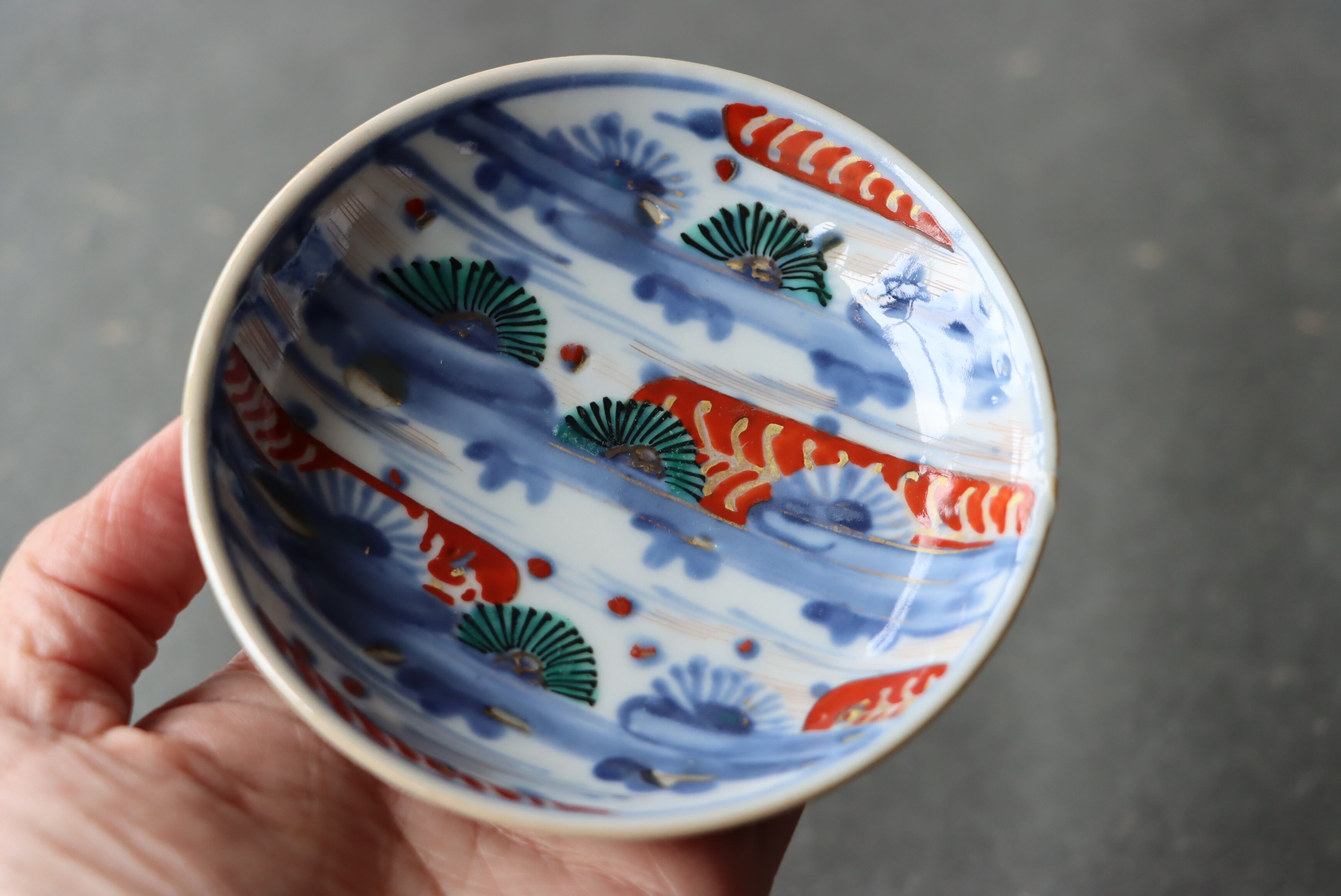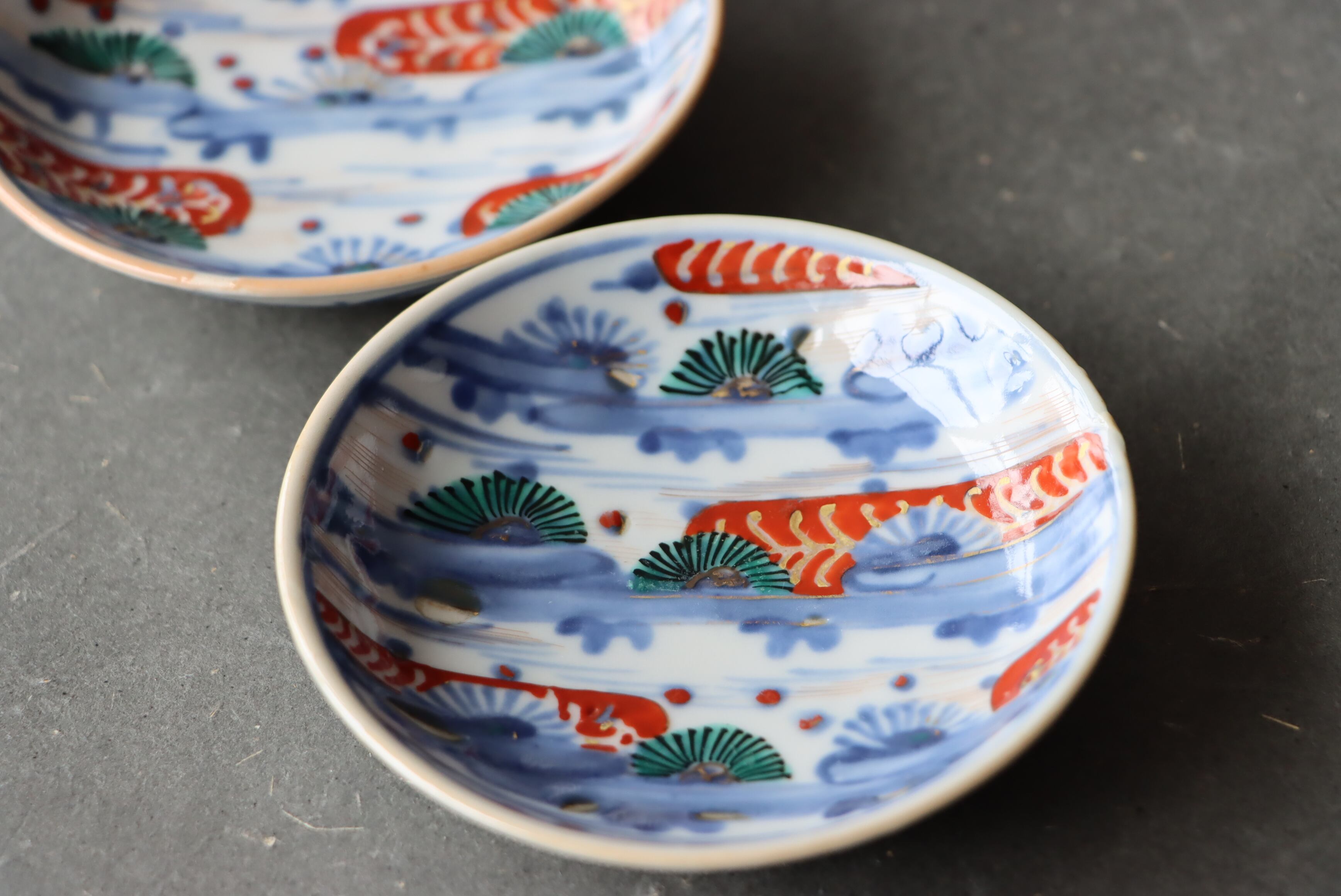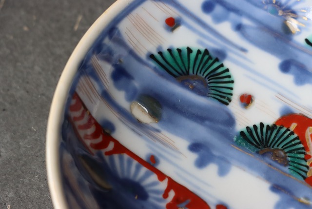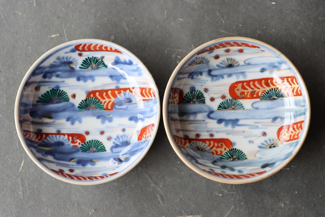 焼成時に窯の中でできる鉄分、くっつき、かまきず、ピンホール、経年による釉薬の薄れがございます。また、一枚一枚手描き、手作りですので器のサイズ(ミリ)、色味、描かれている文様の大きさなど個体差があり、ひとつとして同じものはございません。そういった時代感、個性をご理解いただき、楽しんでくだされば幸いです。電子レンジや食器洗い乾燥機のご使用はお控えください。