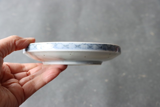 焼成時に窯の中でできる鉄分、くっつき、かまきず、ピンホール、経年による釉薬の薄れがございます。また、一枚一枚手描き、手作りですので器のサイズ(ミリ)、色味、描かれている文様の大きさなど個体差があり、ひとつとして同じものはございません。そういった時代感、個性をご理解いただき、楽しんでくだされば幸いです。電子レンジや食器洗い乾燥機のご使用はお控えください。