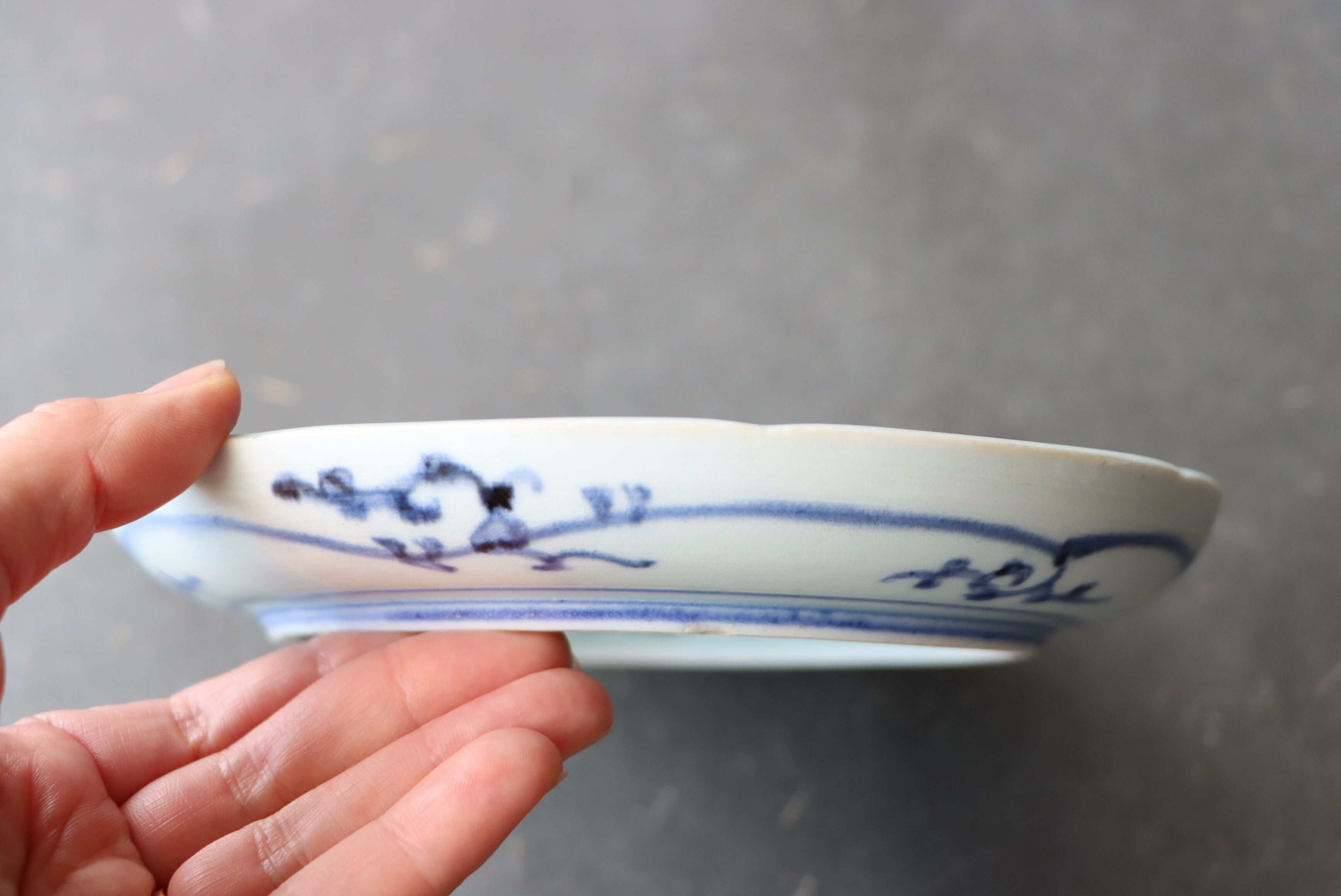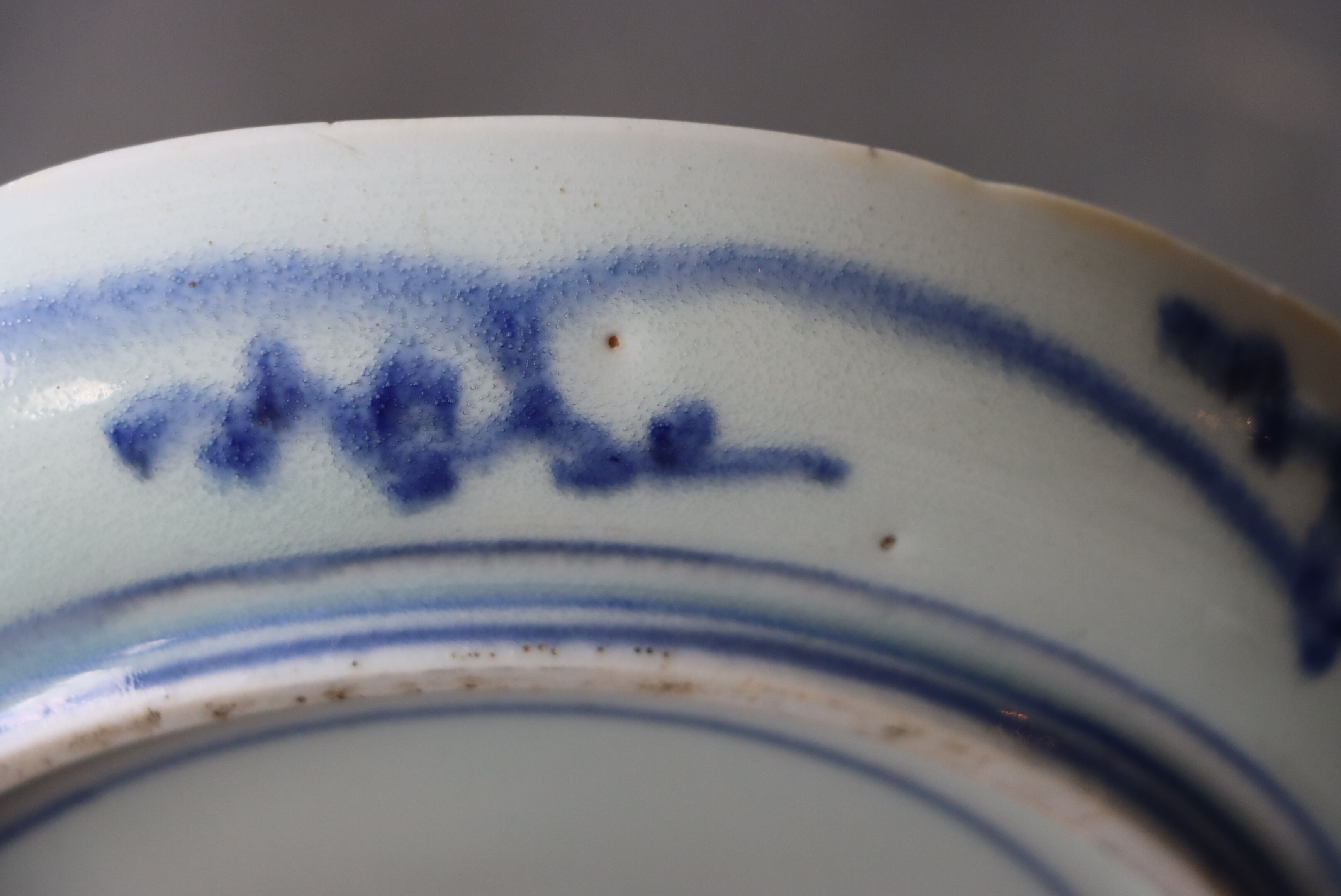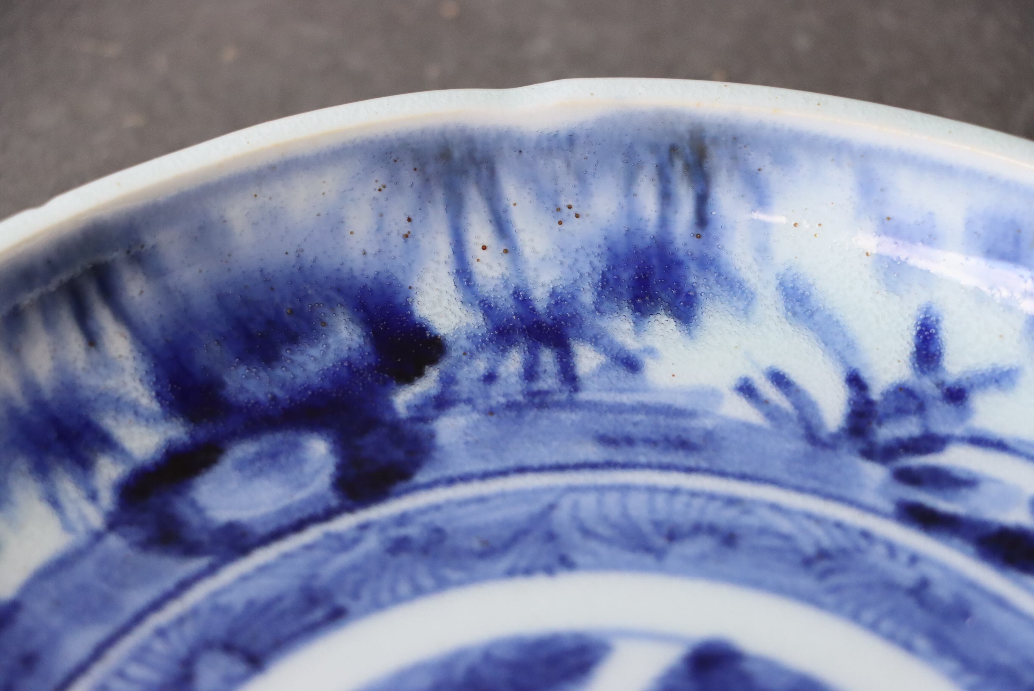 焼成時に窯の中でできる鉄分、くっつき、かまきず、ピンホール、経年による釉薬の薄れがございます。また、一枚一枚手描き、手作りですので器のサイズ(ミリ)、色味、描かれている文様の大きさなど個体差があり、ひとつとして同じものはございません。そういった時代感、個性をご理解いただき、楽しんでくだされば幸いです。電子レンジや食器洗い乾燥機のご使用はお控えください。