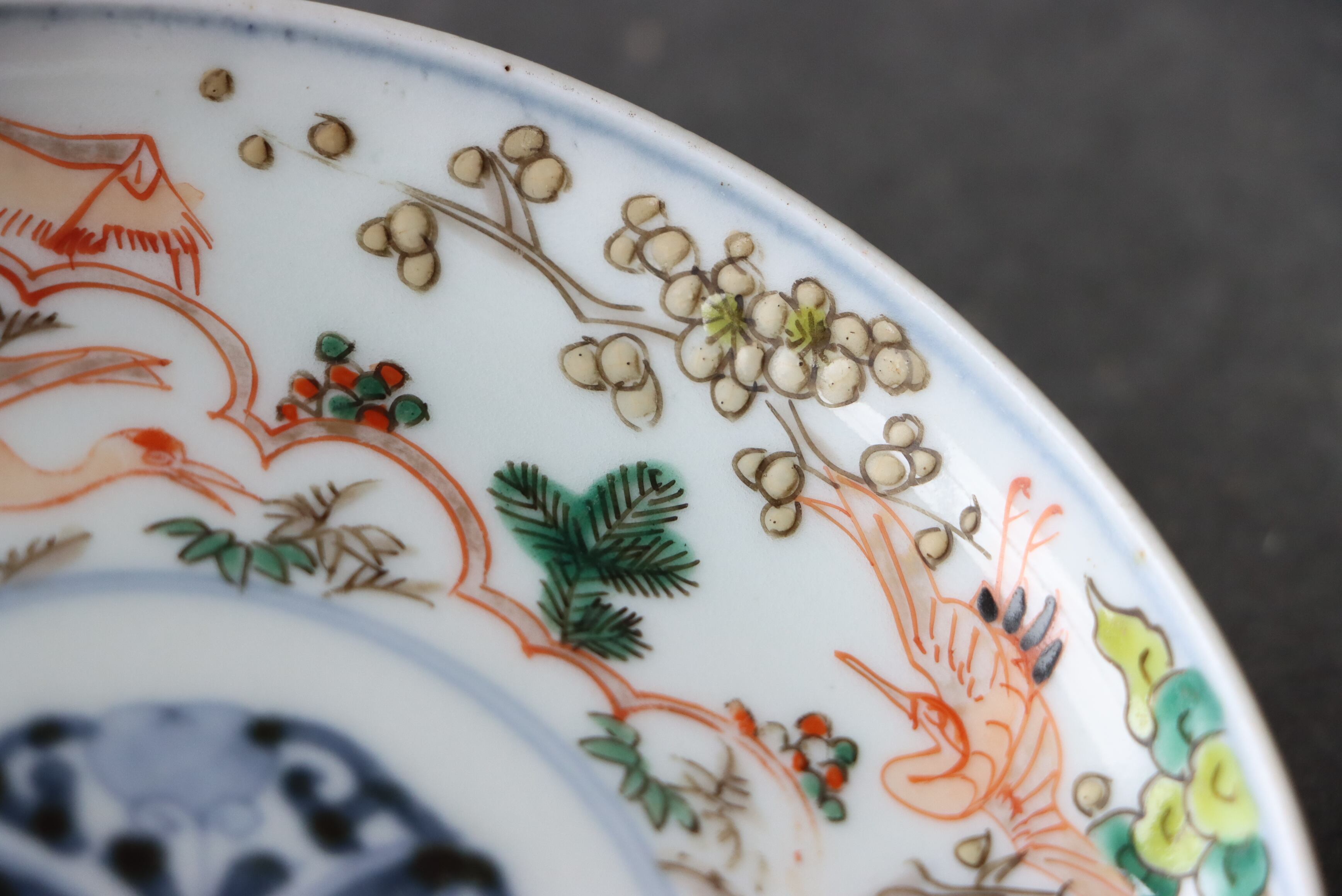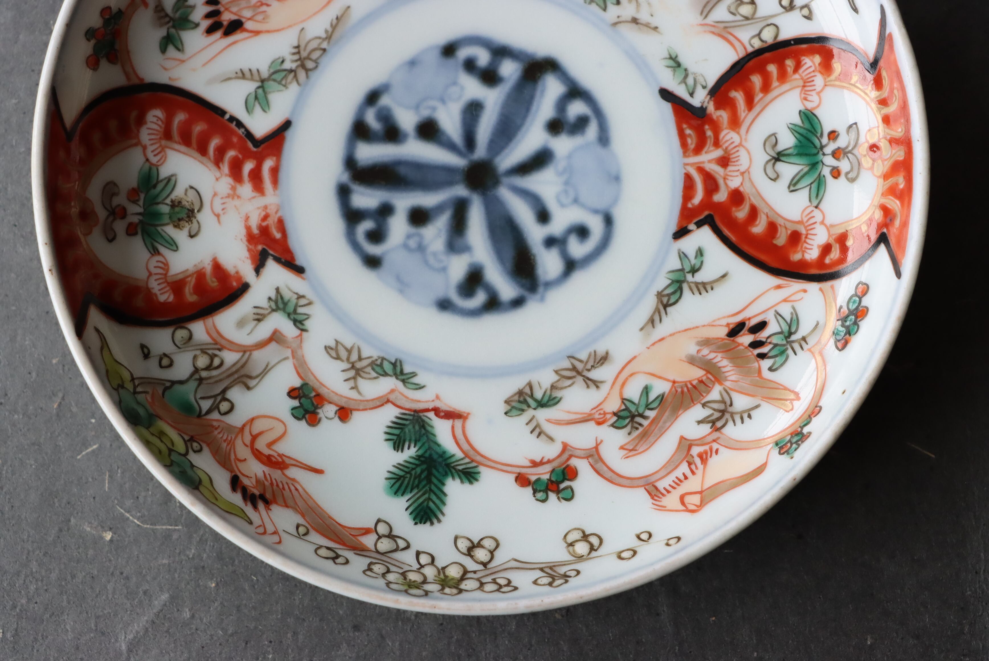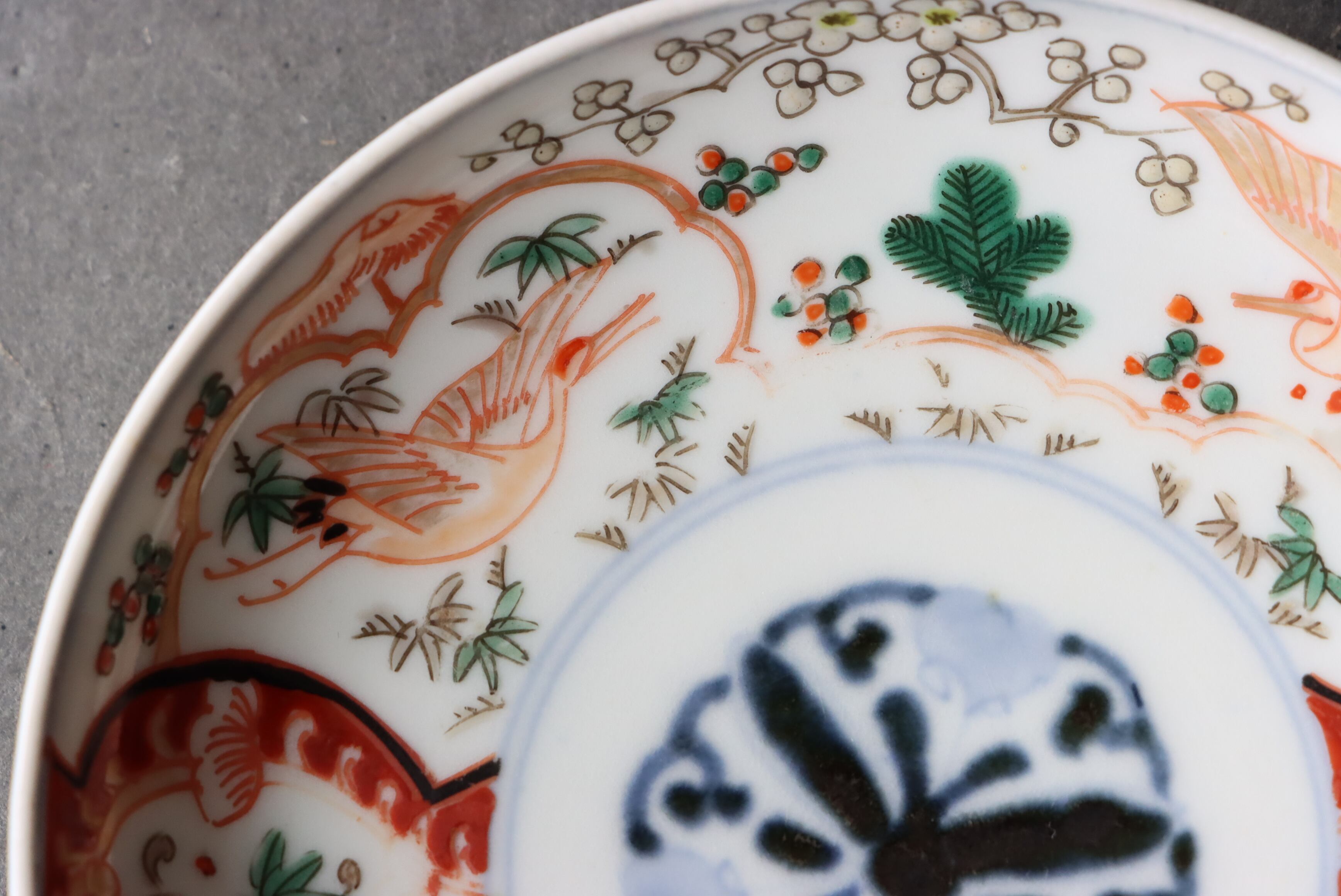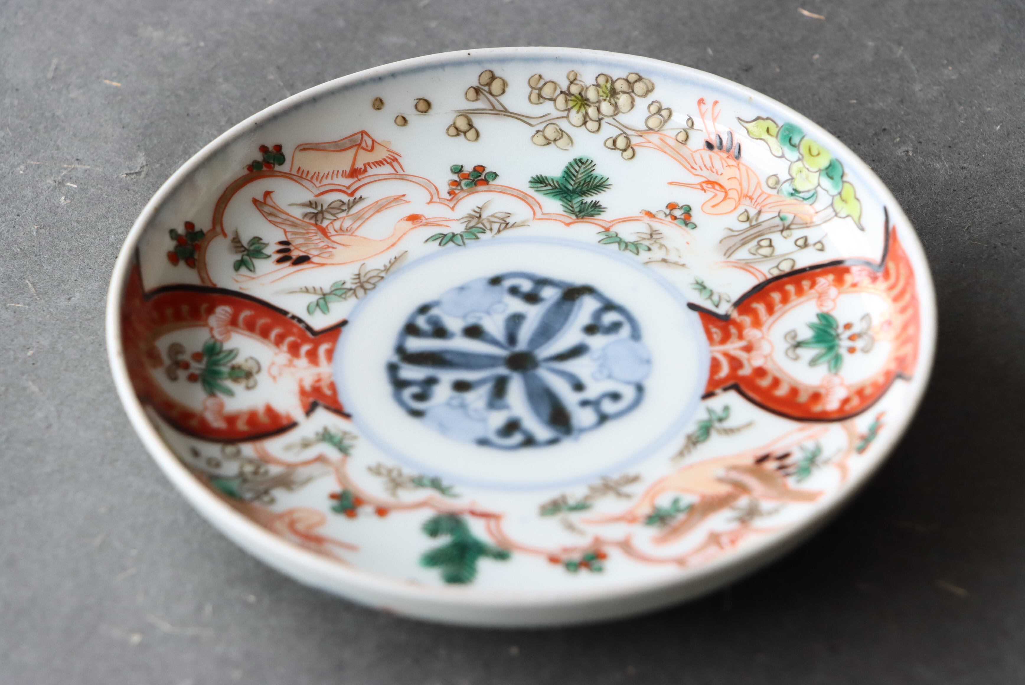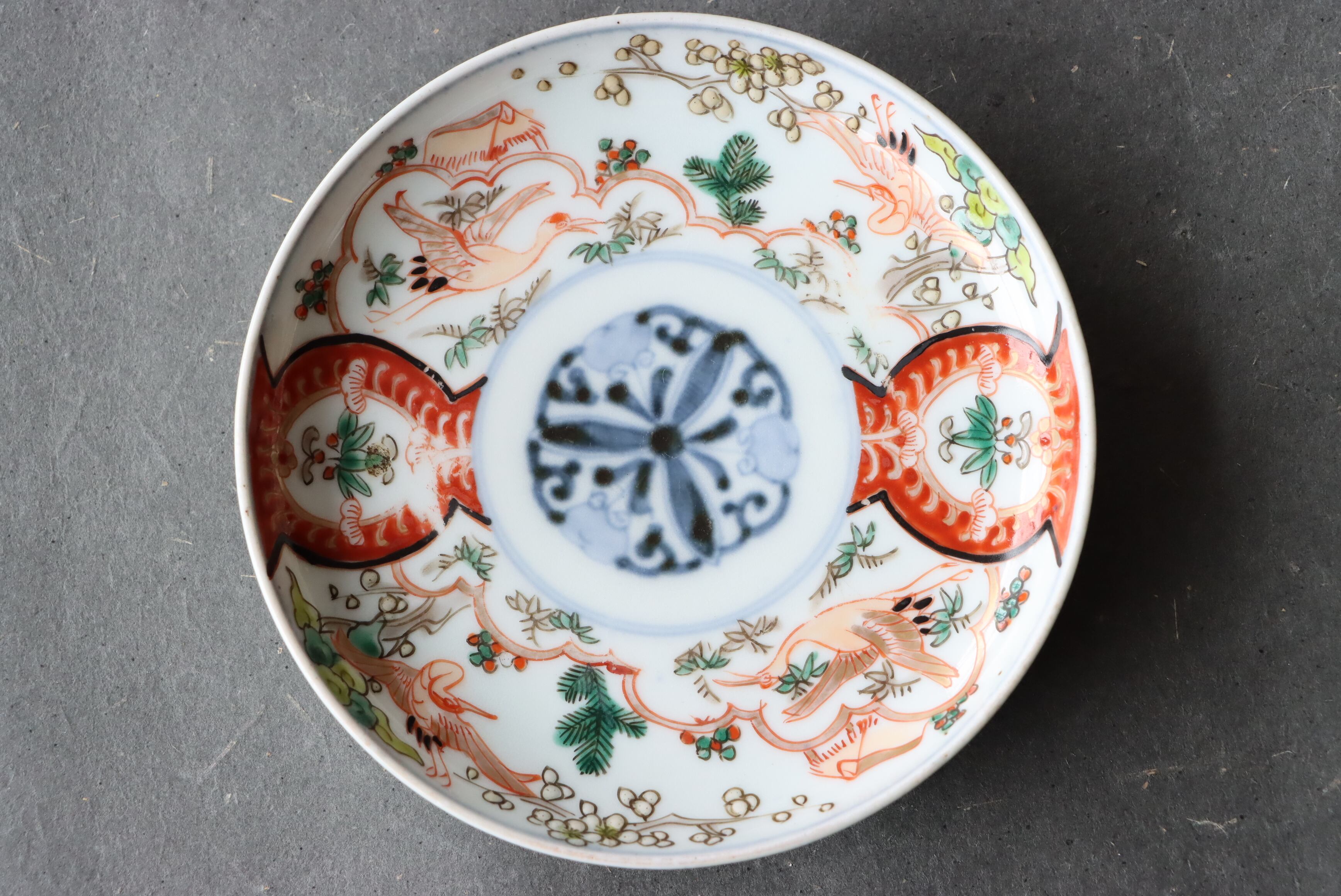 【Imari small plate with crane, pine, bamboo and plum design in overglaze enamels.】
