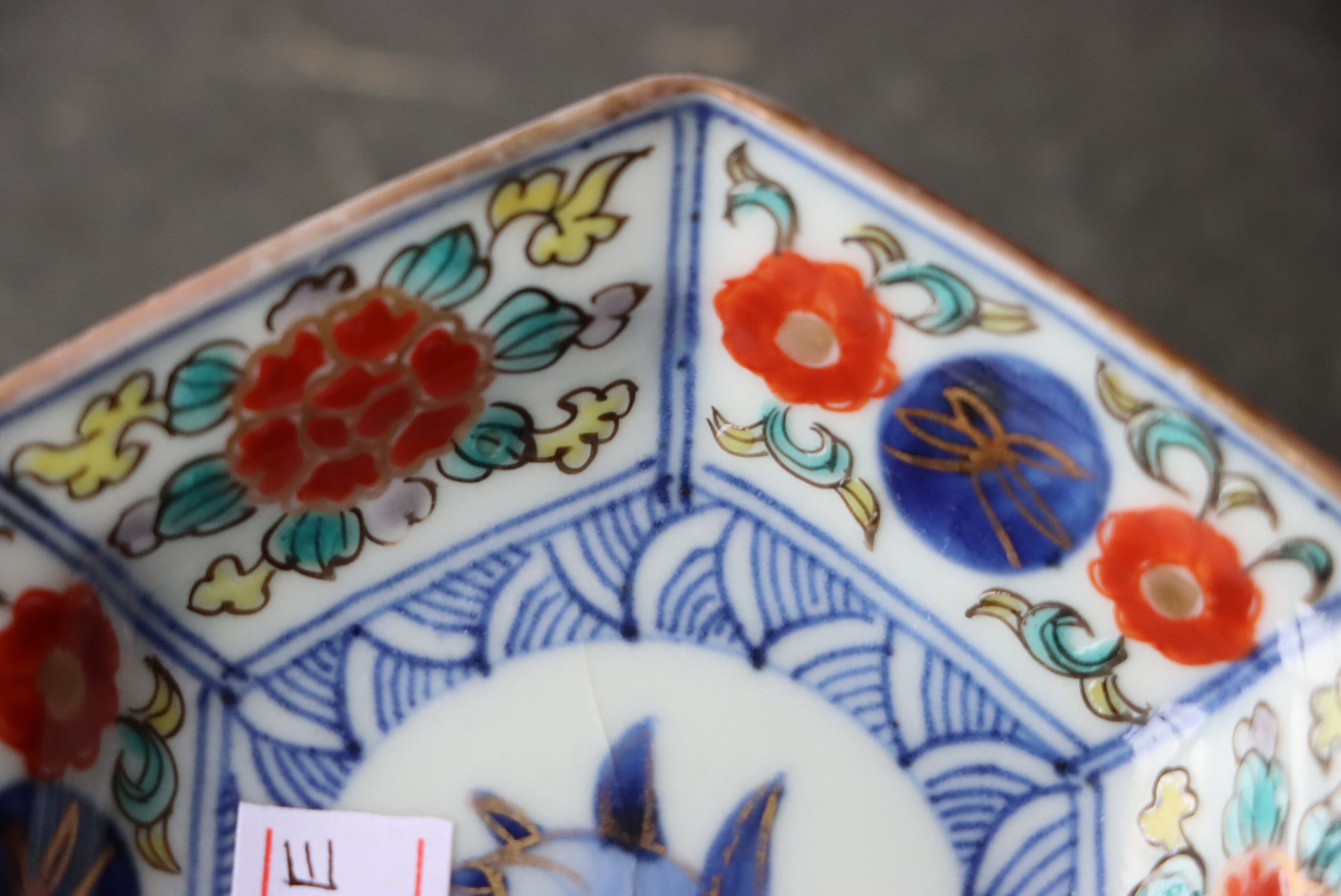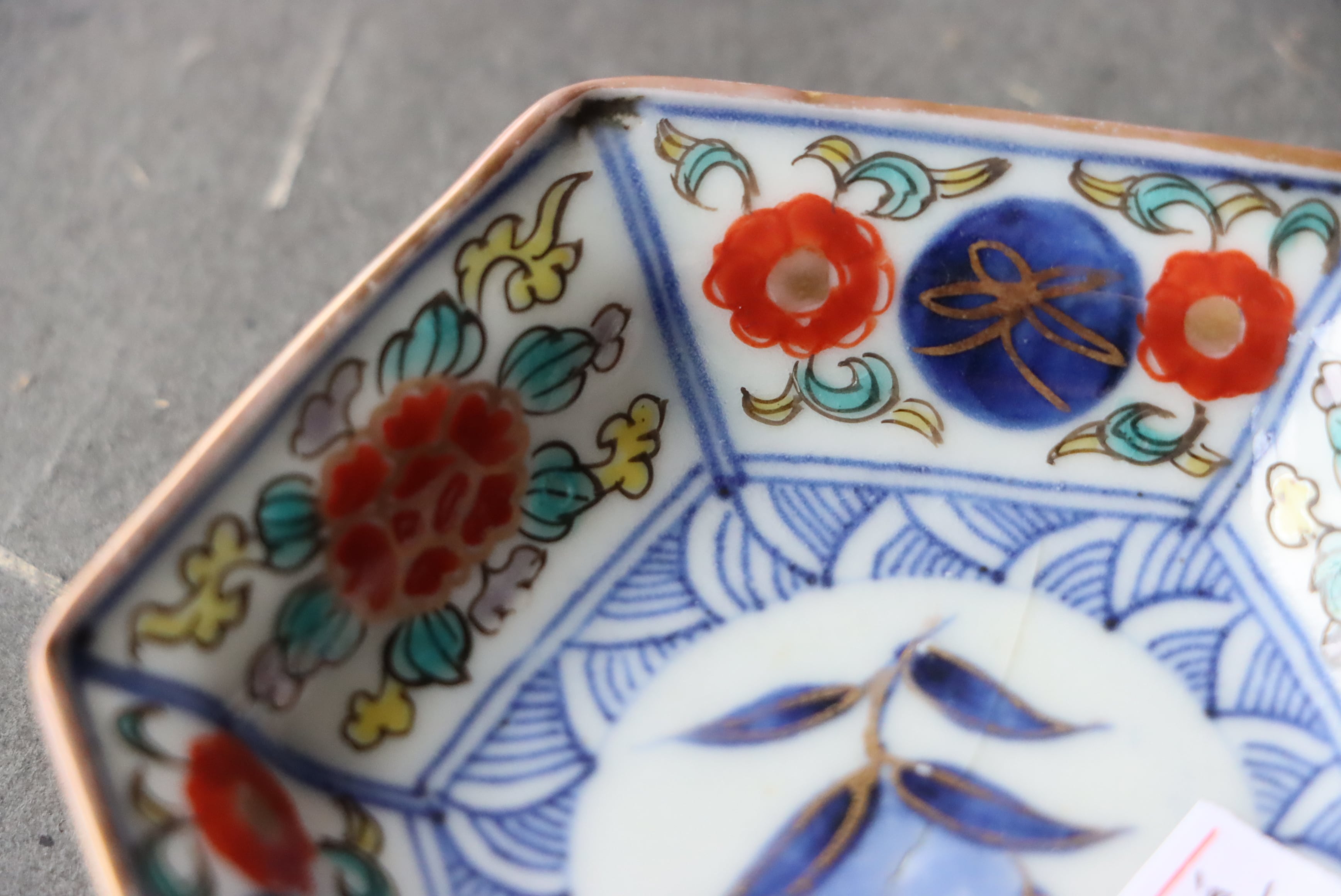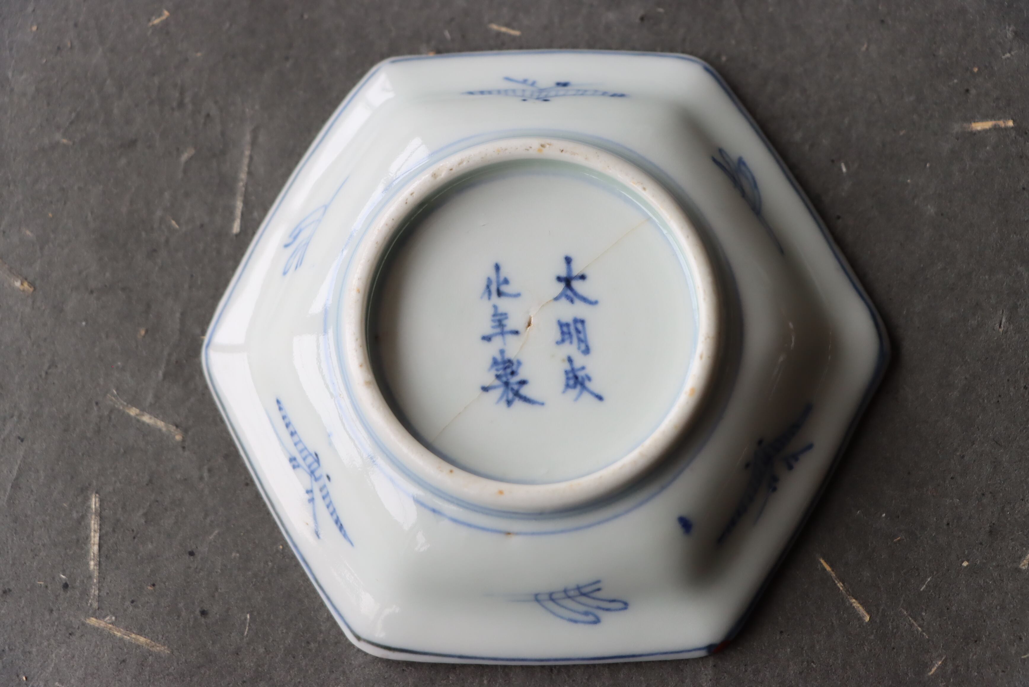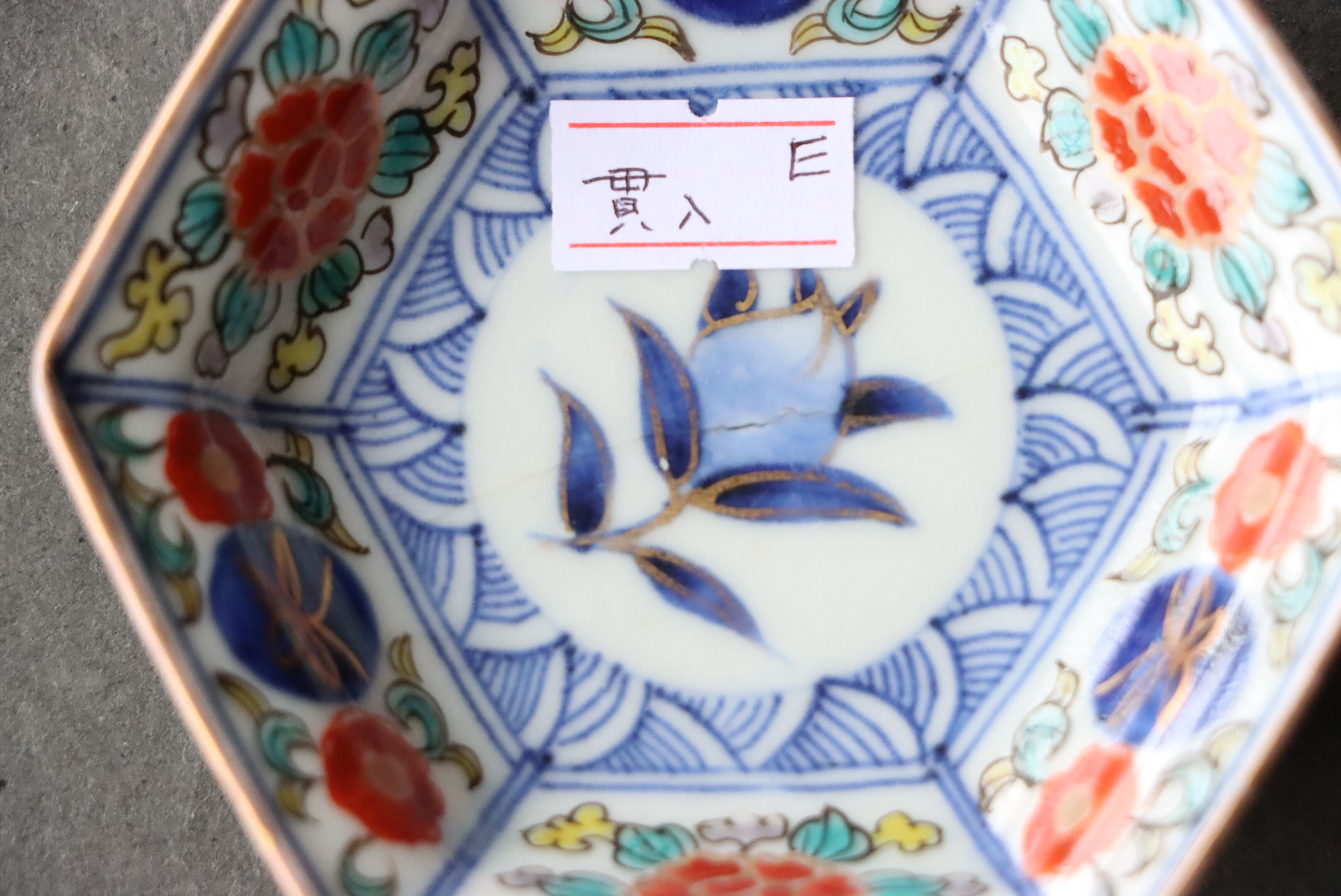 貫入 大聖寺伊万里 桃手 花文 六角形 豆皿 E アウトレット