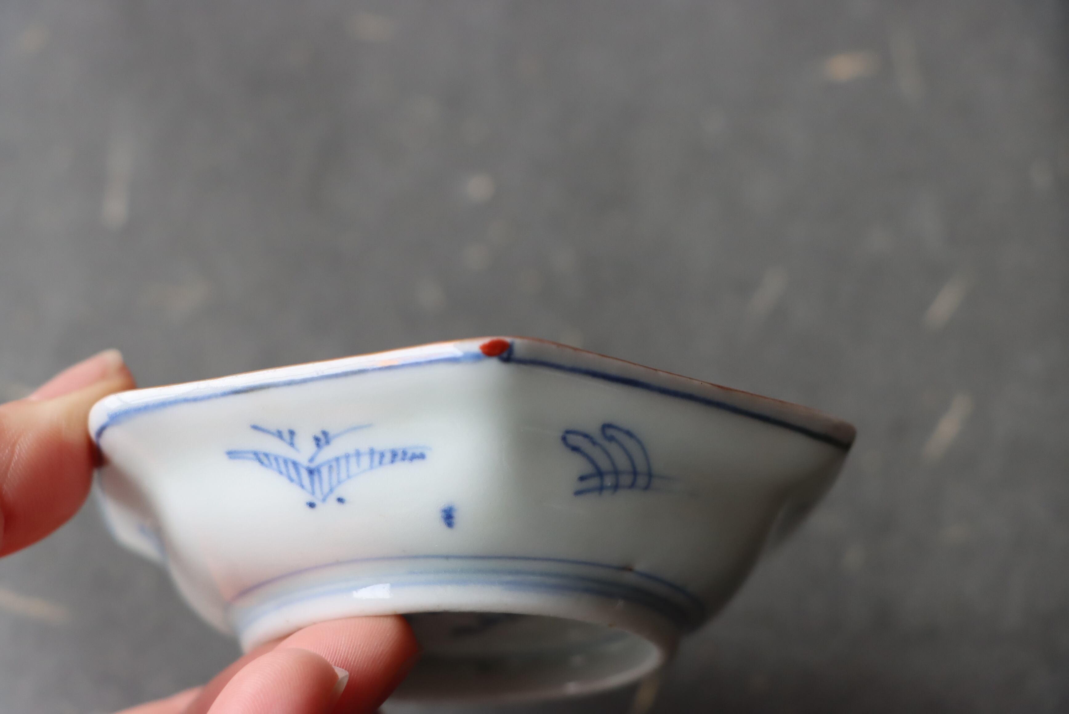 焼成時に窯の中でできる鉄分、くっつき、かまきず、ピンホール、経年による釉薬の薄れがございます。また、一枚一枚手描き、手作りですので器のサイズ(ミリ)、色味、描かれている文様の大きさなど個体差があり、ひとつとして同じものはございません。そういった時代感、個性をご理解いただき、楽しんでくだされば幸いです。電子レンジや食器洗い乾燥機のご使用はお控えください。