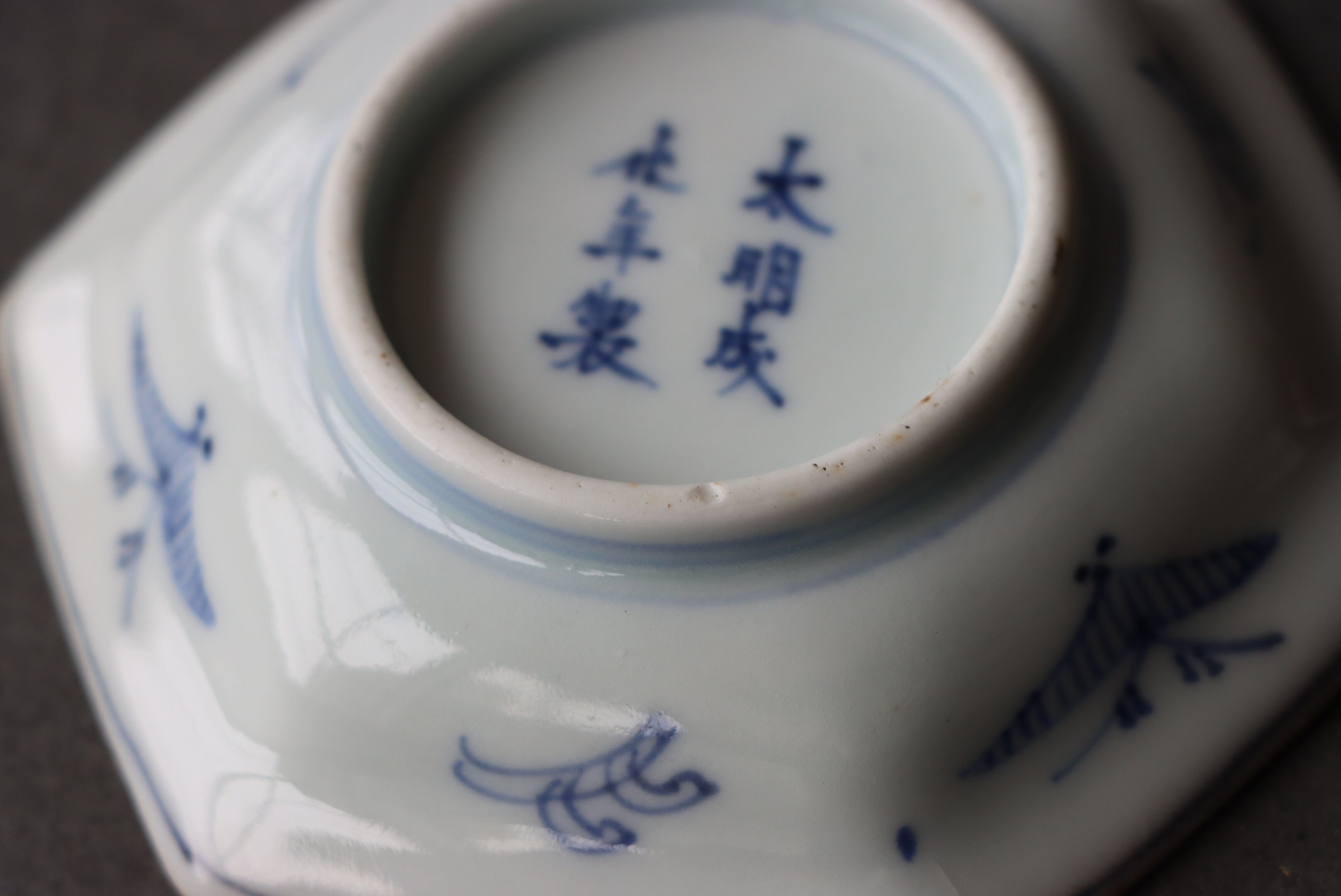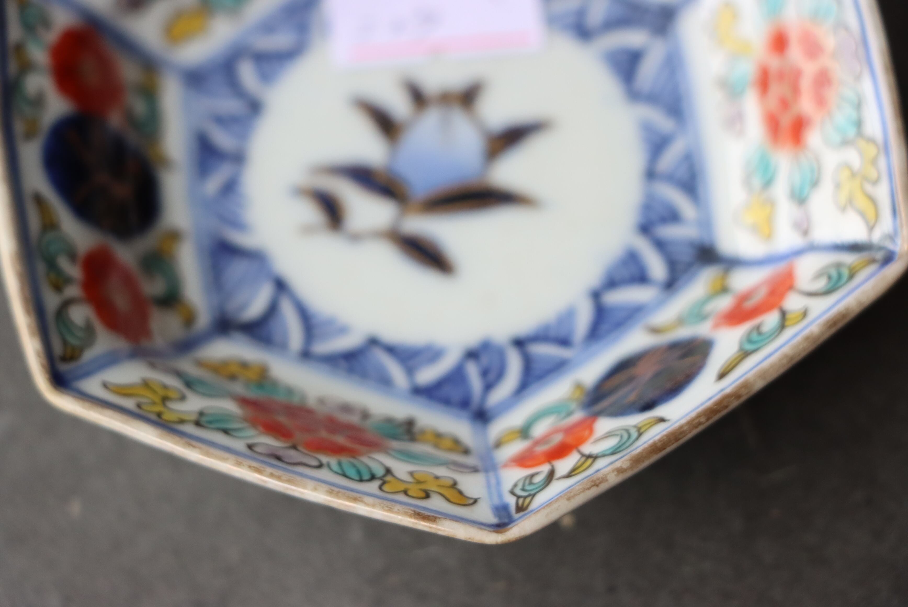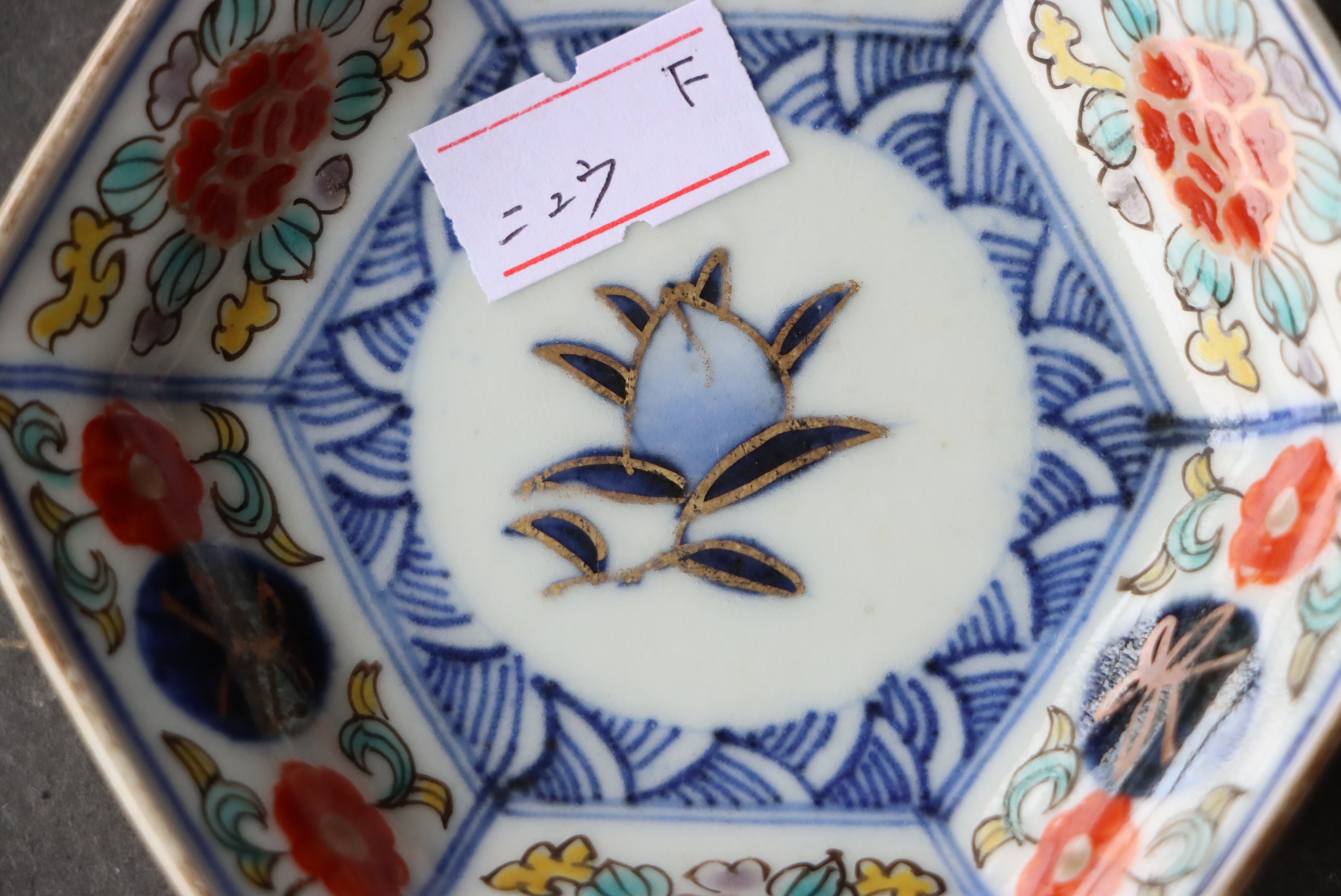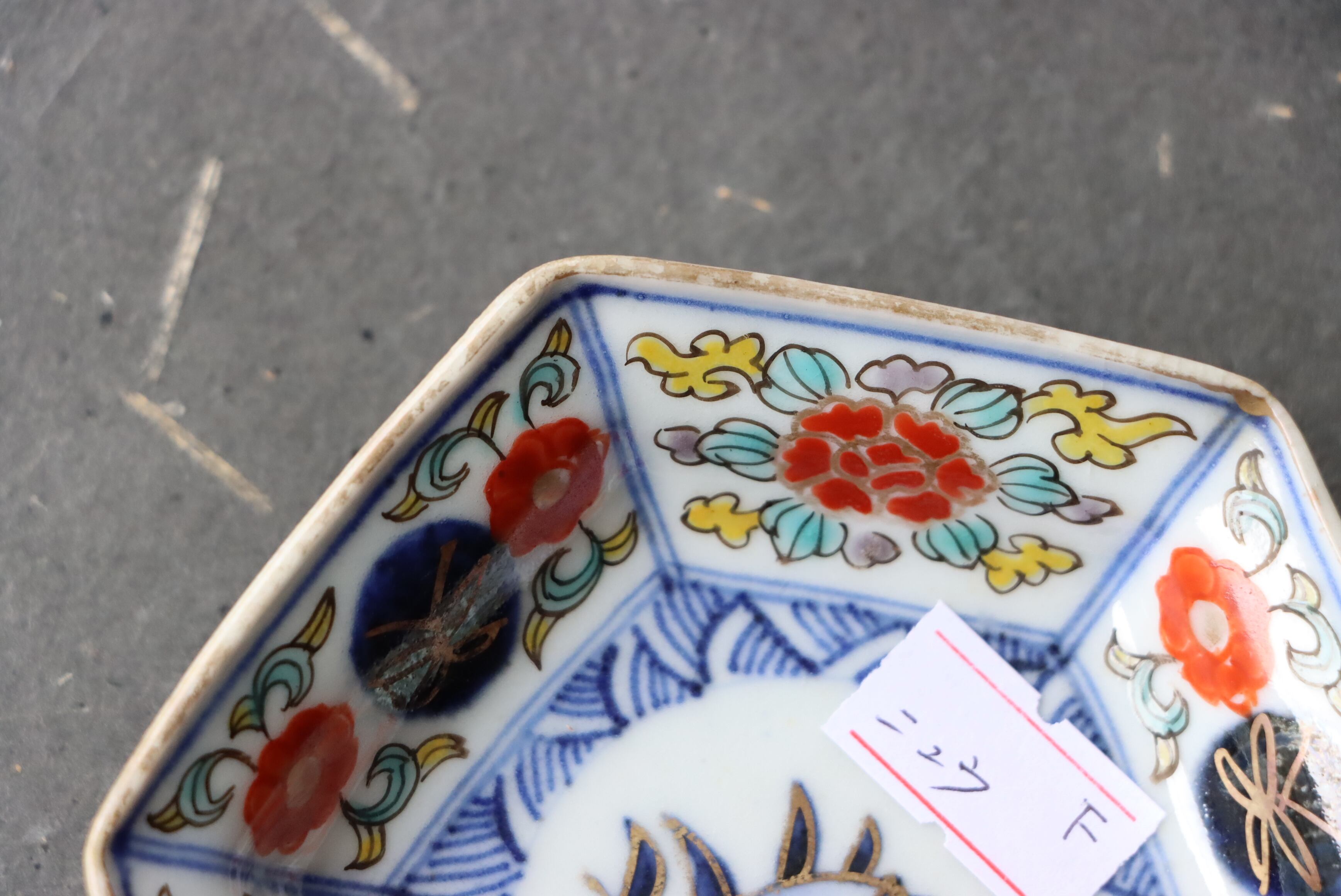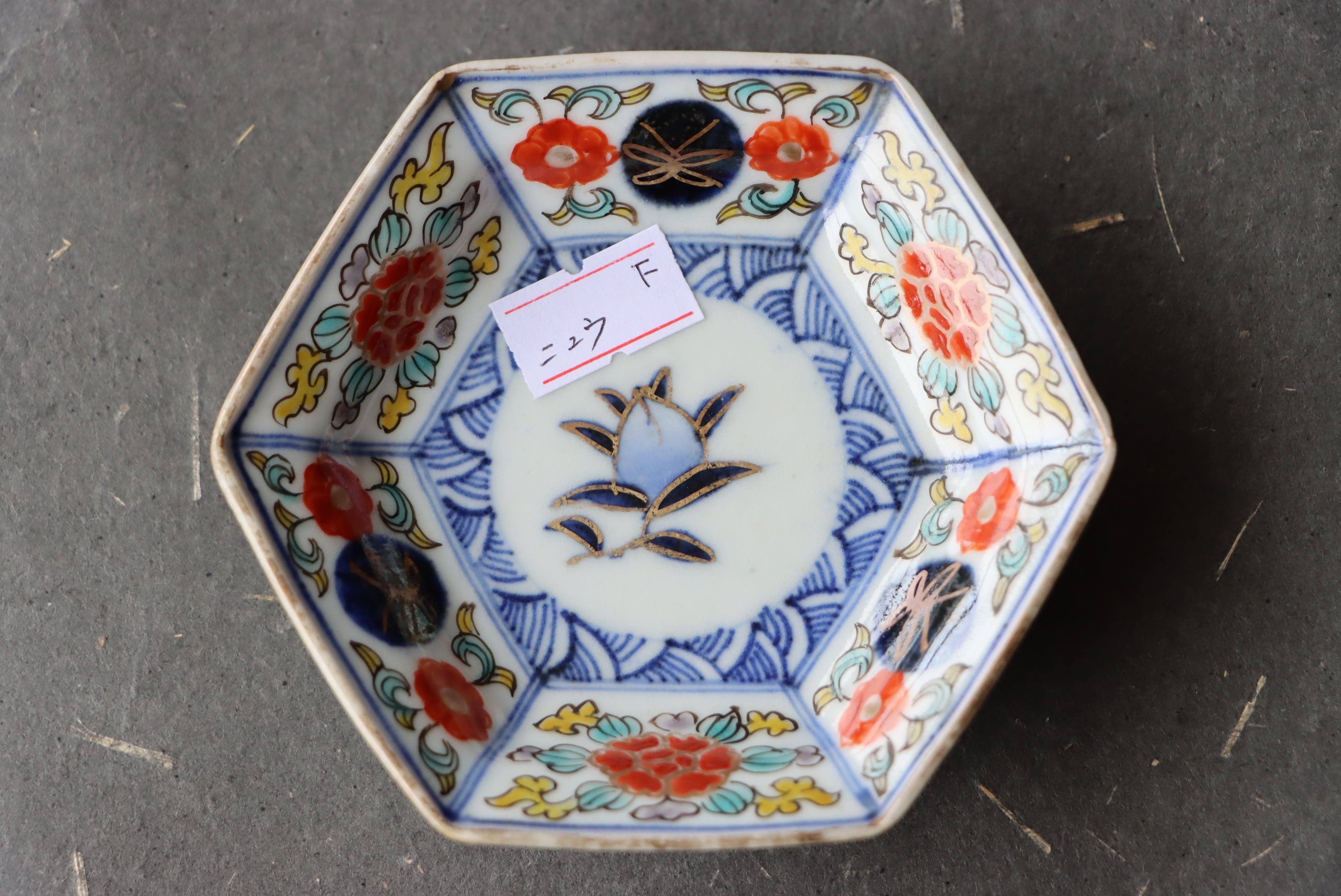 ニュウ ×2 大聖寺伊万里 桃手 花文 六角形 豆皿 F アウトレット