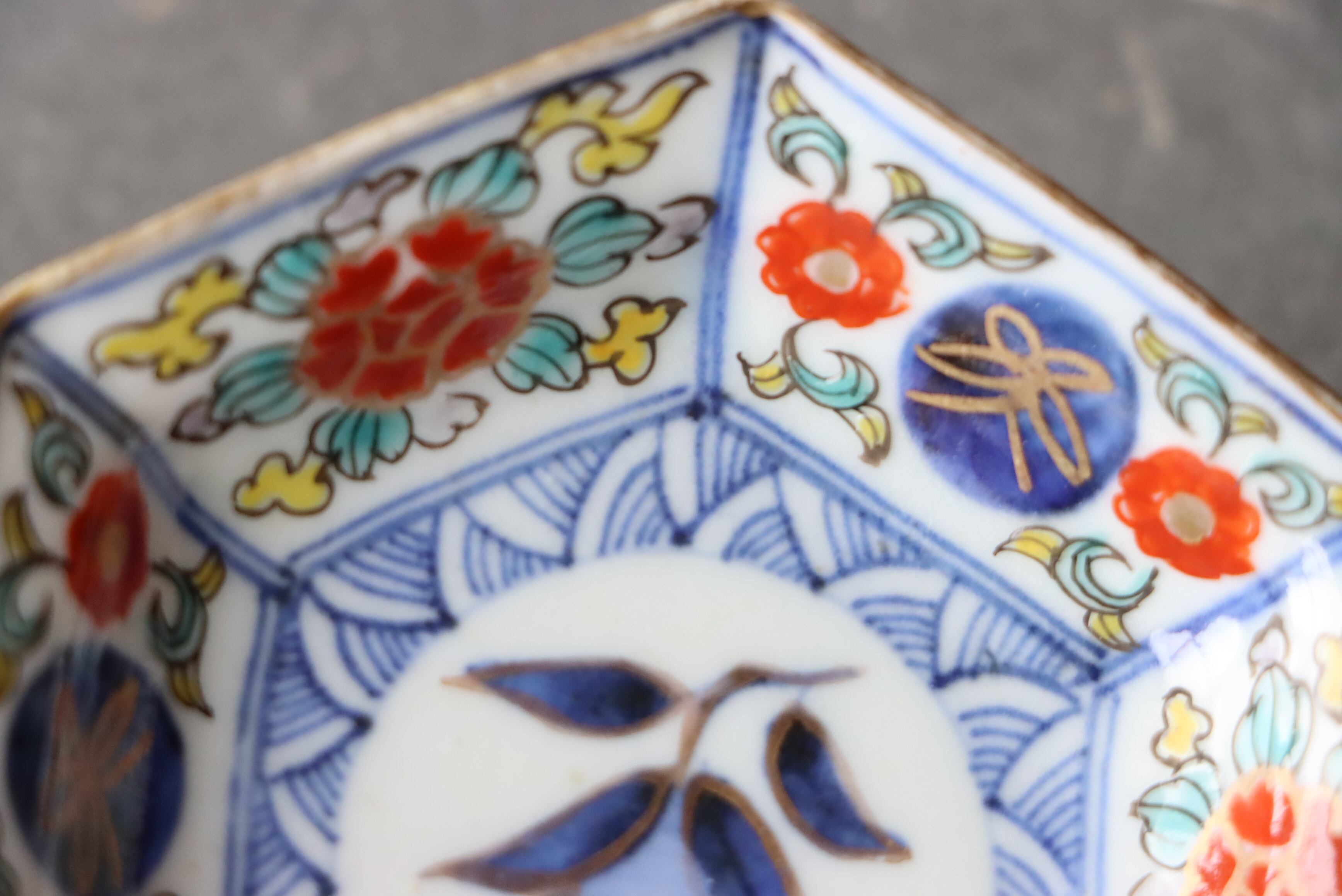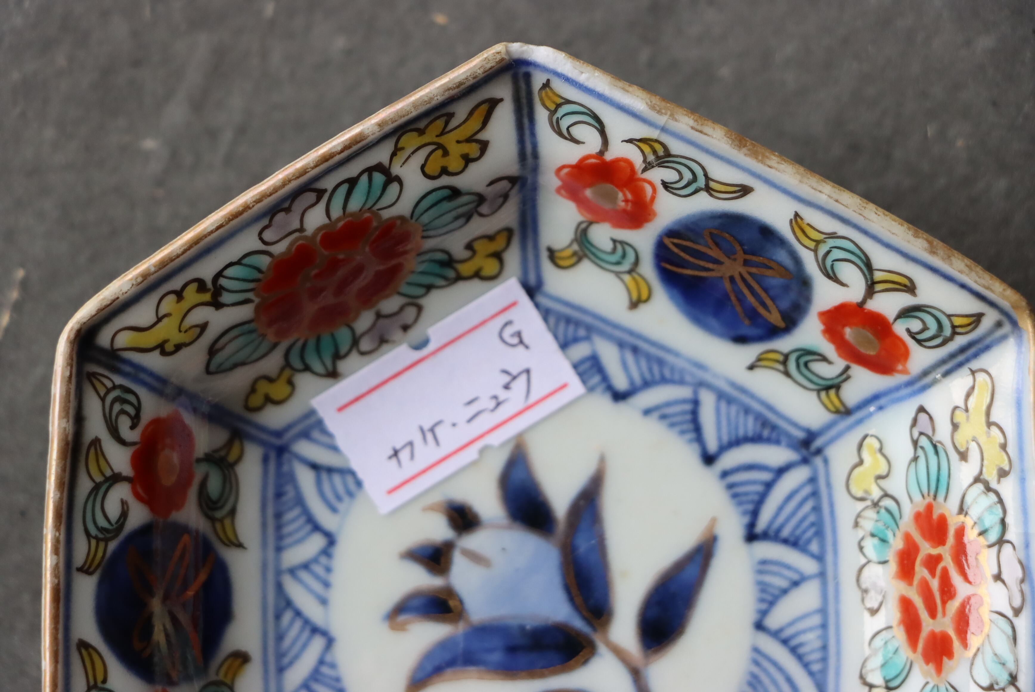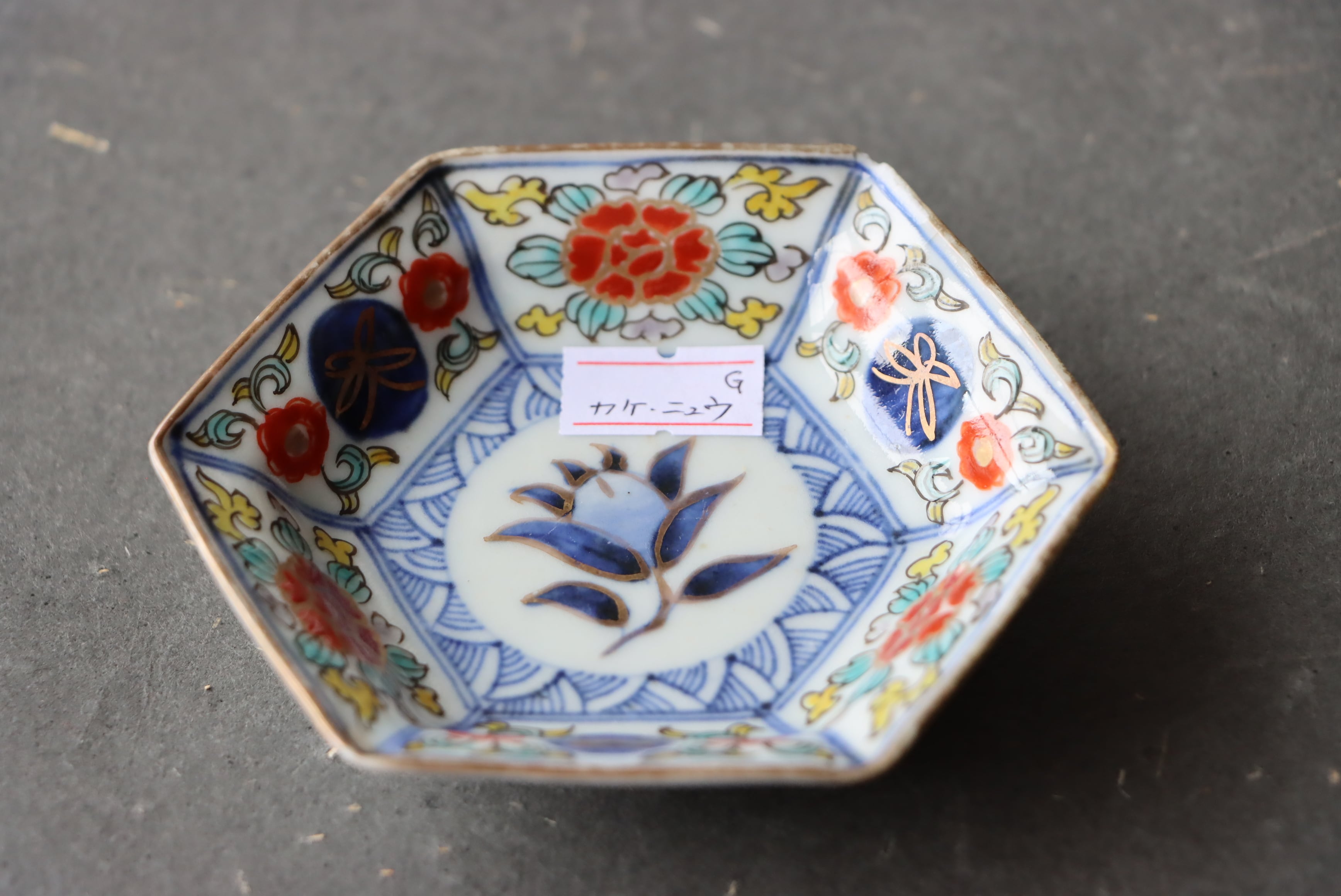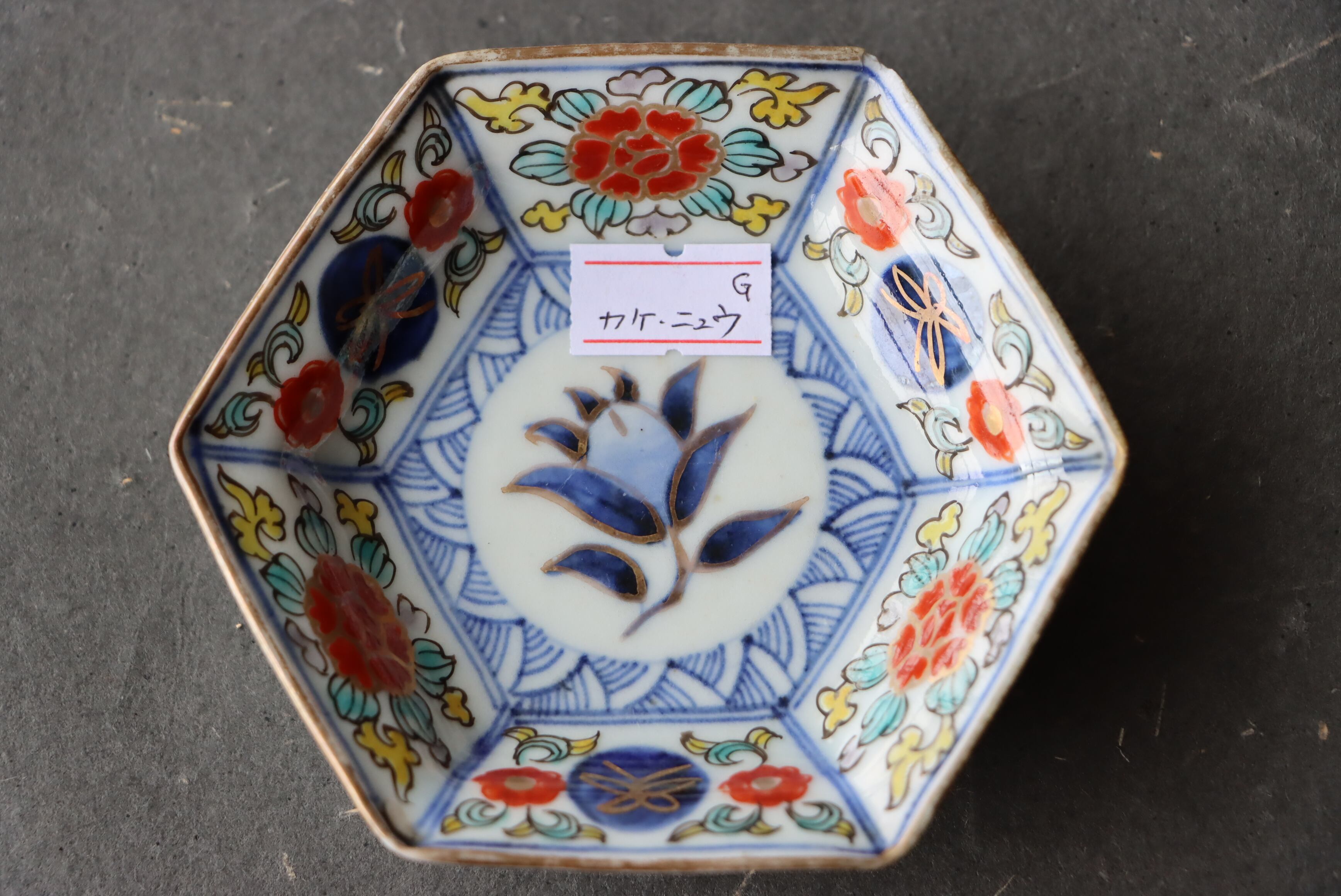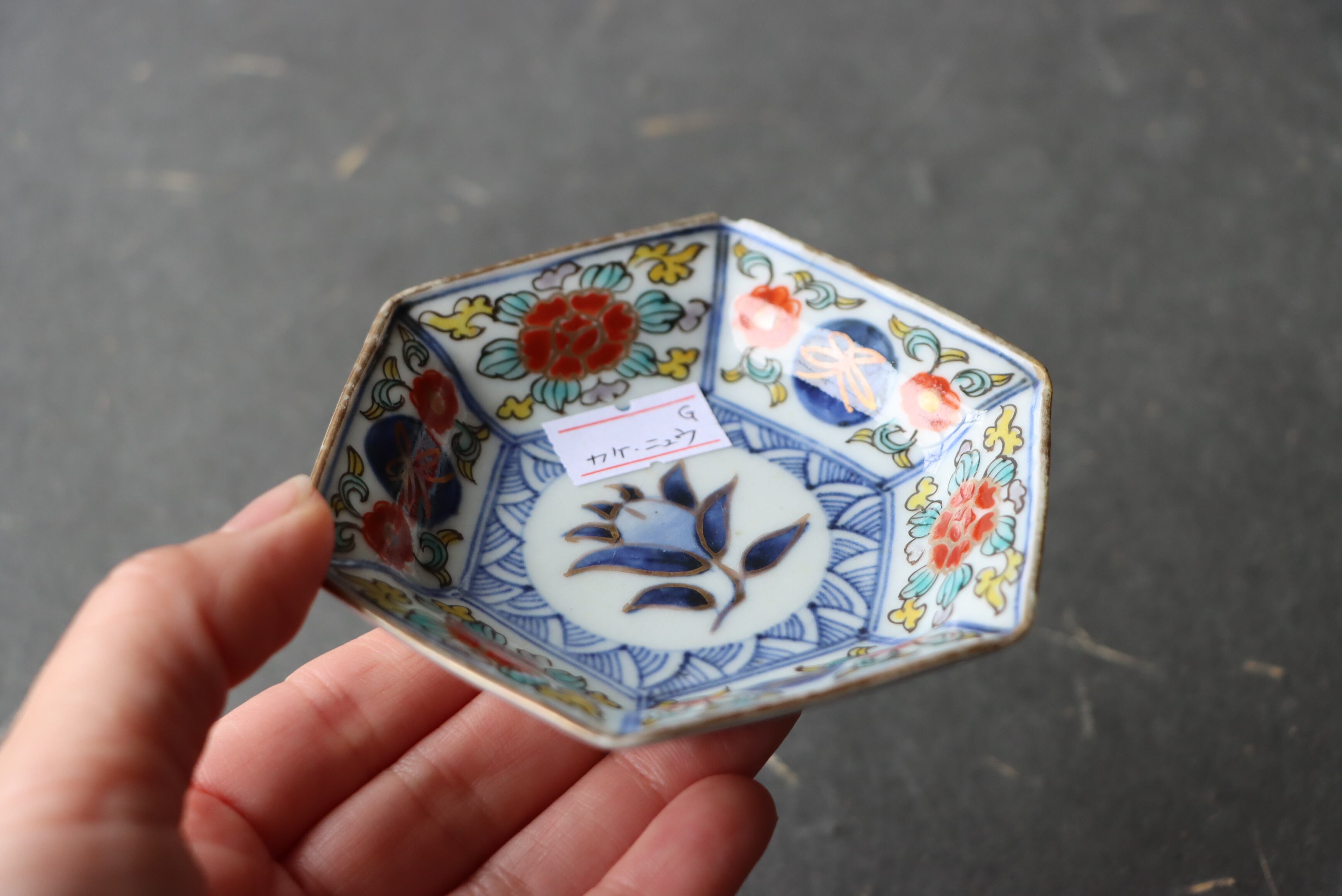 カケ ニュウ ×2 大聖寺伊万里 桃手 花文 六角形 豆皿 G アウトレット