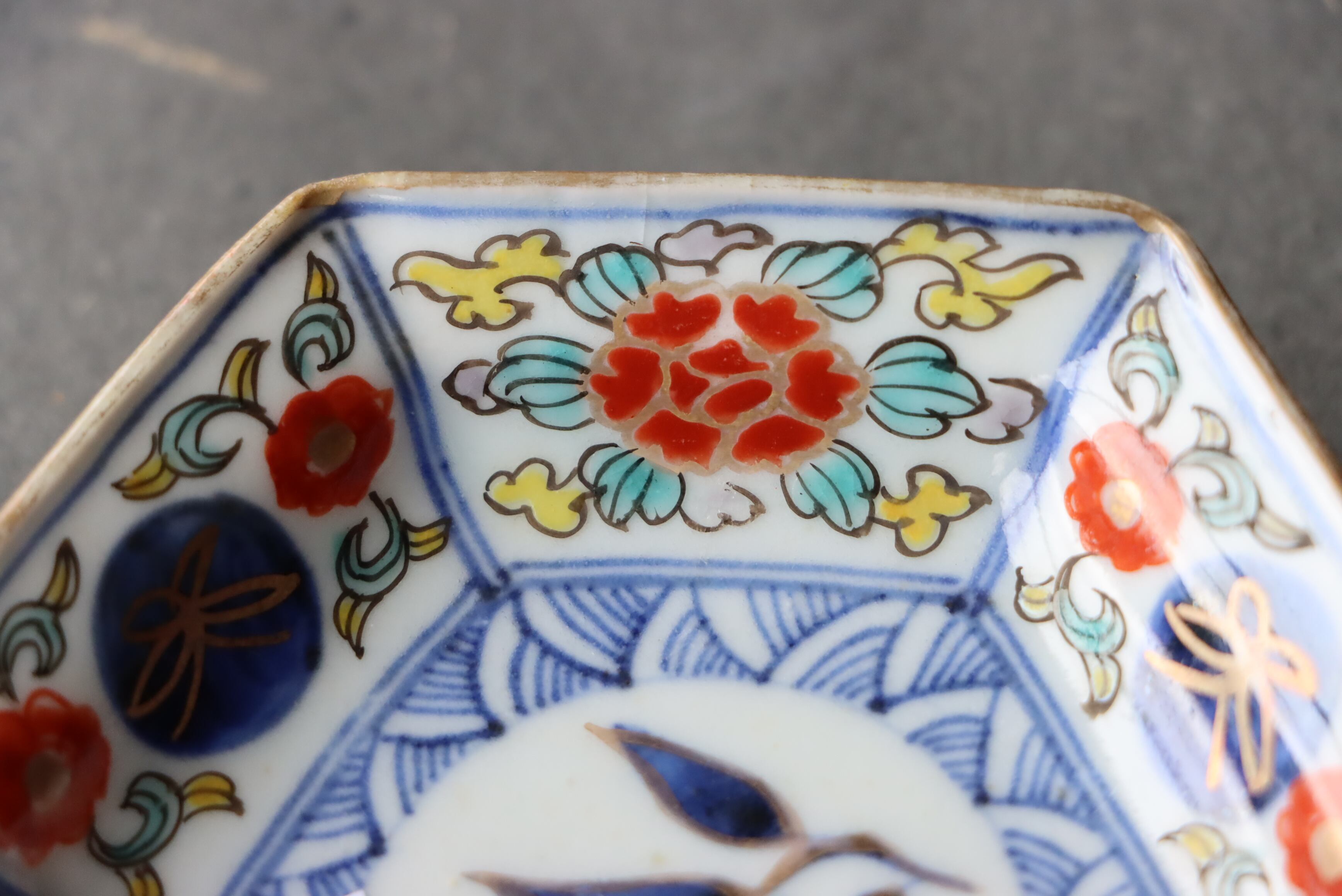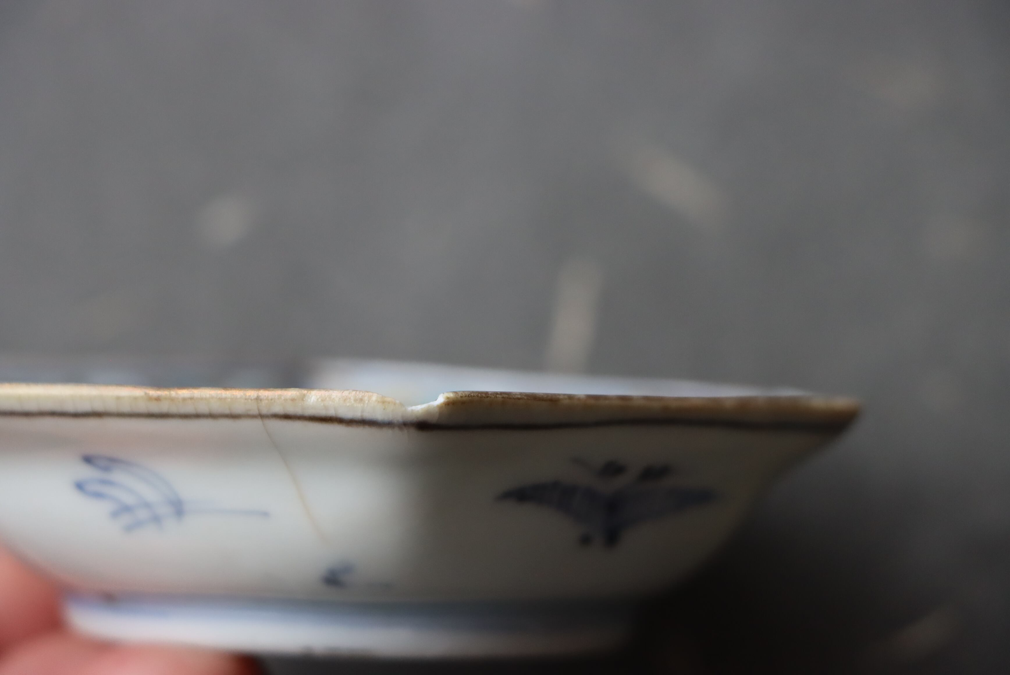 口縁に施された金彩が一部剥離、及び、薄くなっています。金継ぎ用に。