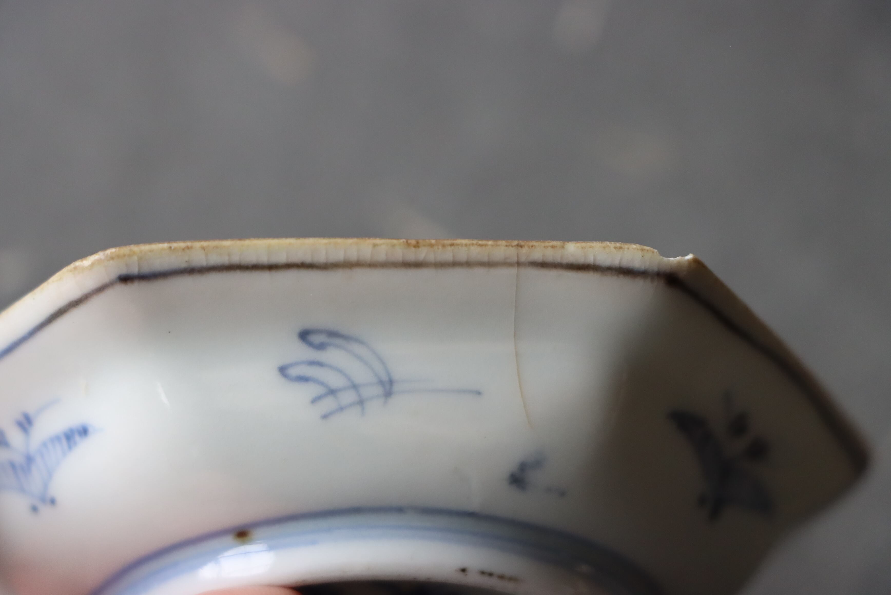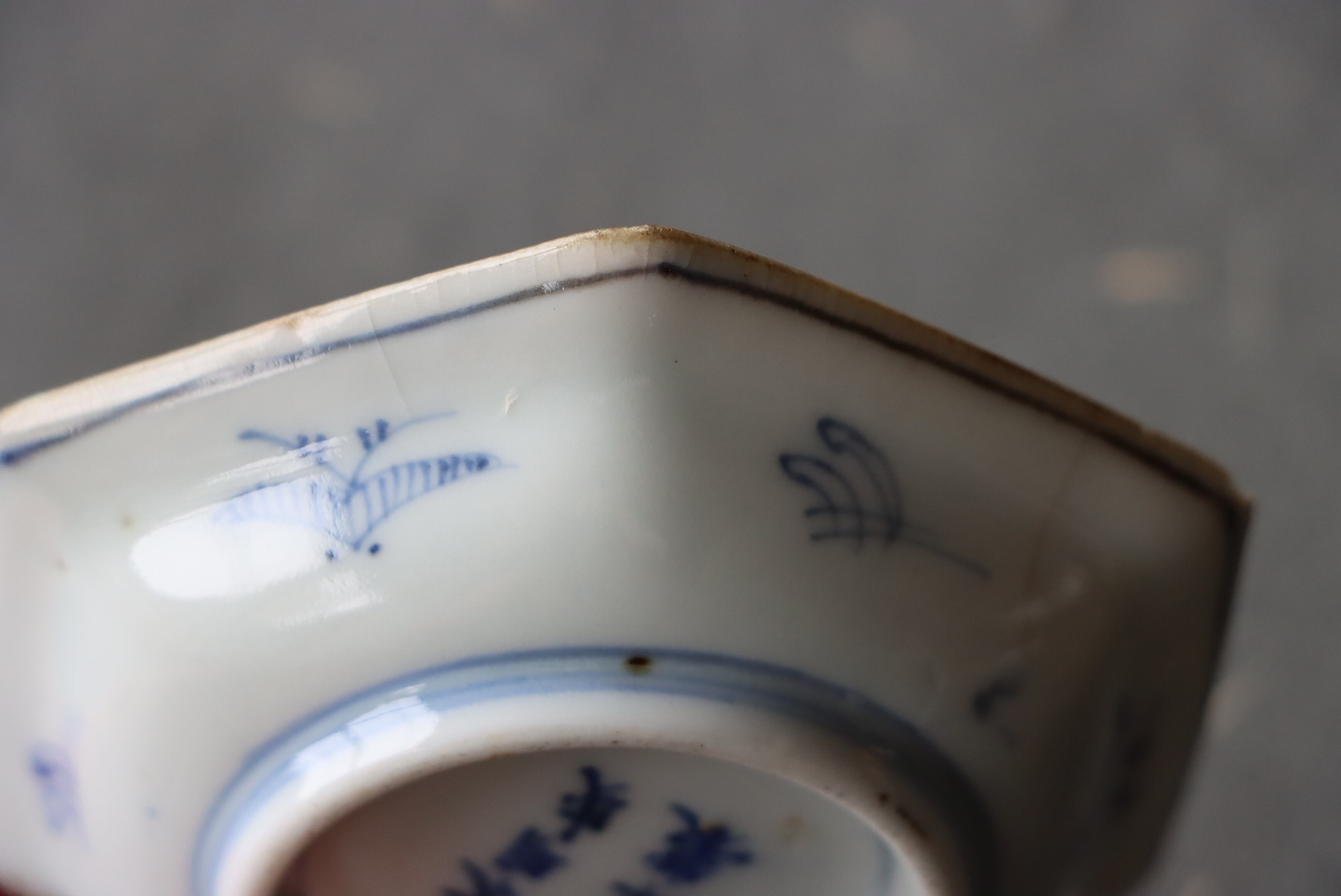 状態:カケ(約2センチ)、ニュウ×2(約2センチ、約1センチ)あり。