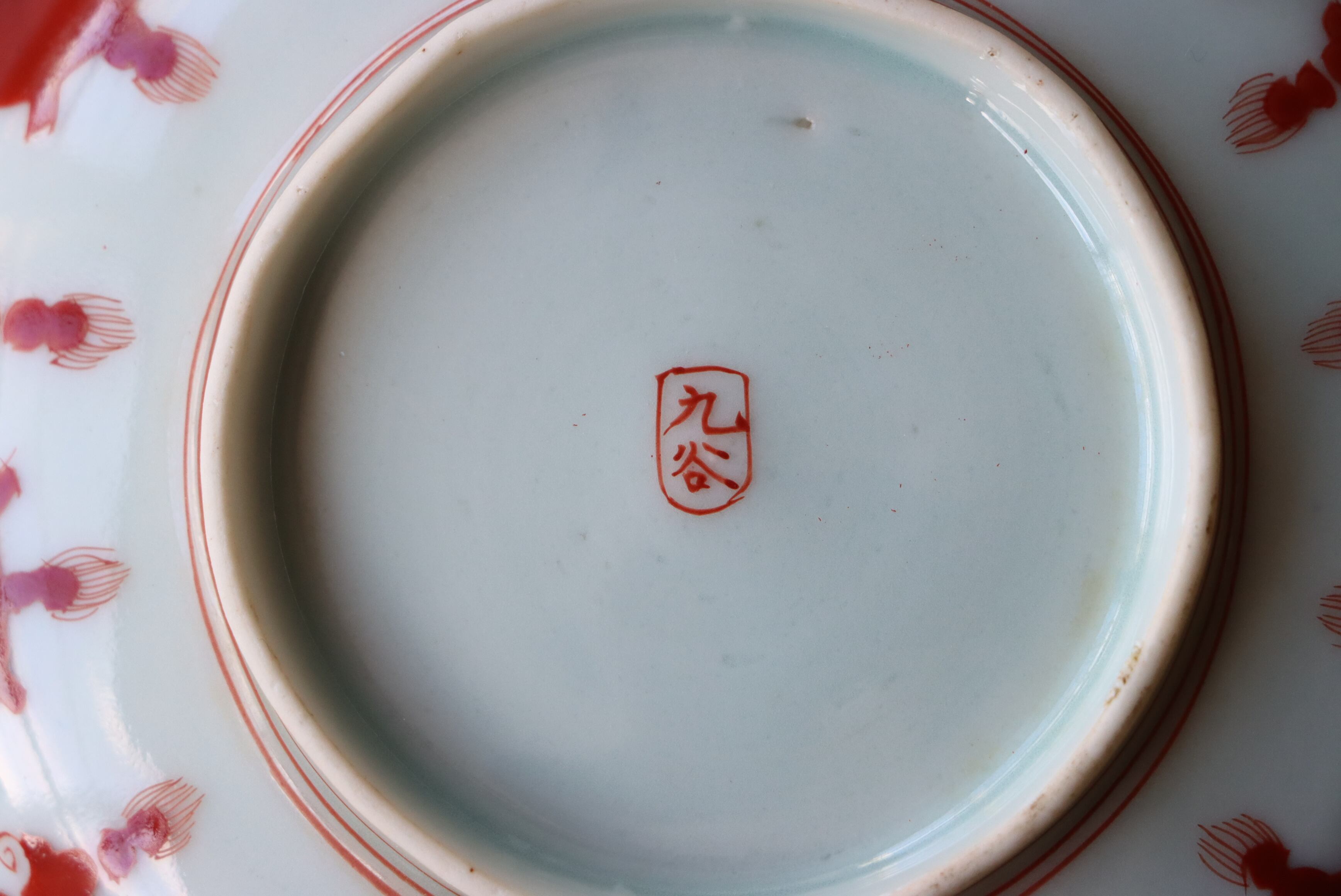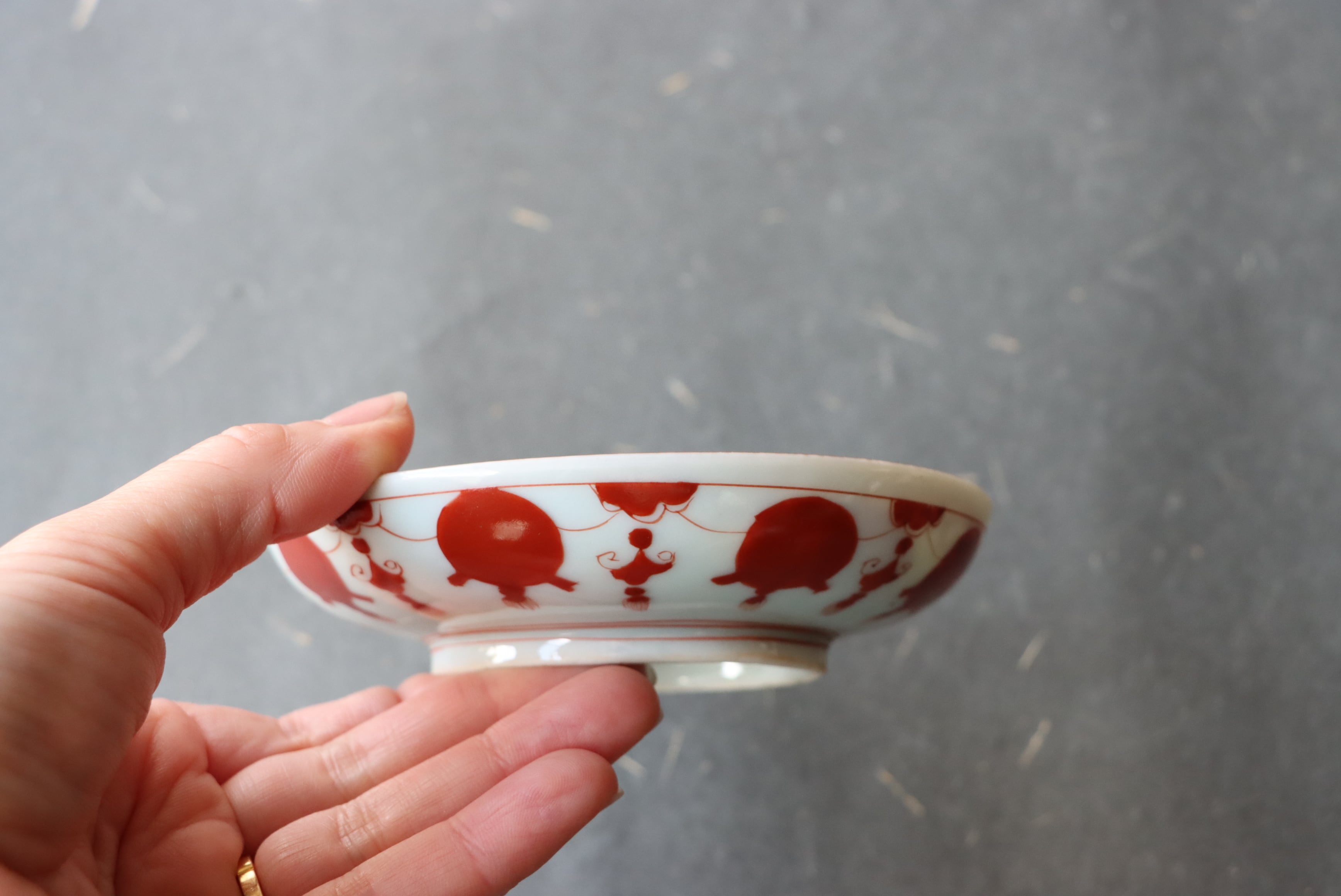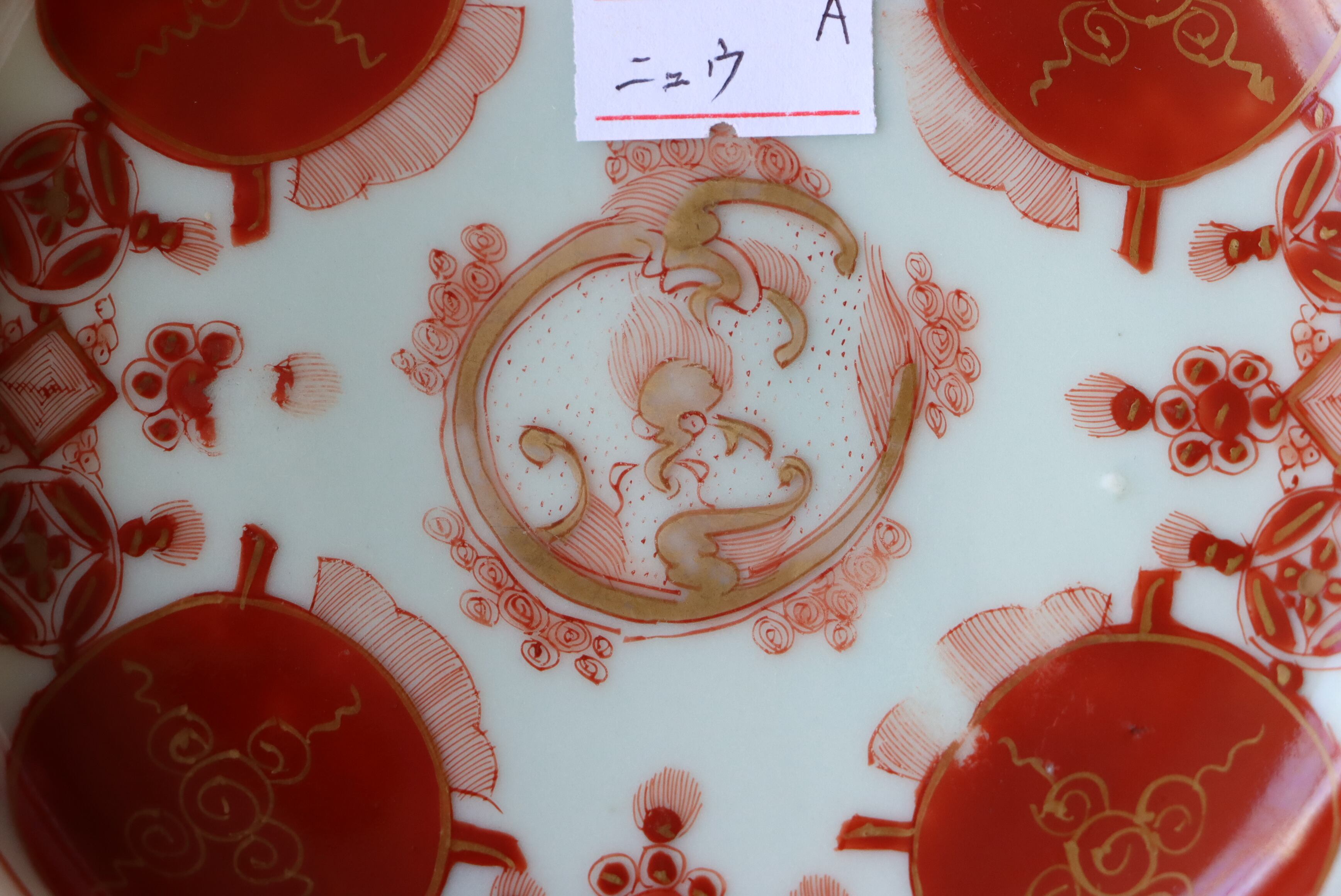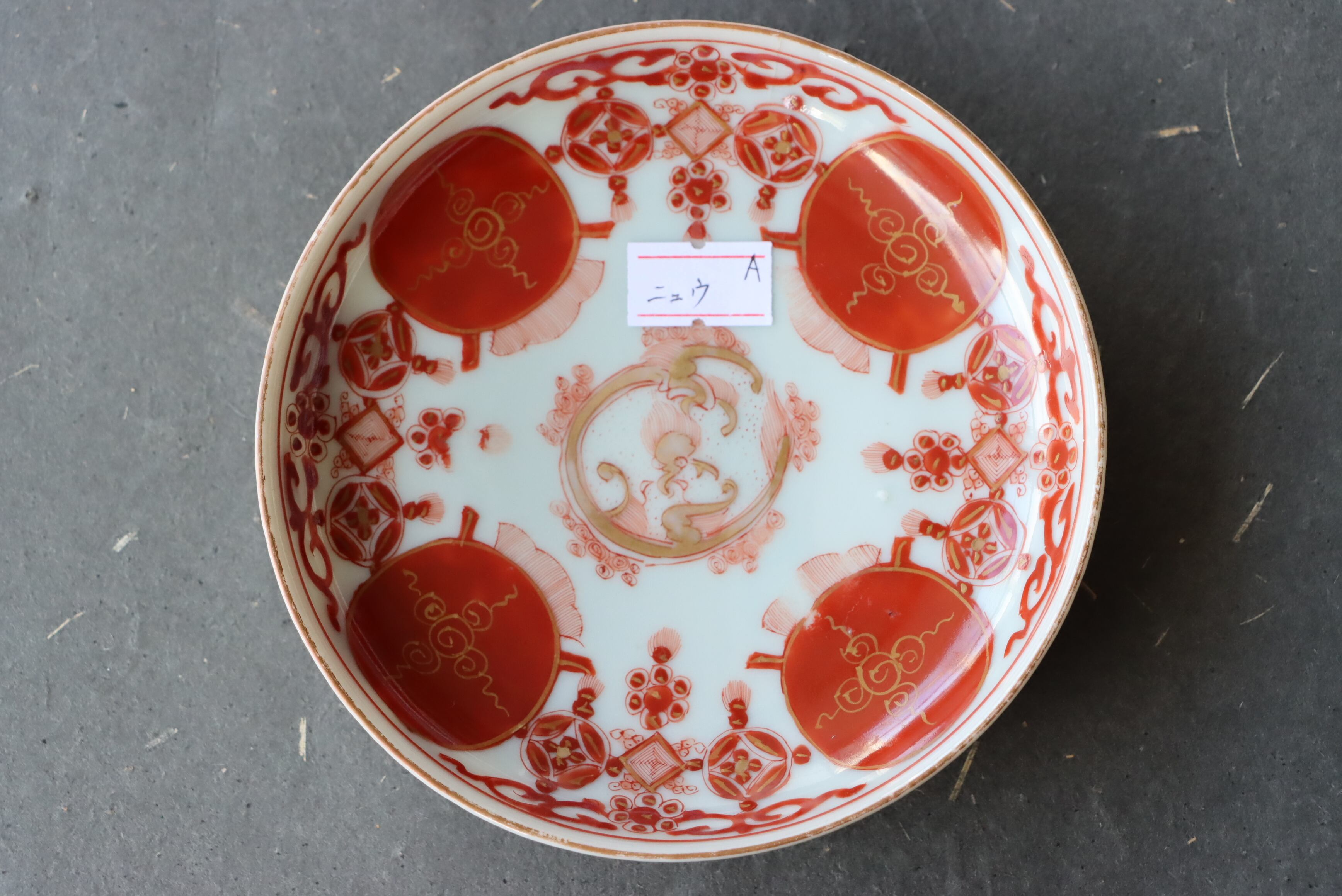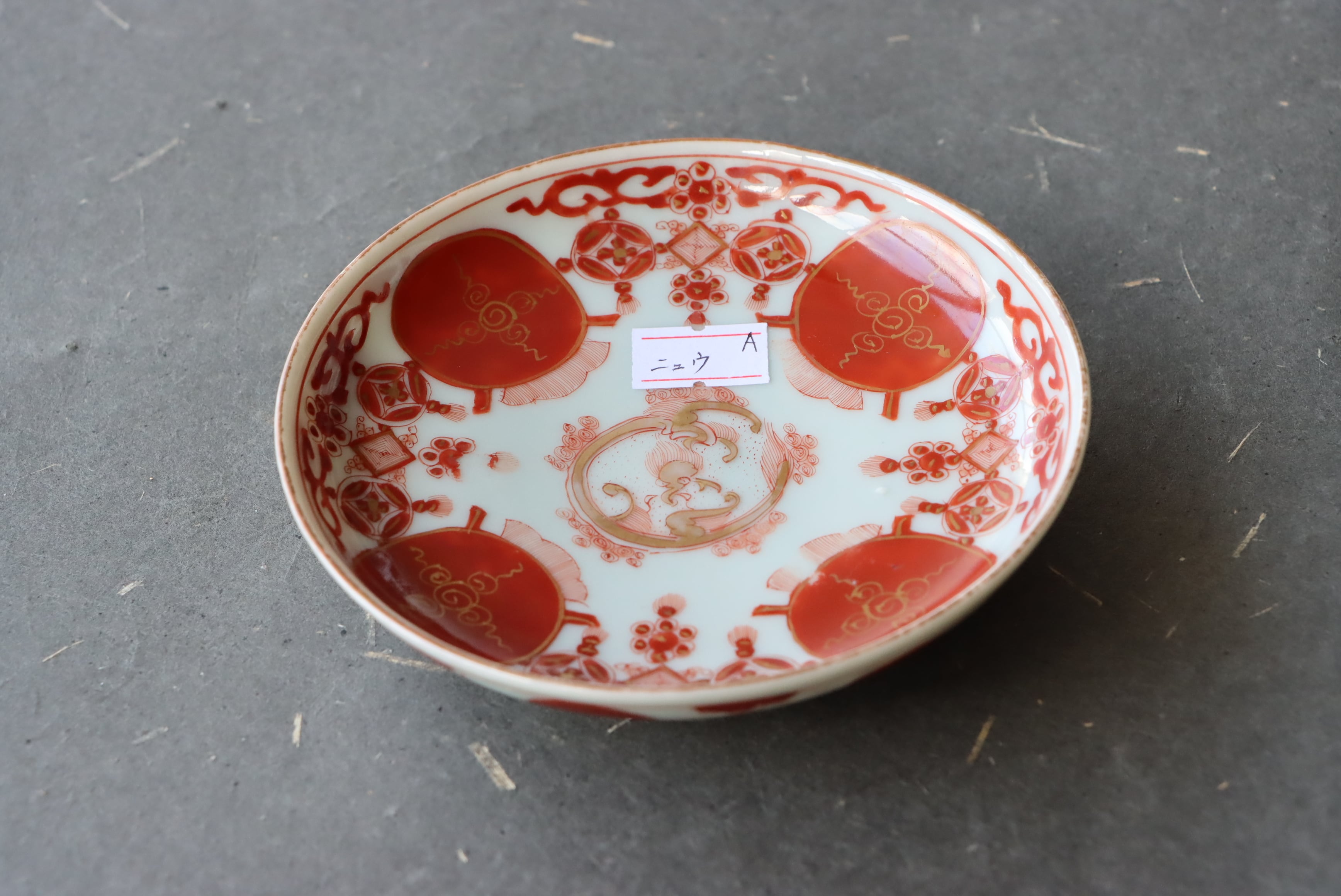 ニュウ 九谷焼 赤絵 赤玉瓔珞文 小皿 A アウトレット