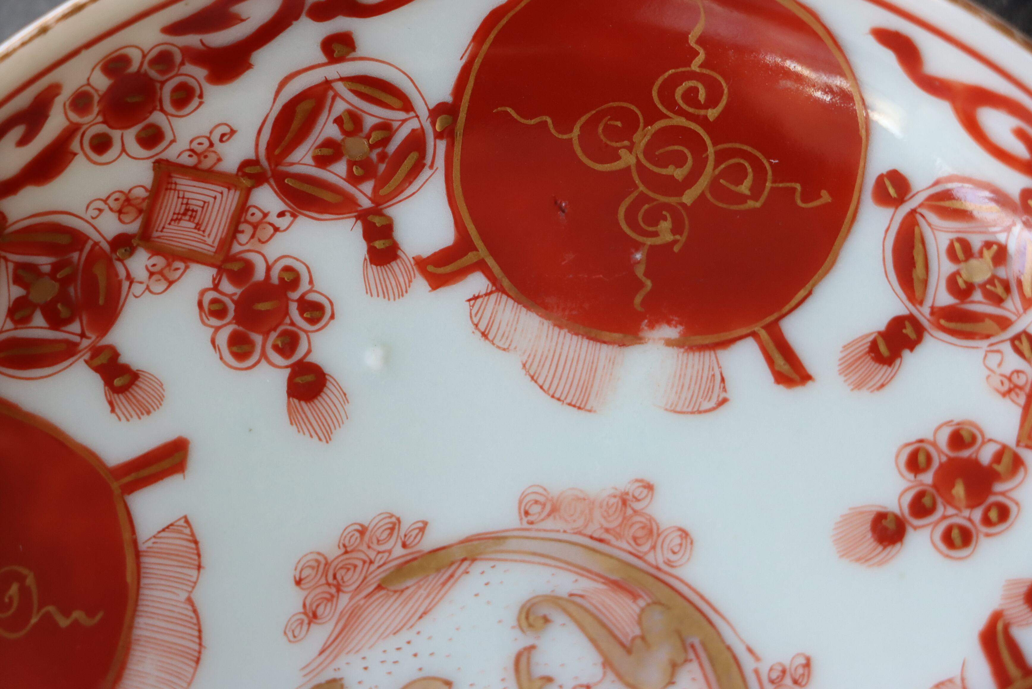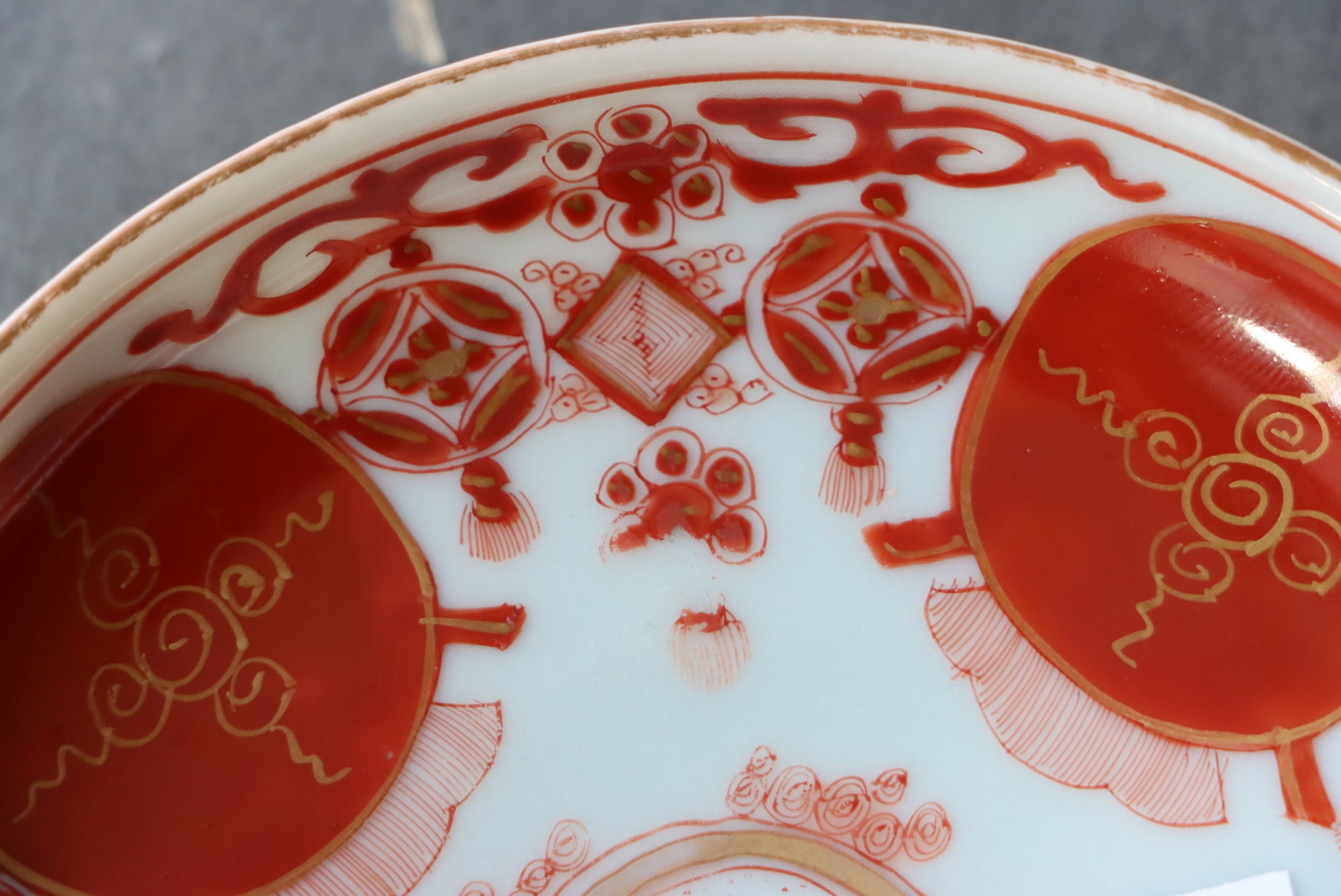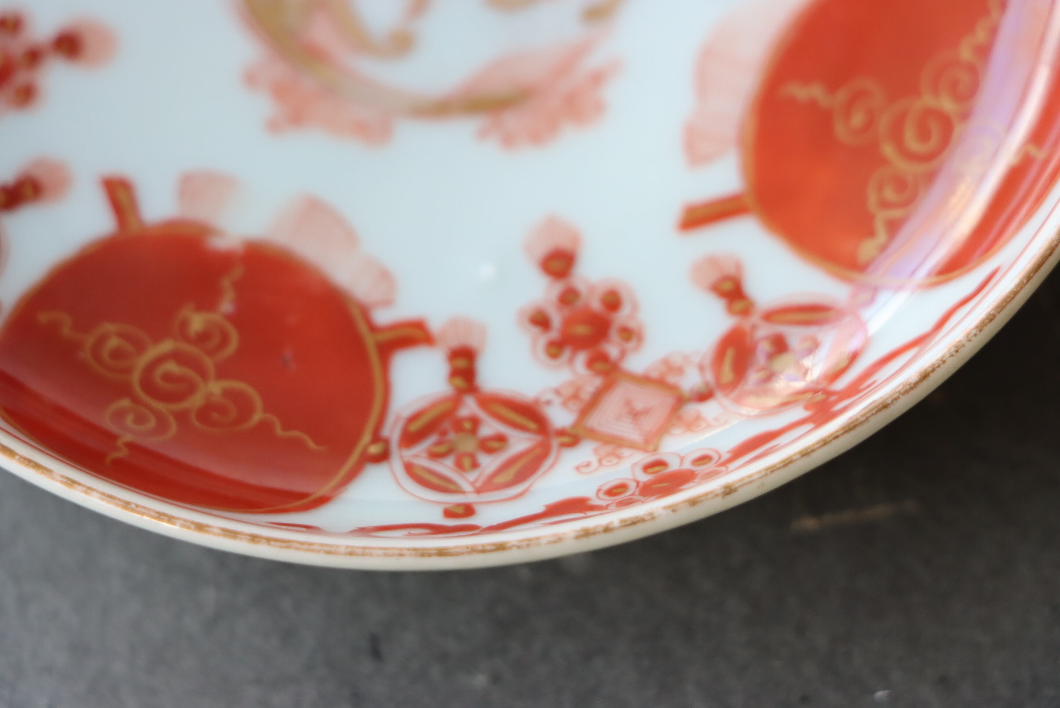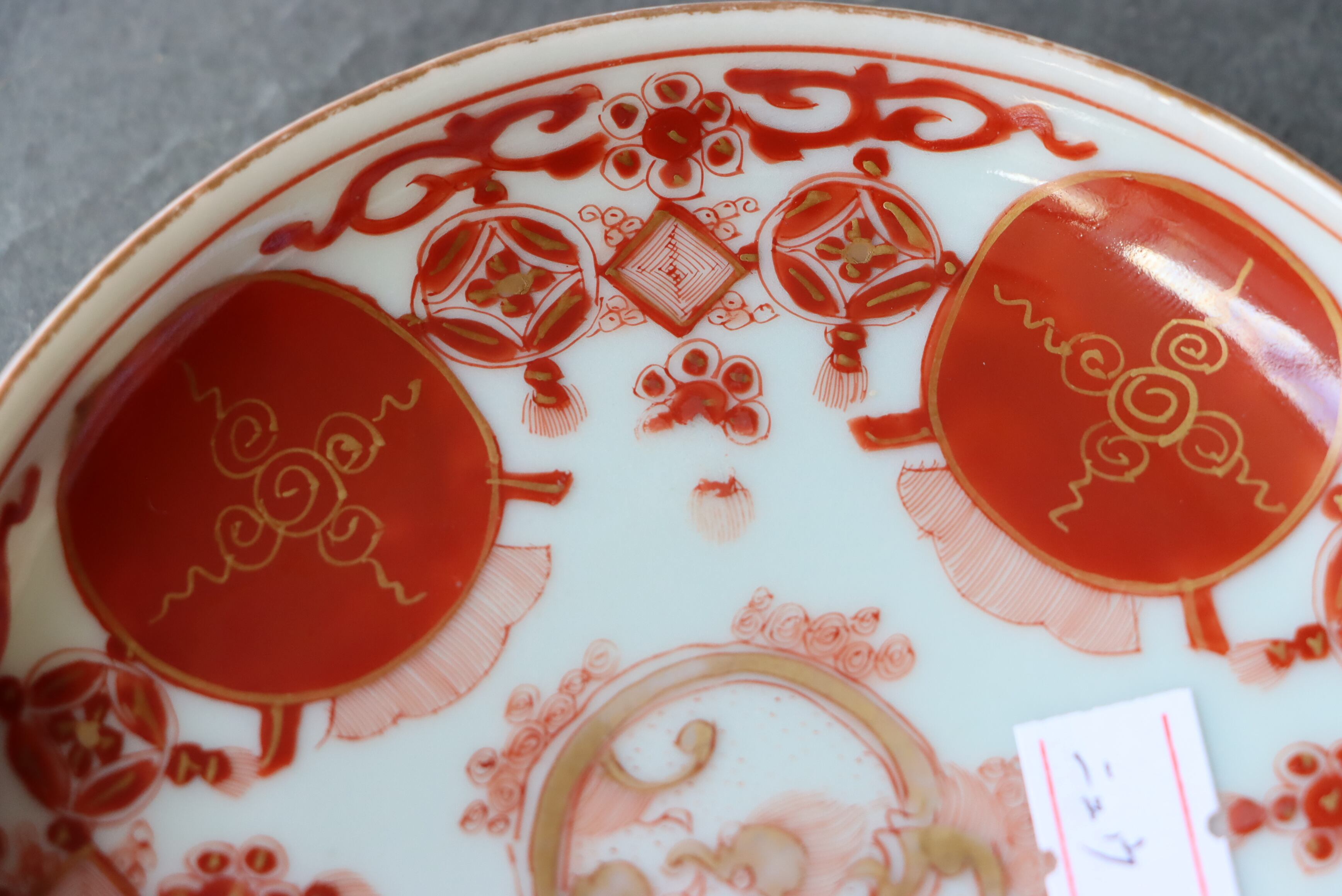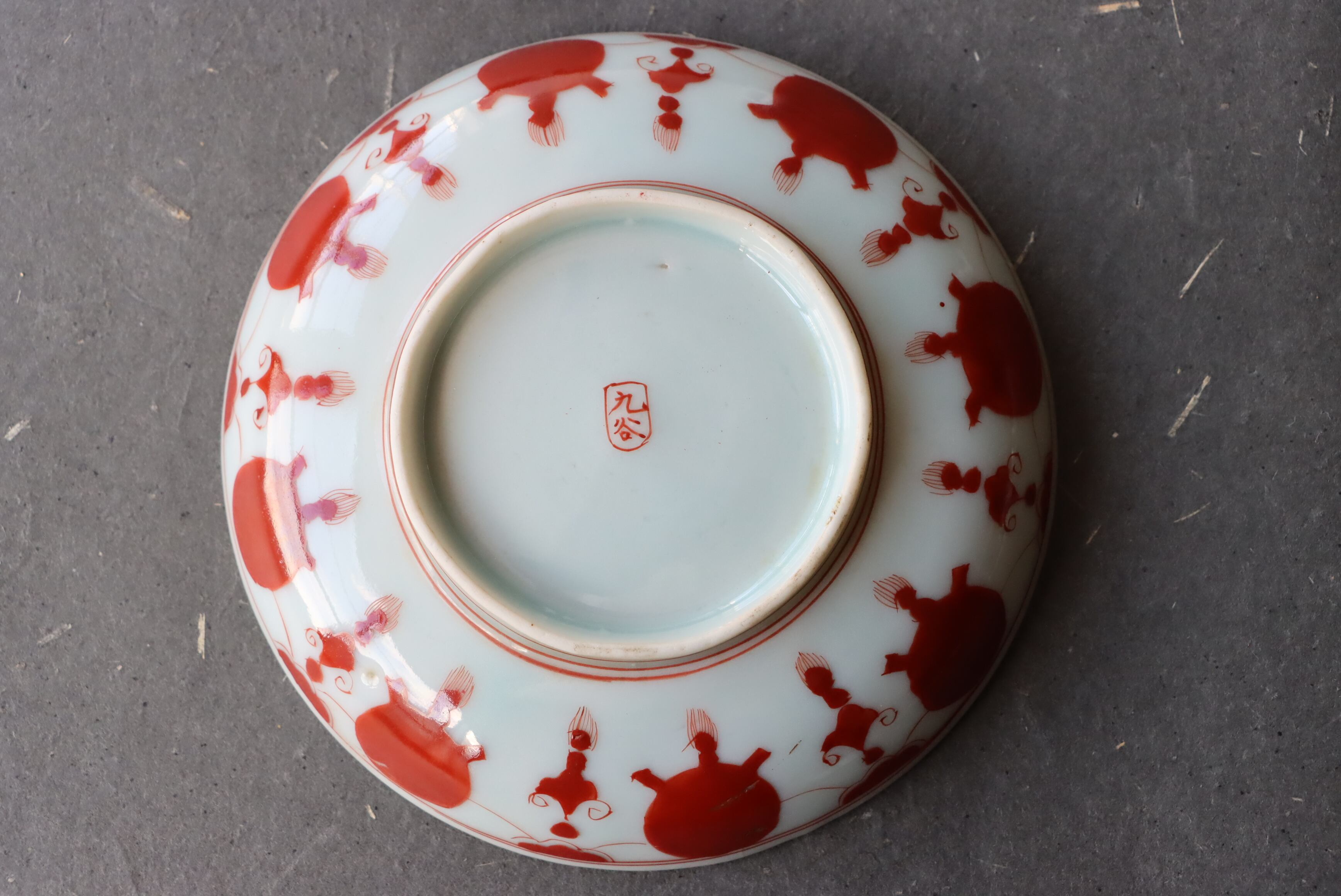 ニュウ 九谷焼 赤絵 赤玉瓔珞文 小皿 A アウトレット