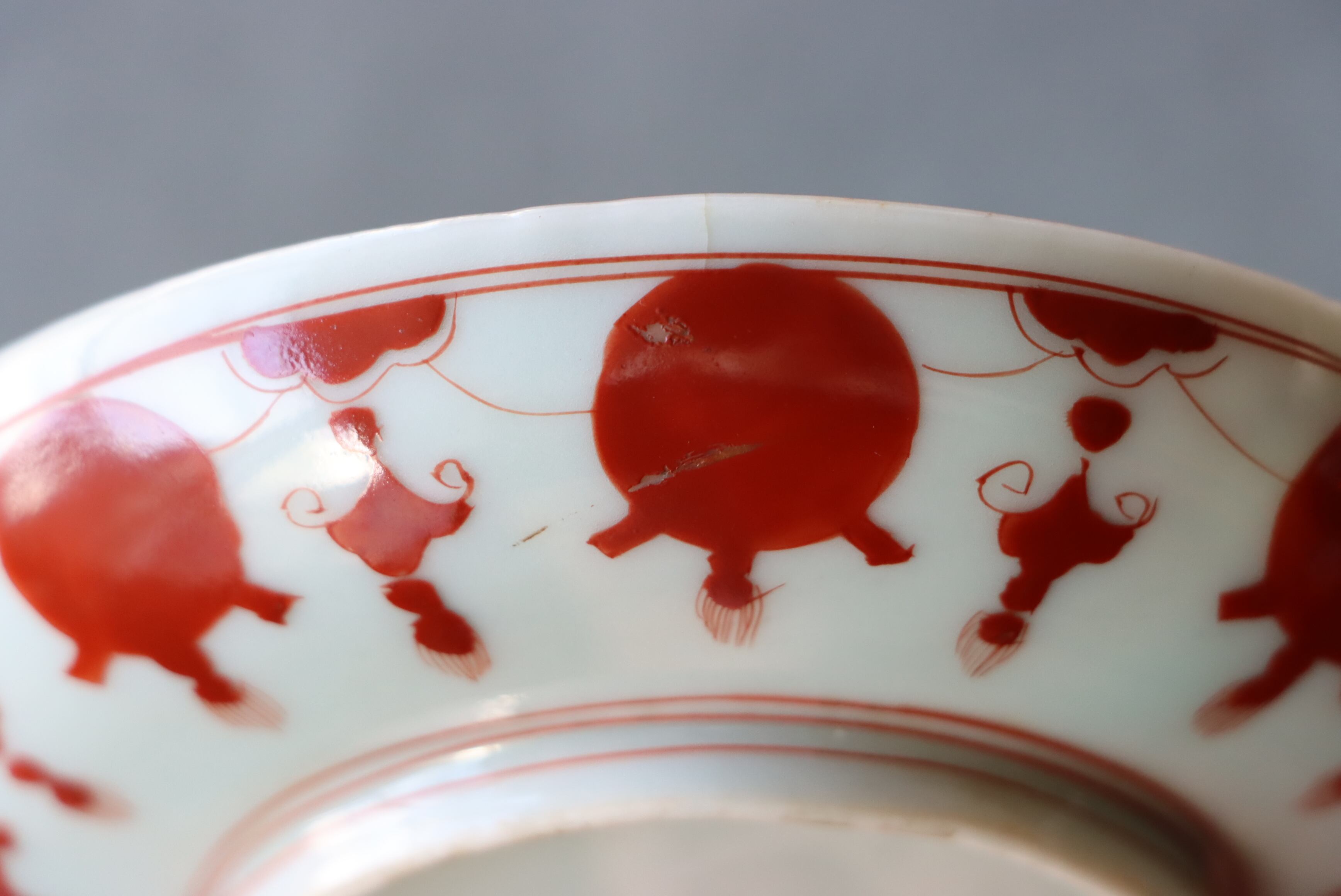 焼成時に窯の中でできる鉄分、くっつき、かまきず、ピンホール、経年による釉薬の薄れがございます。また、一枚一枚手描き、手作りですので器のサイズ(ミリ)、色味、描かれている文様の大きさなど個体差があり、ひとつとして同じものはございません。そういった時代感、個性をご理解いただき、楽しんでくだされば幸いです。電子レンジや食器洗い乾燥機のご使用はお控えください。