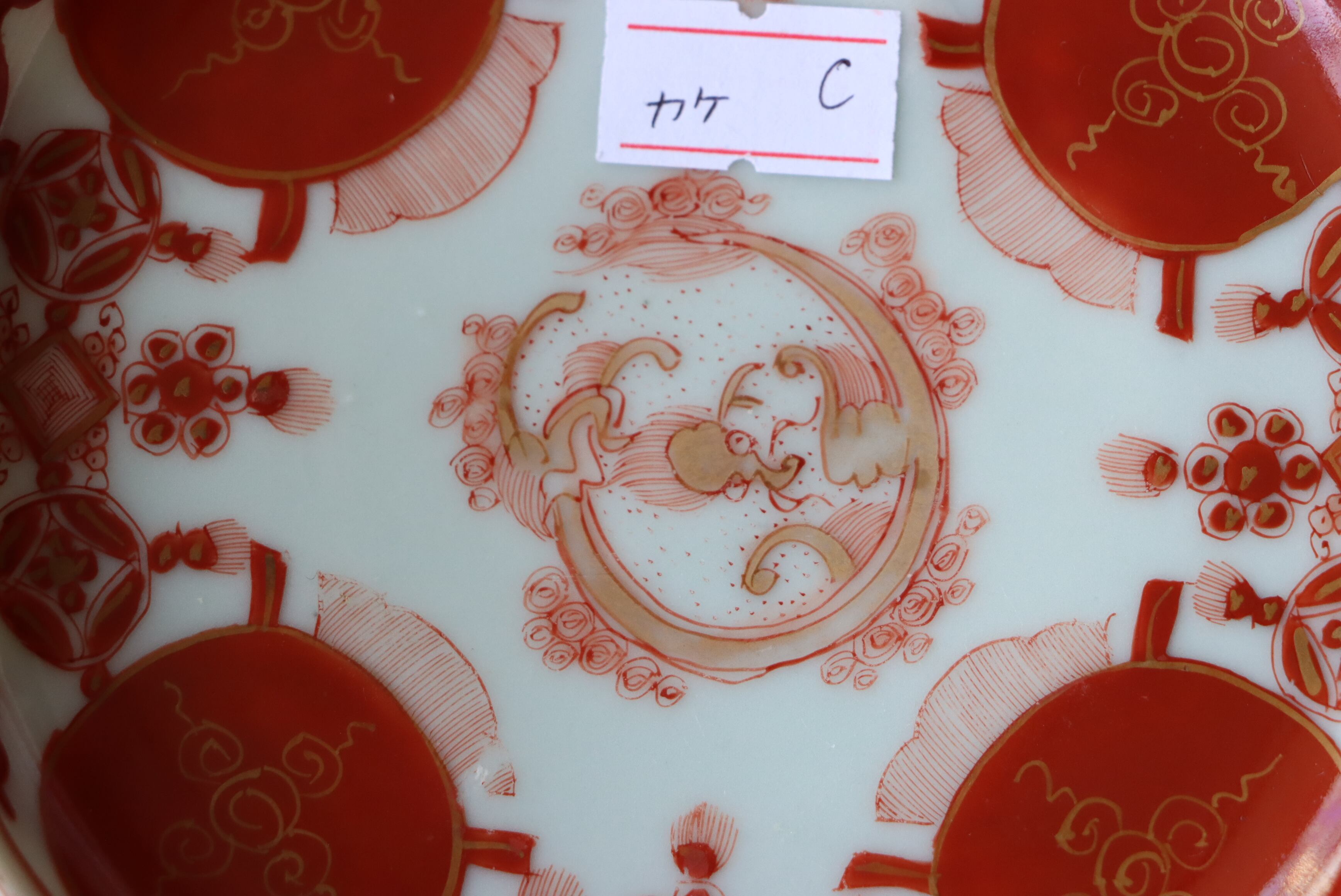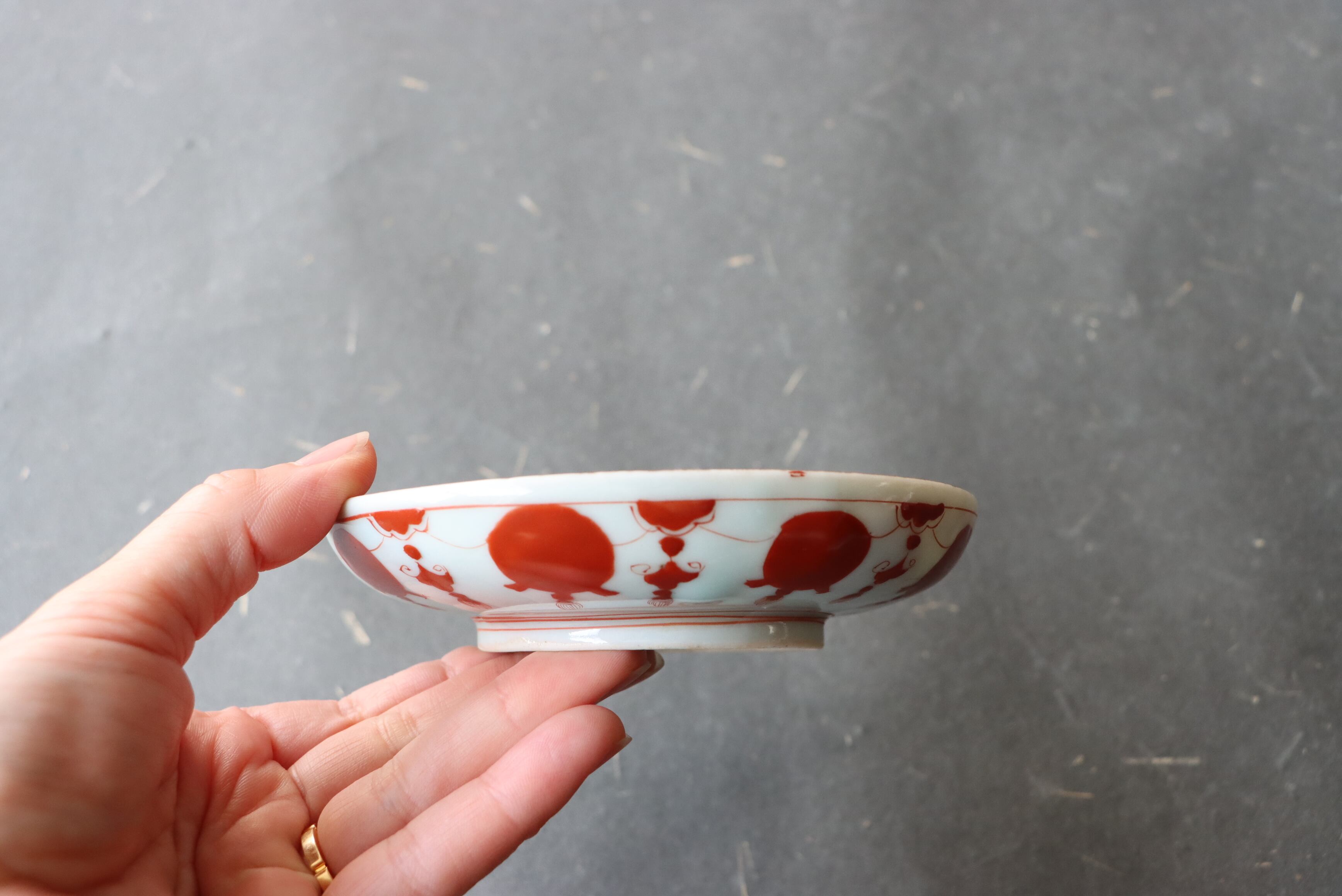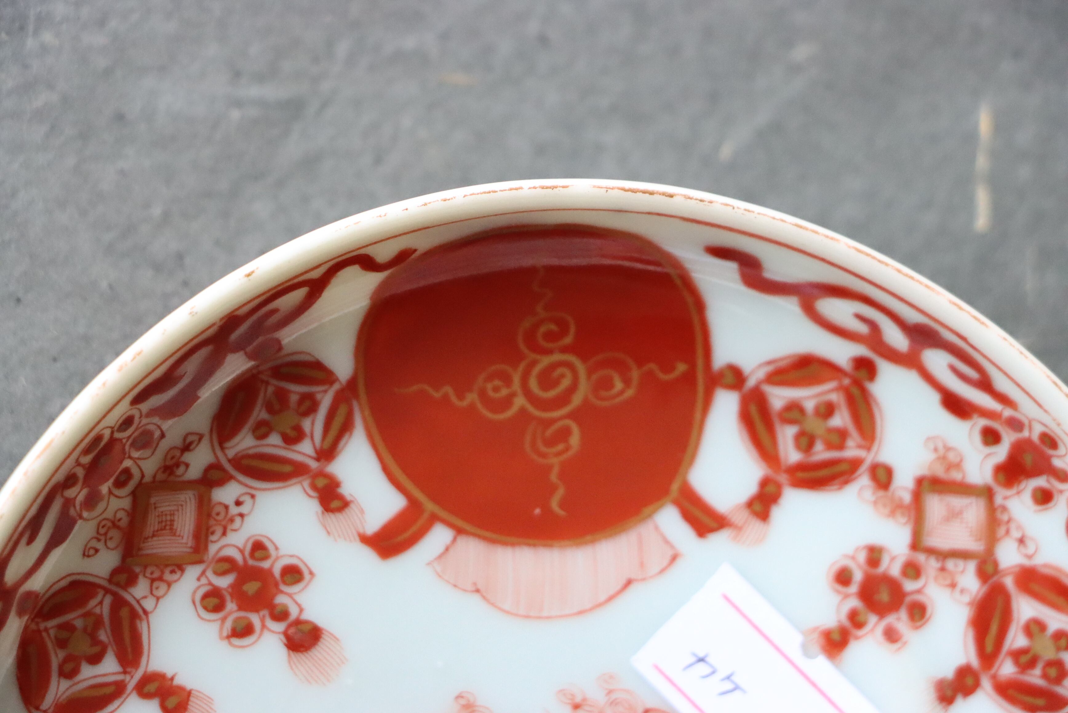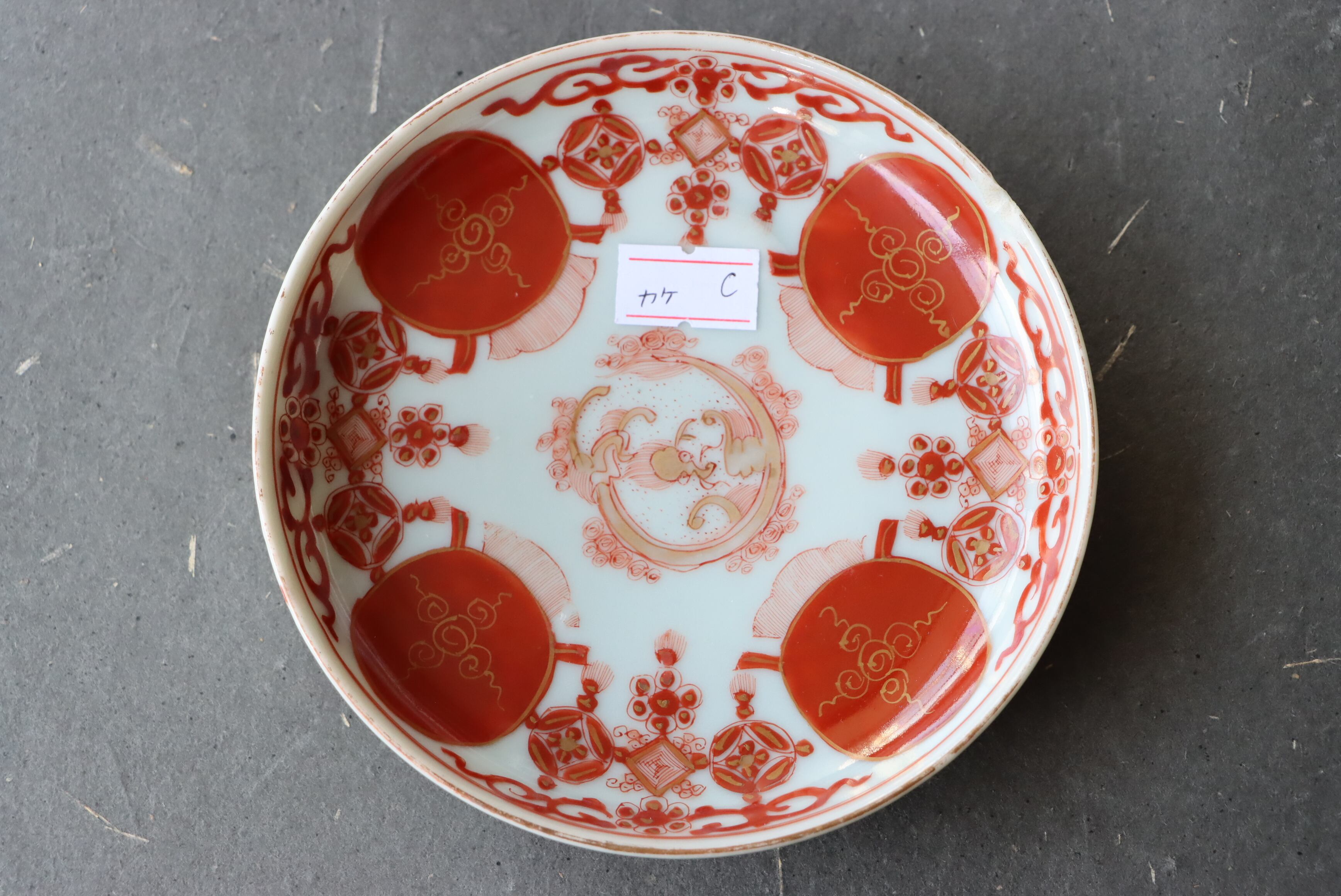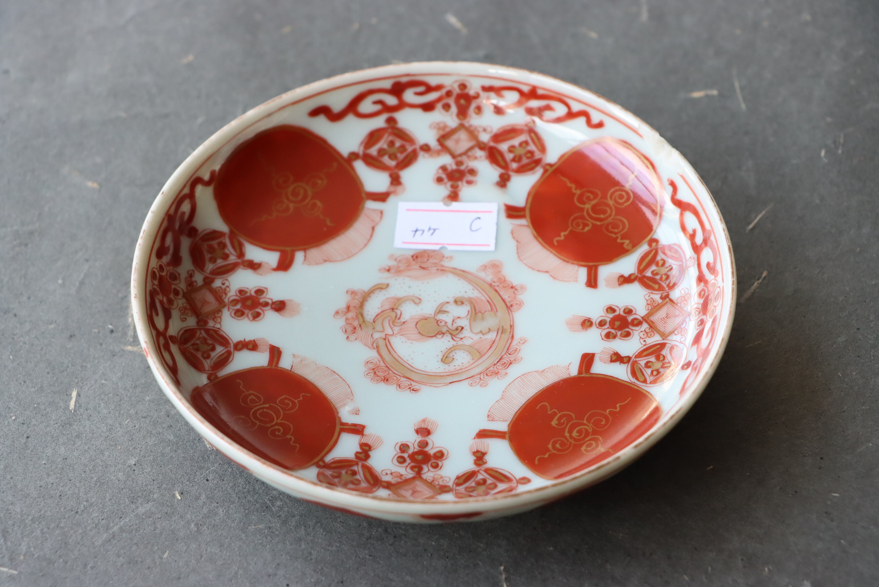 カケ 九谷焼 赤絵 赤玉瓔珞文 小皿 C アウトレット