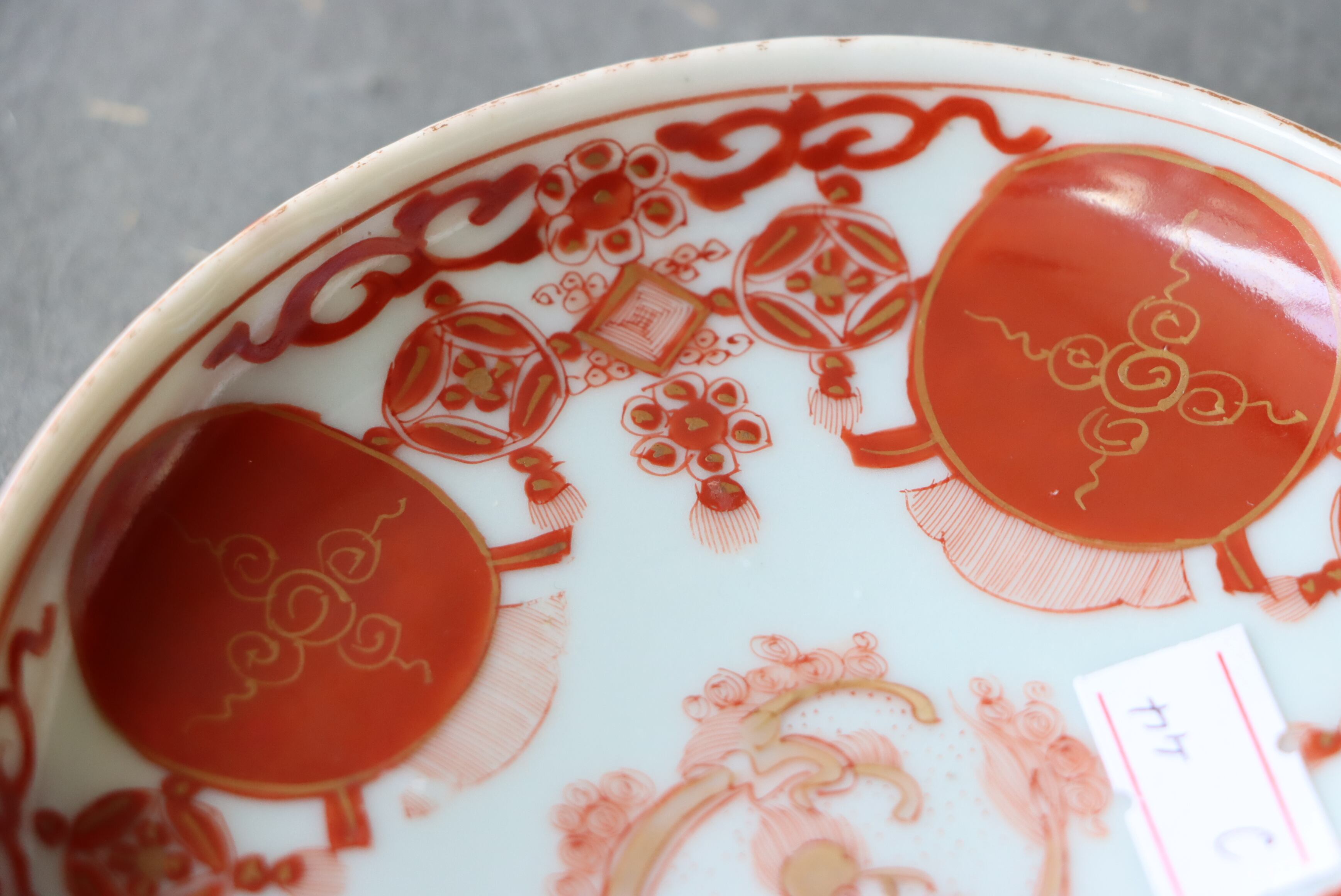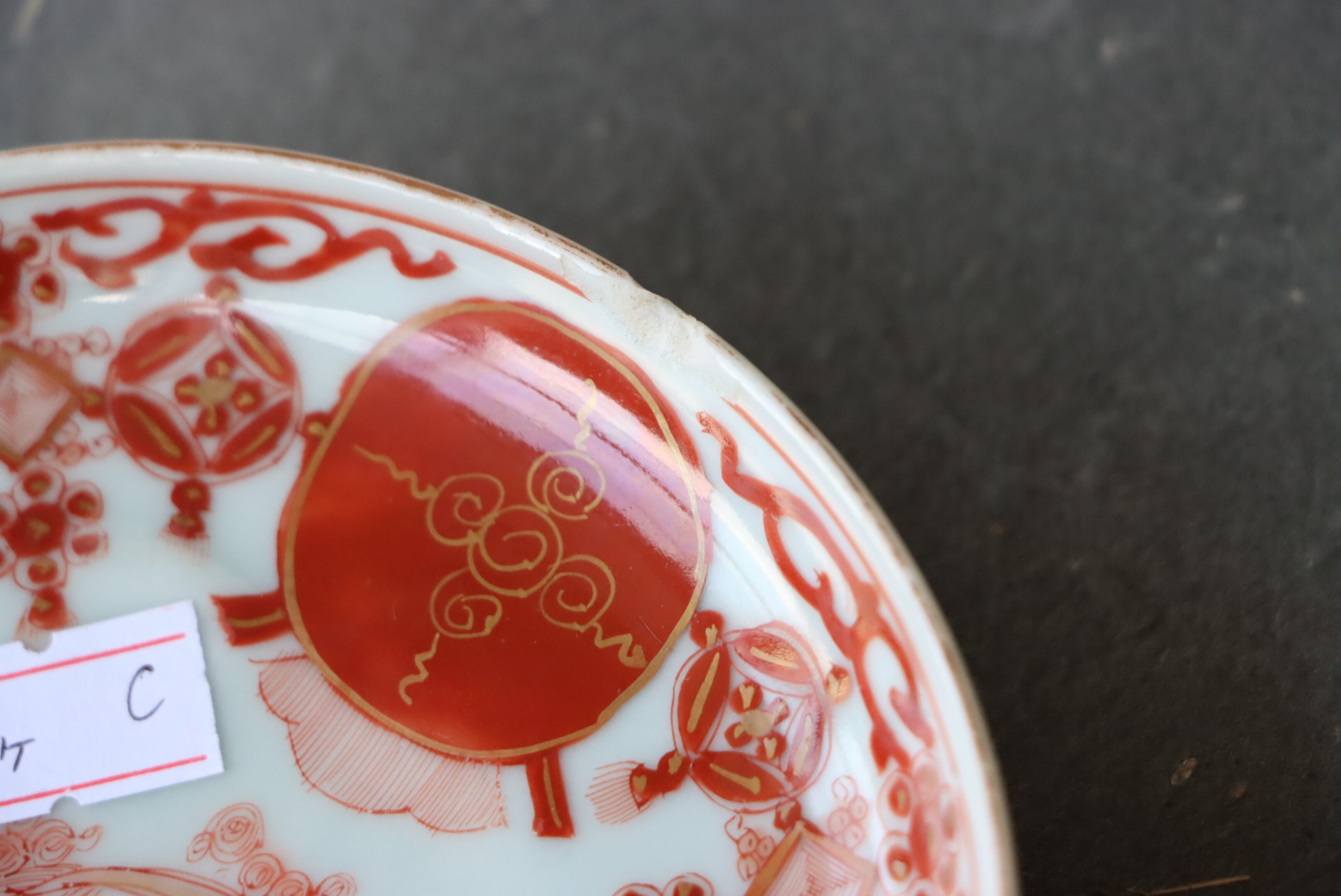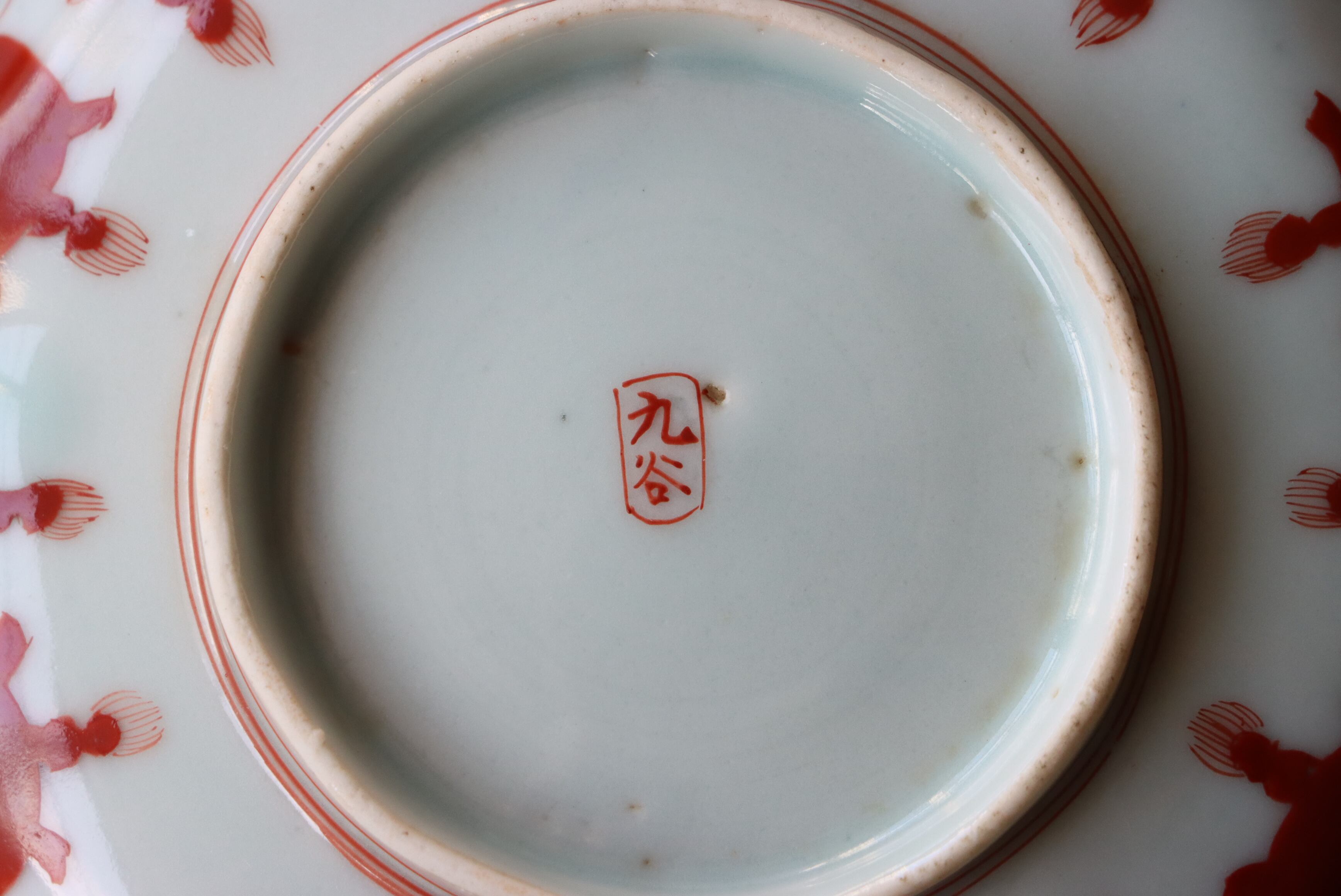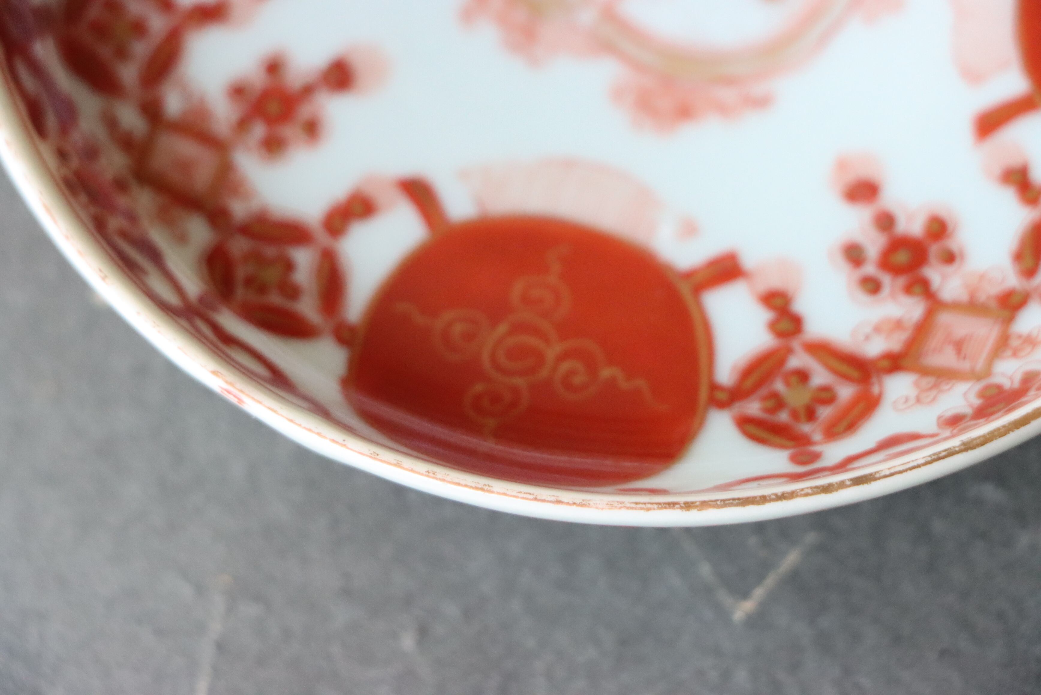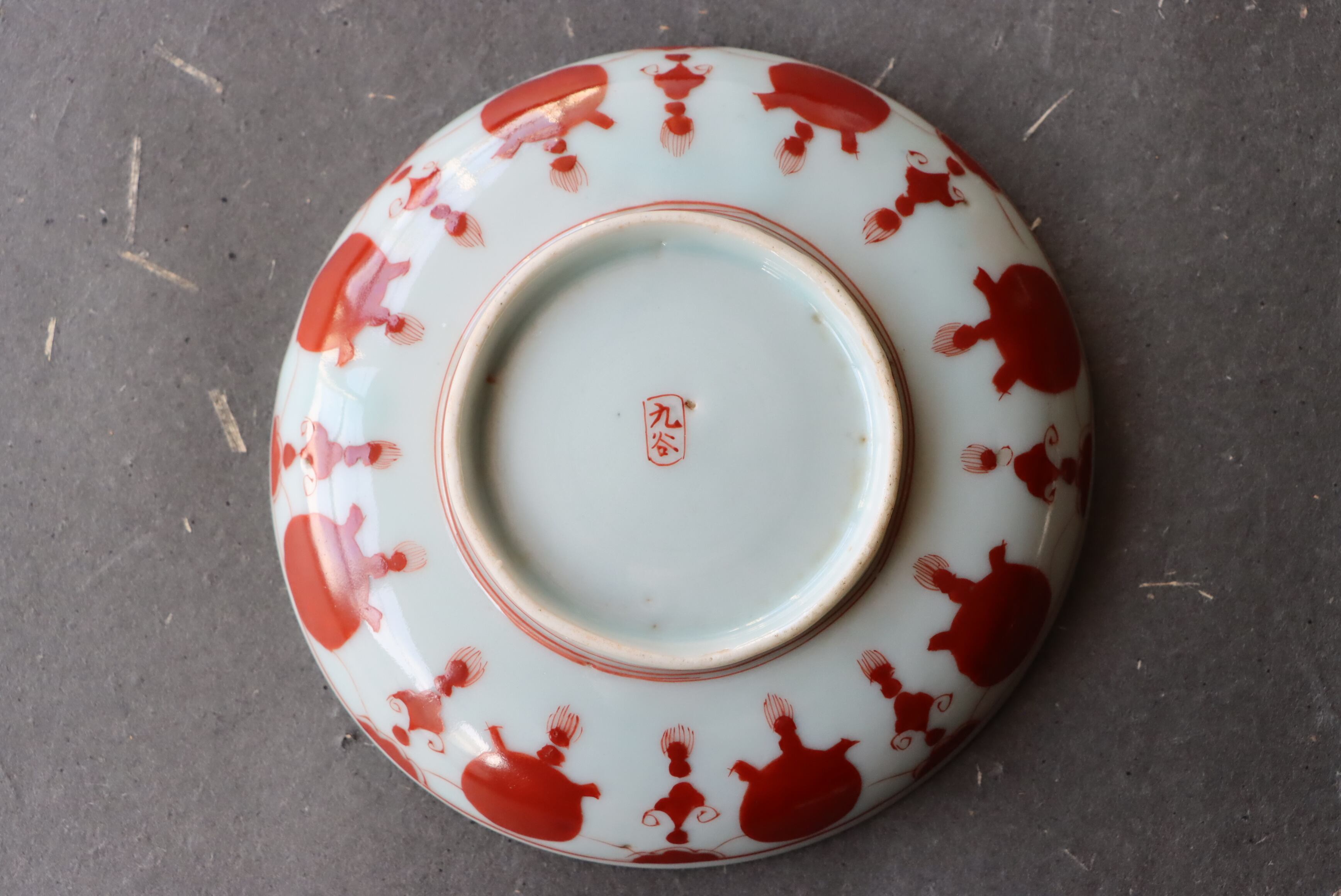 カケ 九谷焼 赤絵 赤玉瓔珞文 小皿 C アウトレット