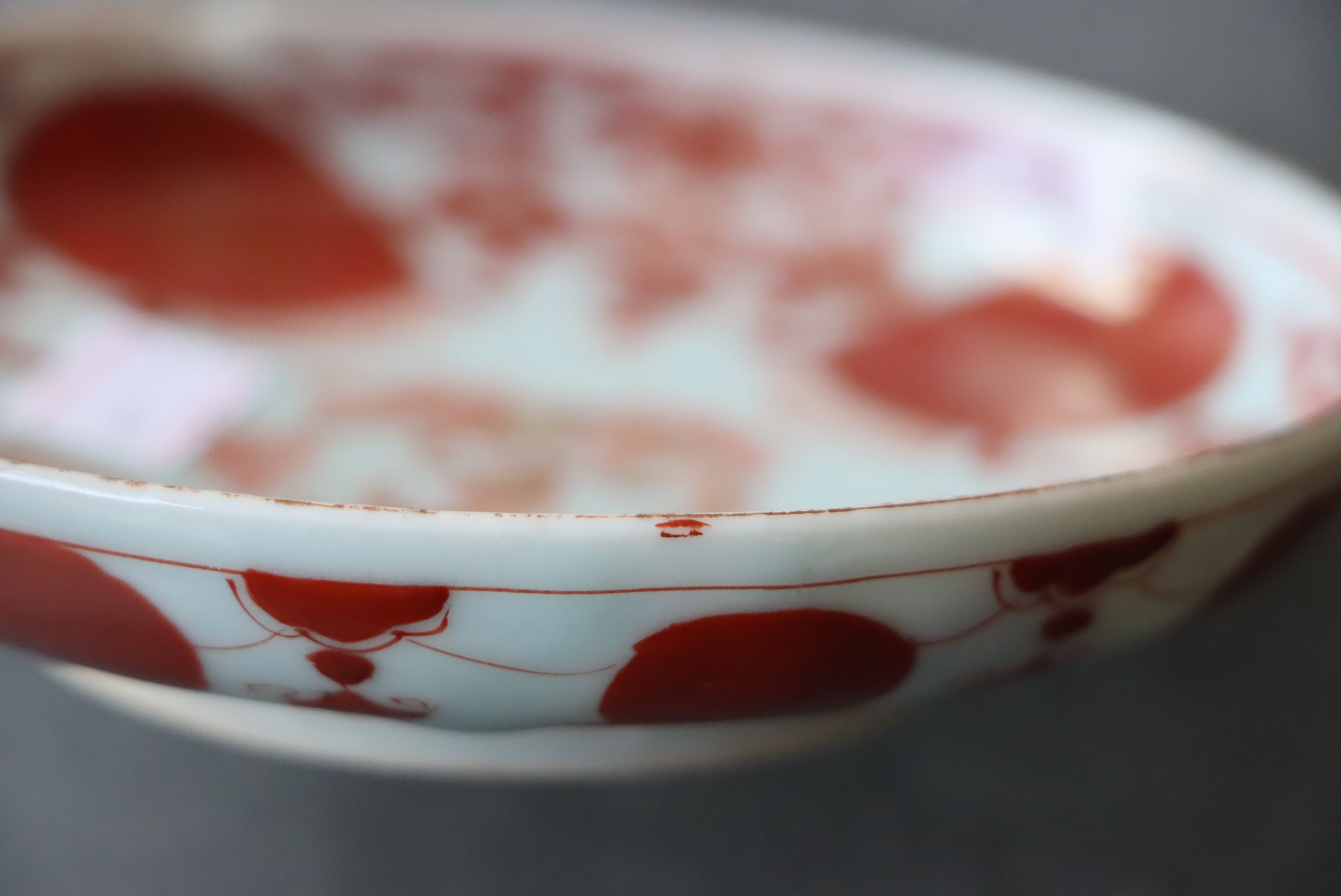 焼成時に窯の中でできる鉄分、くっつき、かまきず、ピンホール、経年による釉薬の薄れがございます。また、一枚一枚手描き、手作りですので器のサイズ(ミリ)、色味、描かれている文様の大きさなど個体差があり、ひとつとして同じものはございません。そういった時代感、個性をご理解いただき、楽しんでくだされば幸いです。電子レンジや食器洗い乾燥機のご使用はお控えください。