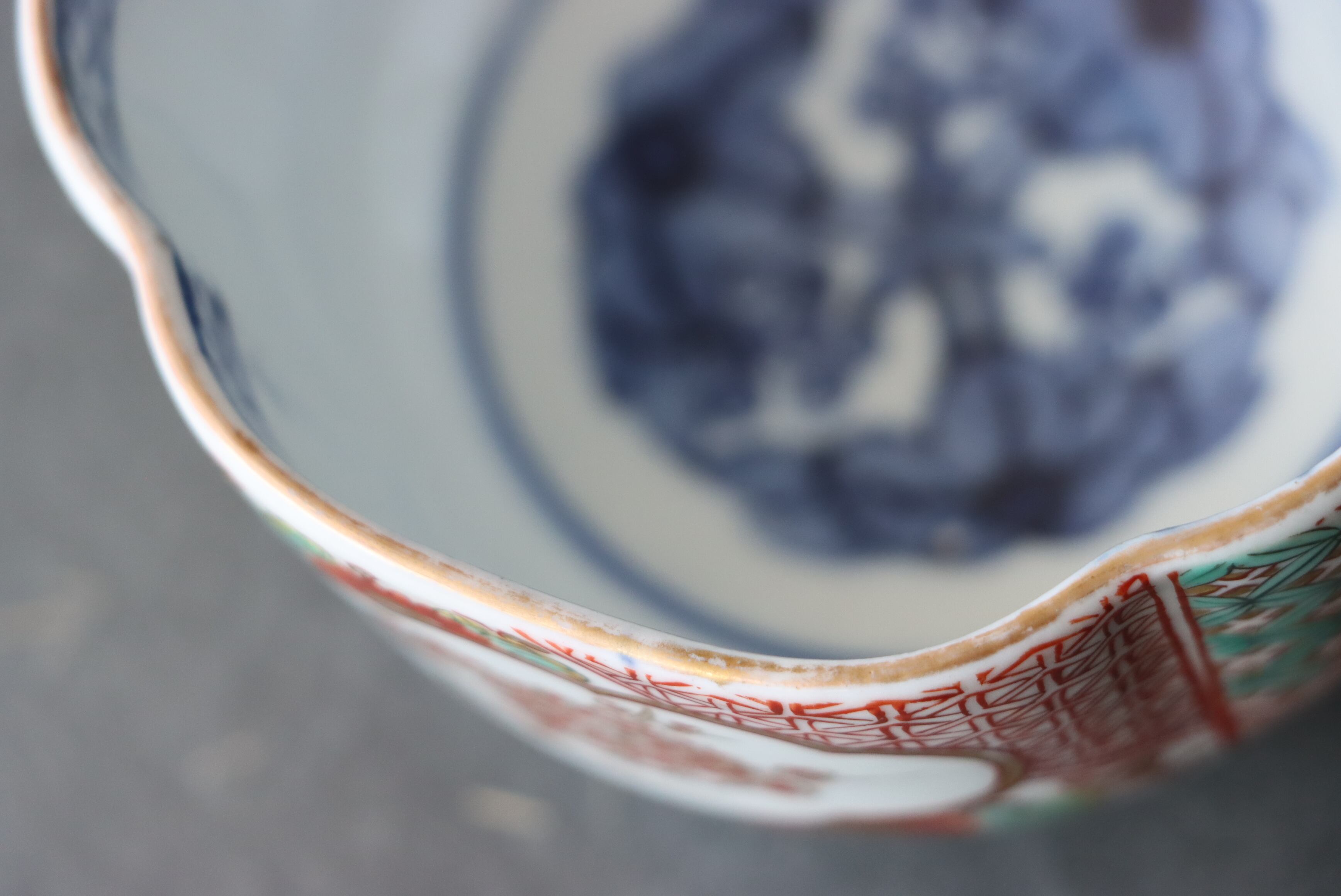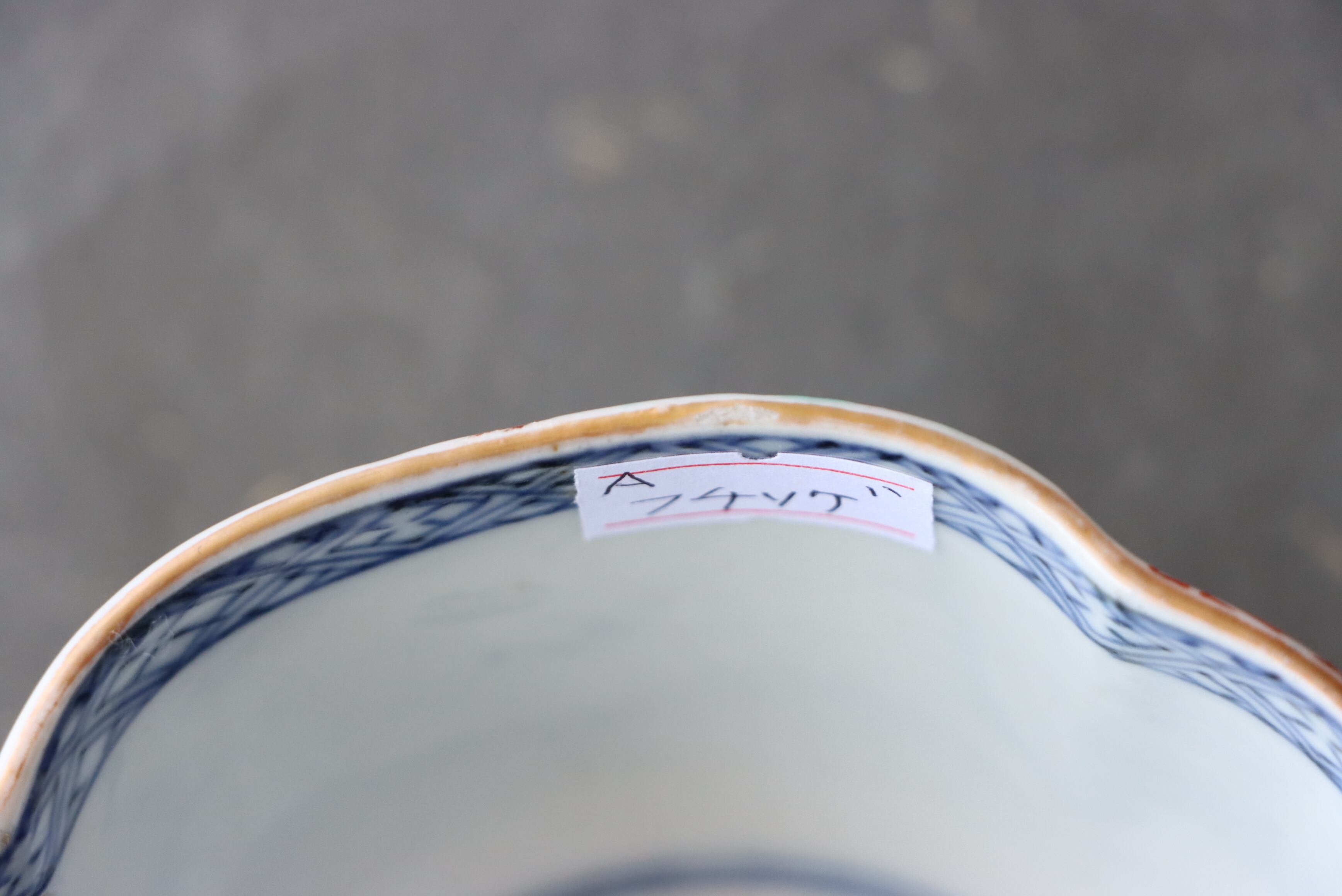 状態:フチソゲ(約0.5センチ)あり。口縁に施されている金彩が剥離している箇所があります。