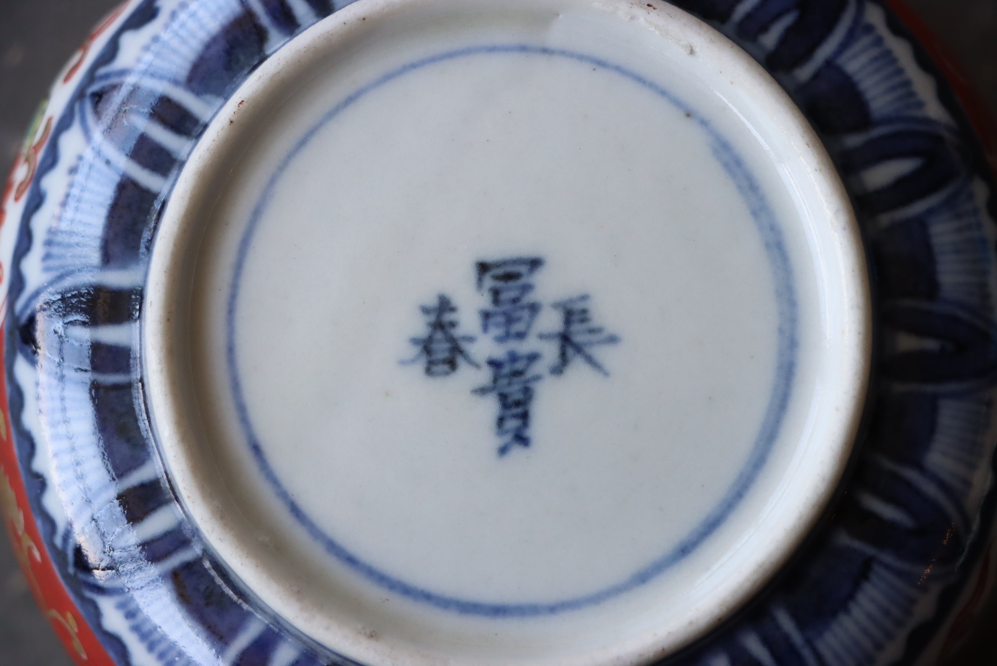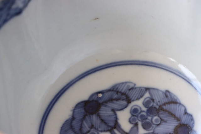焼成時に窯の中でできる鉄分、くっつき、かまきず、ピンホール、経年による釉薬の薄れがございます。また、一枚一枚手描き、手作りですので器のサイズ(ミリ)、色味、描かれている文様の大きさなど個体差があり、ひとつとして同じものはございません。そういった時代感、個性をご理解いただき、楽しんでくだされば幸いです。電子レンジや食器洗い乾燥機のご使用はお控えください。