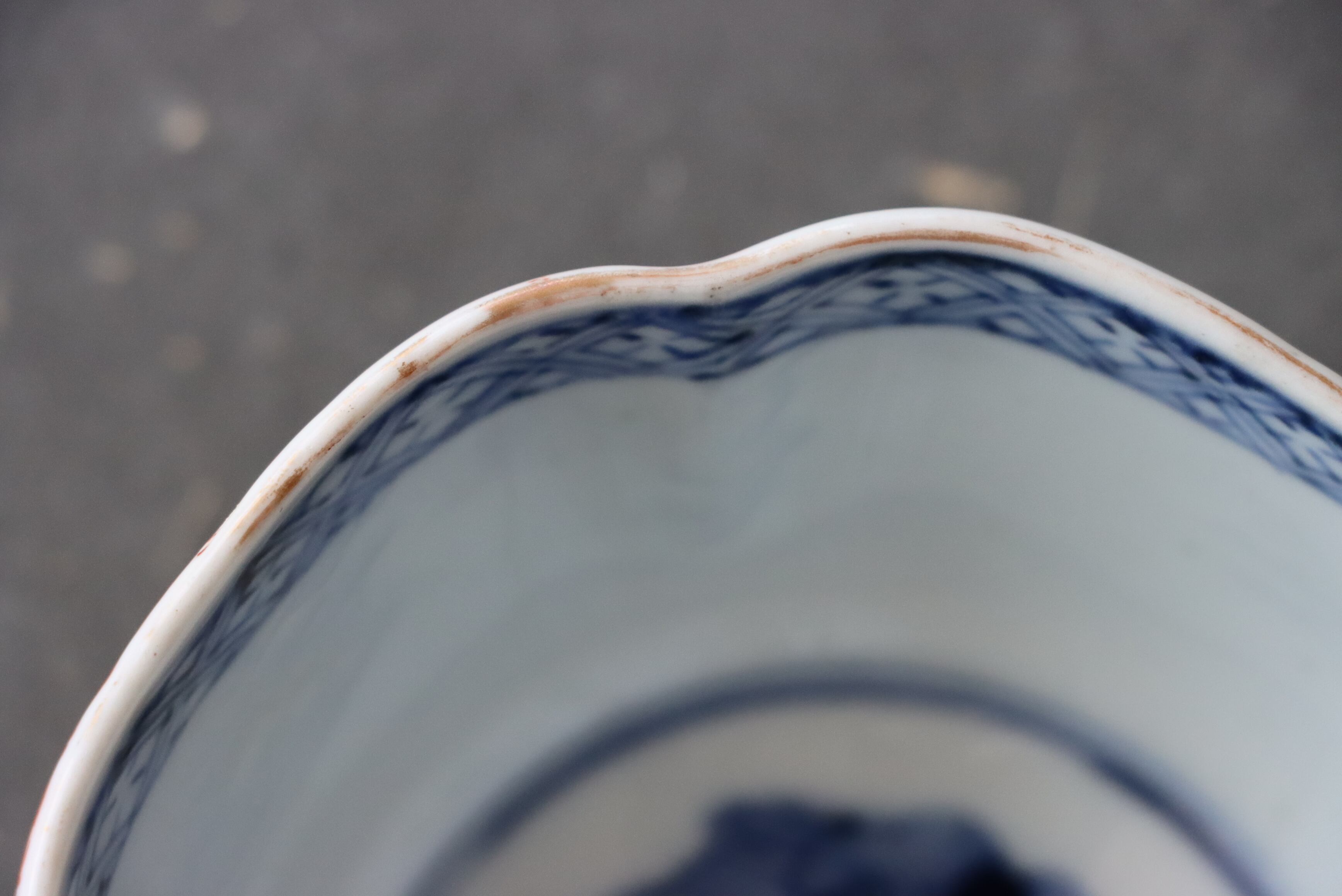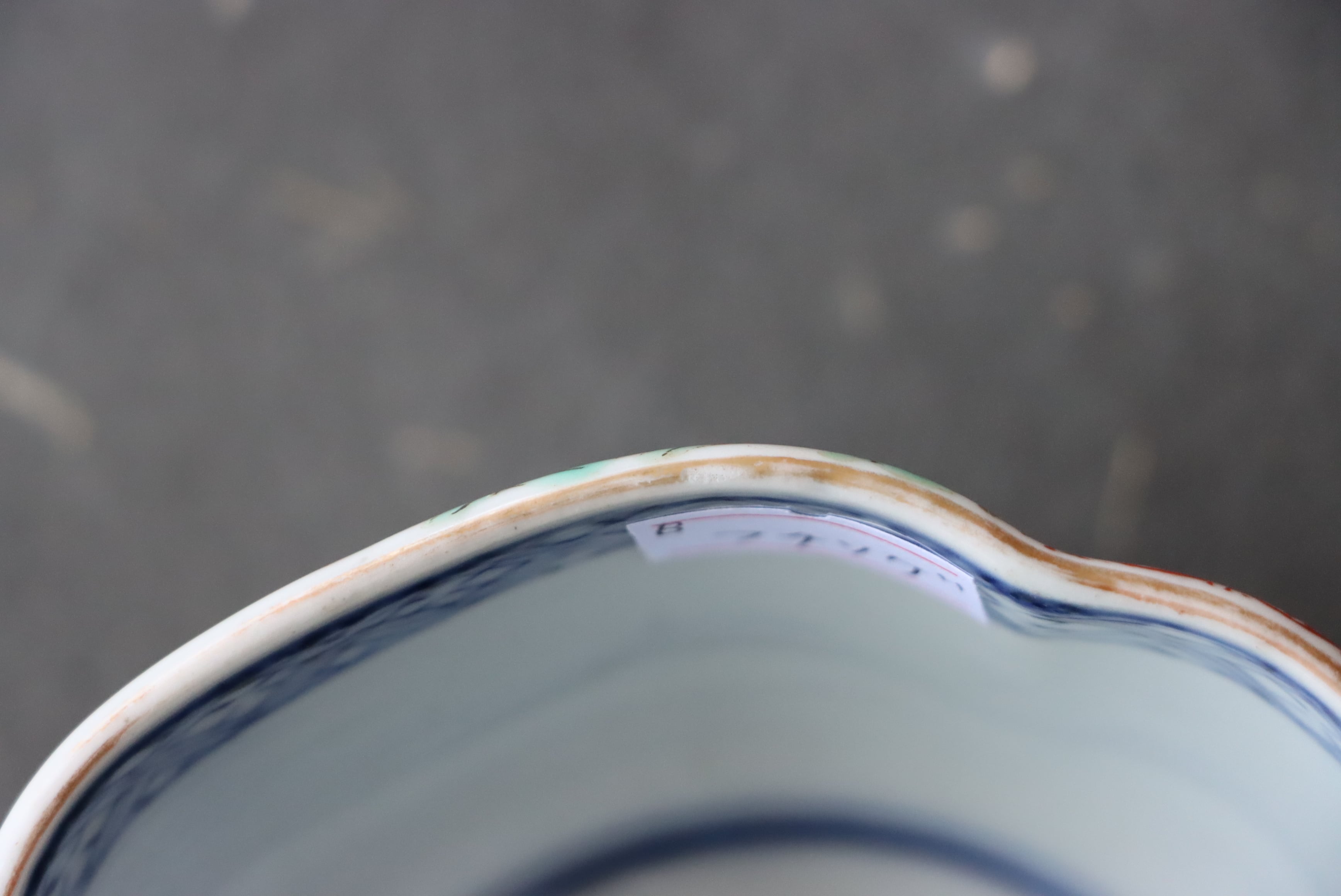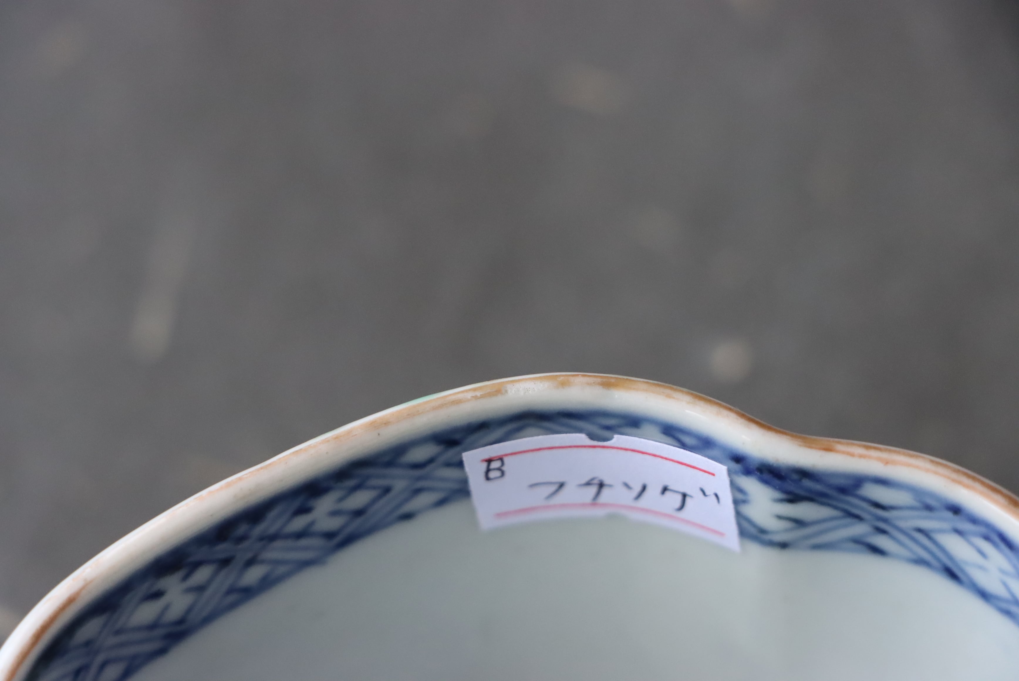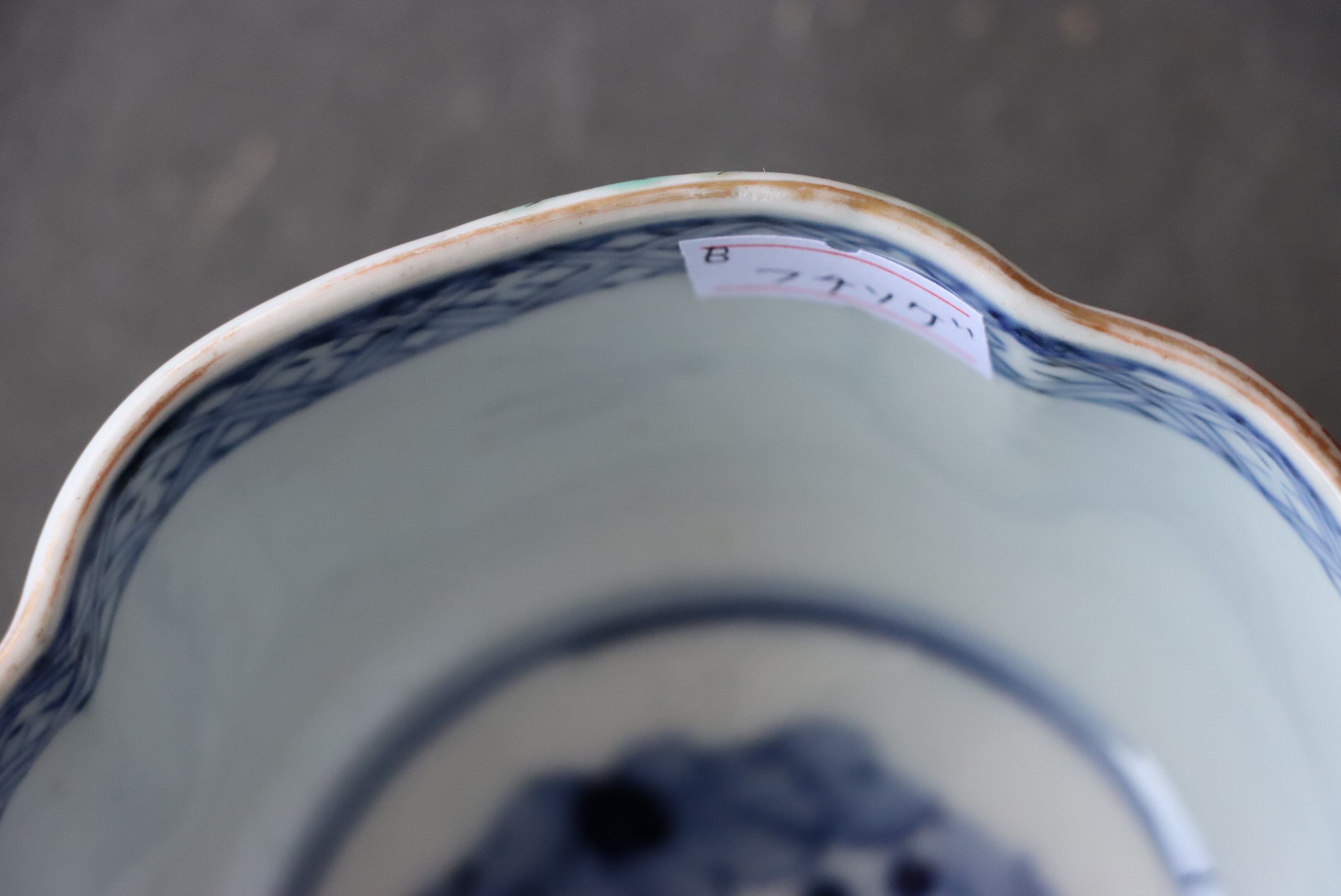 状態:フチソゲ(約0.5センチ)あり。口縁に施されている金彩が剥離している箇所があります。