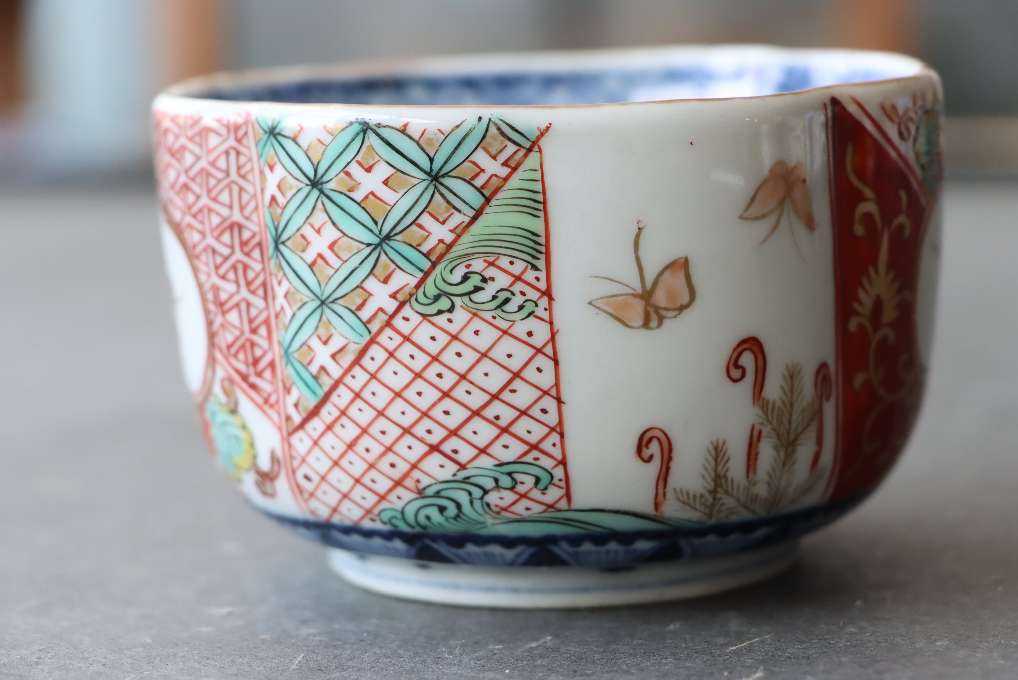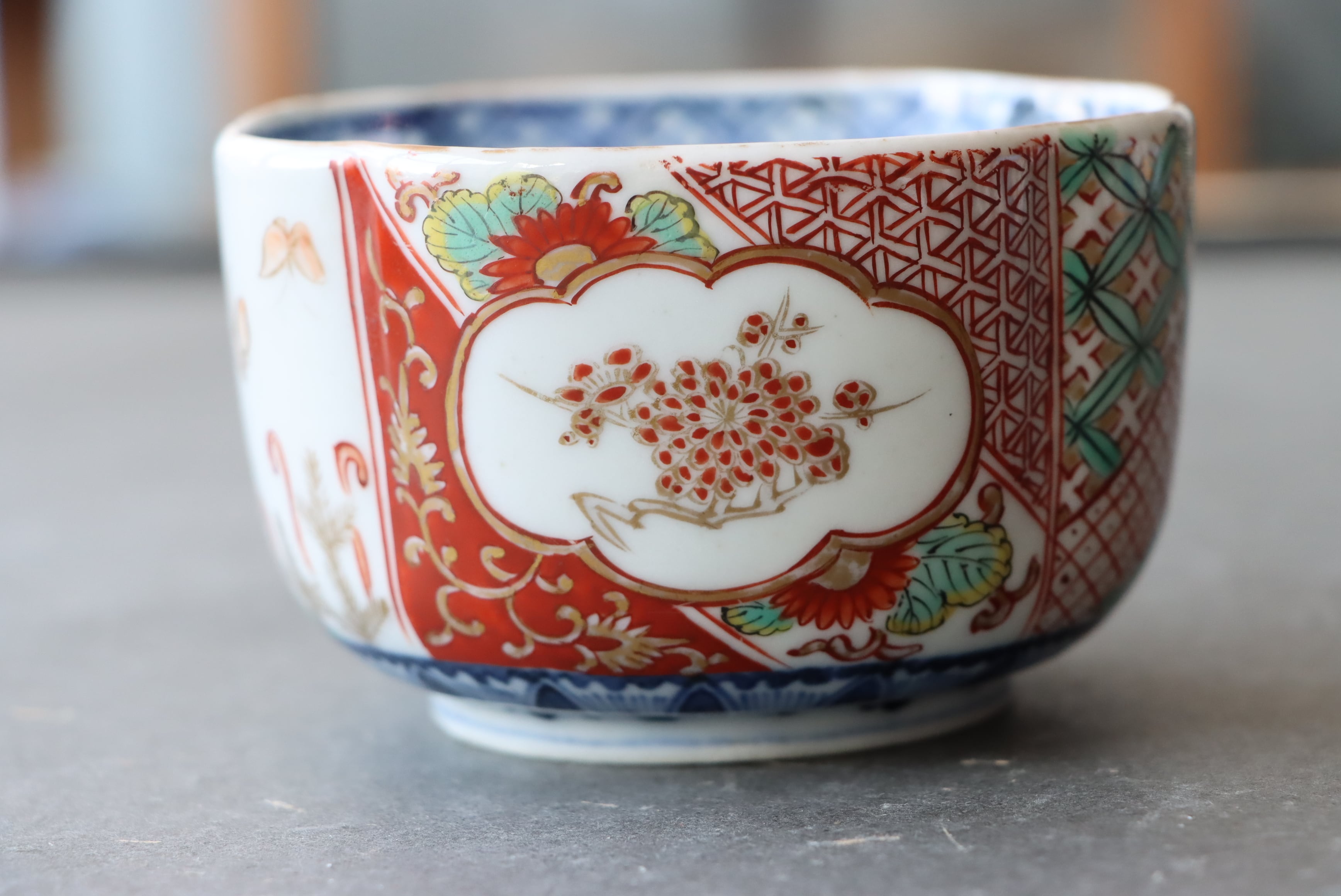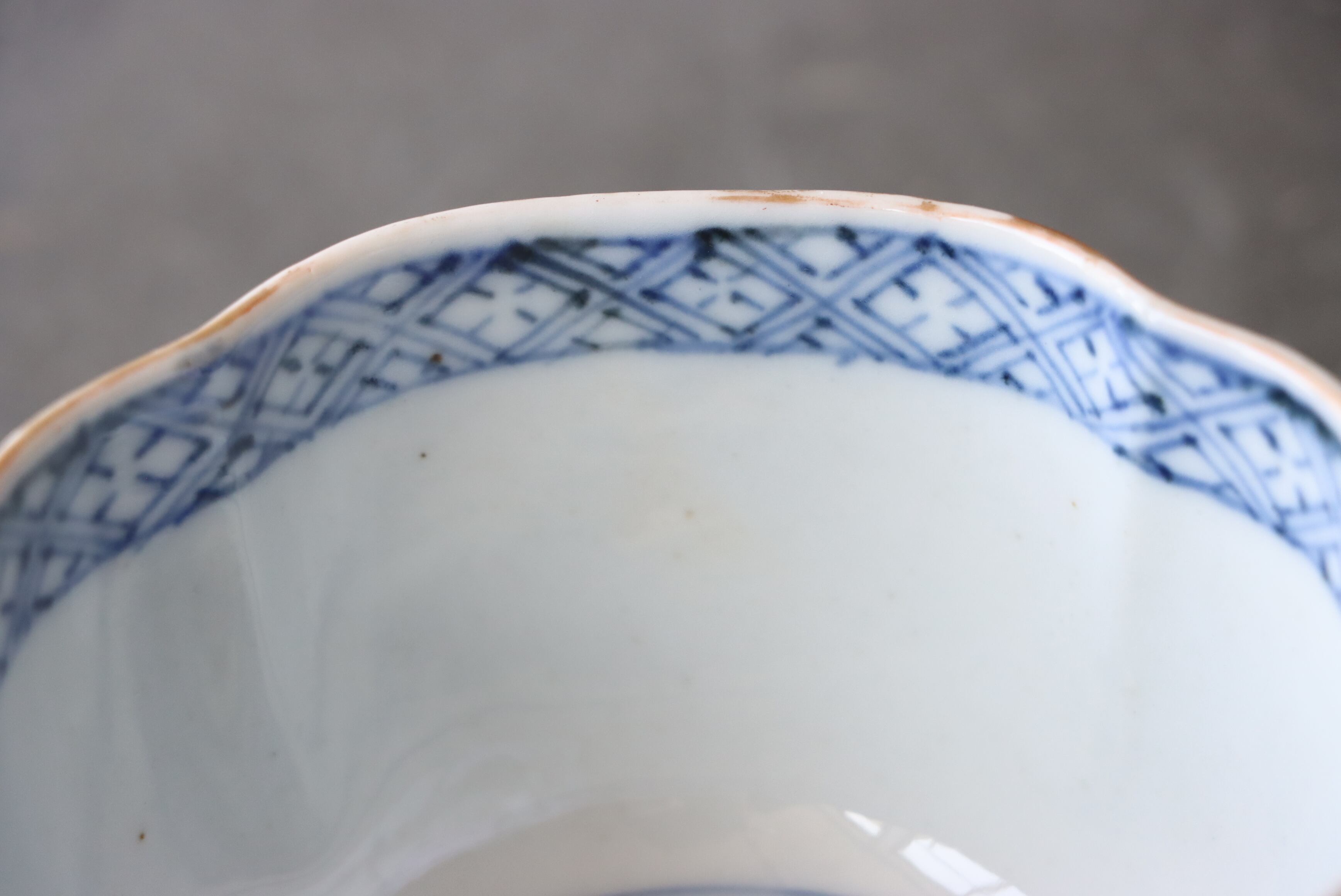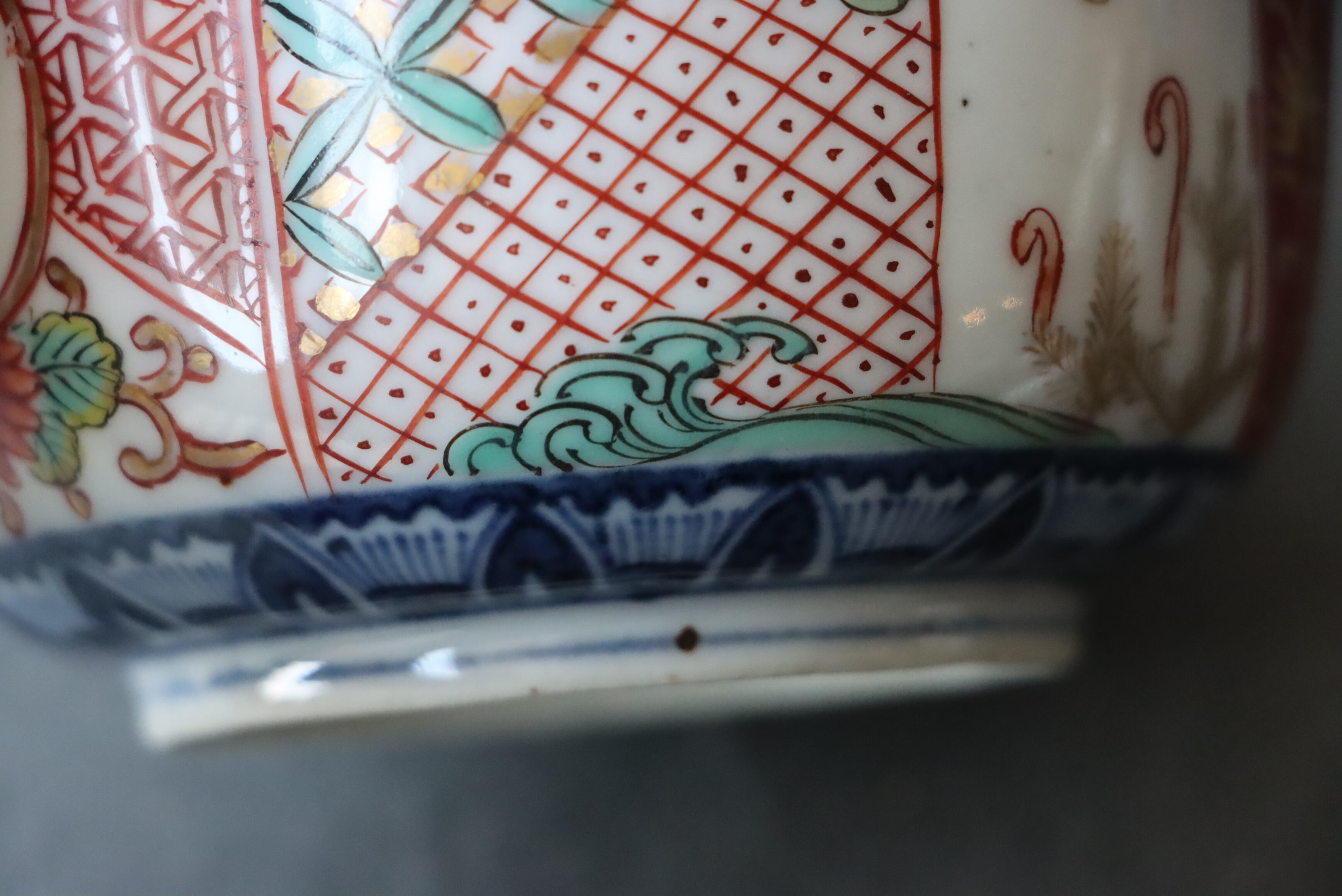 状態:フチソゲ(約0.5センチ)あり。口縁に施されている金彩が剥離している箇所があります。