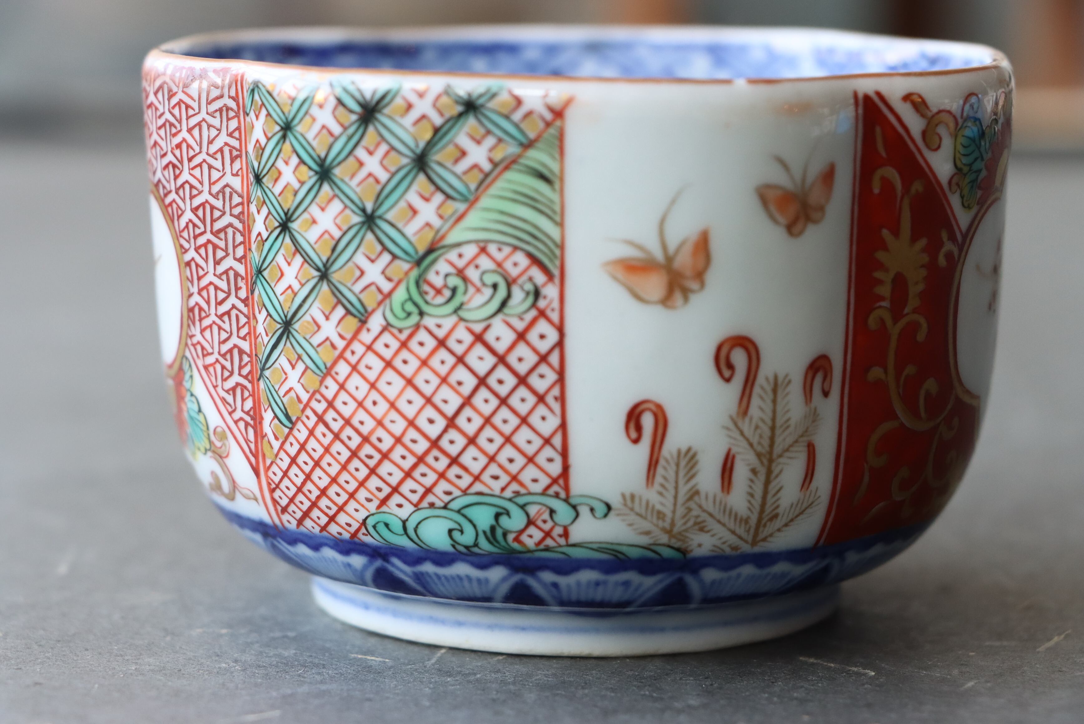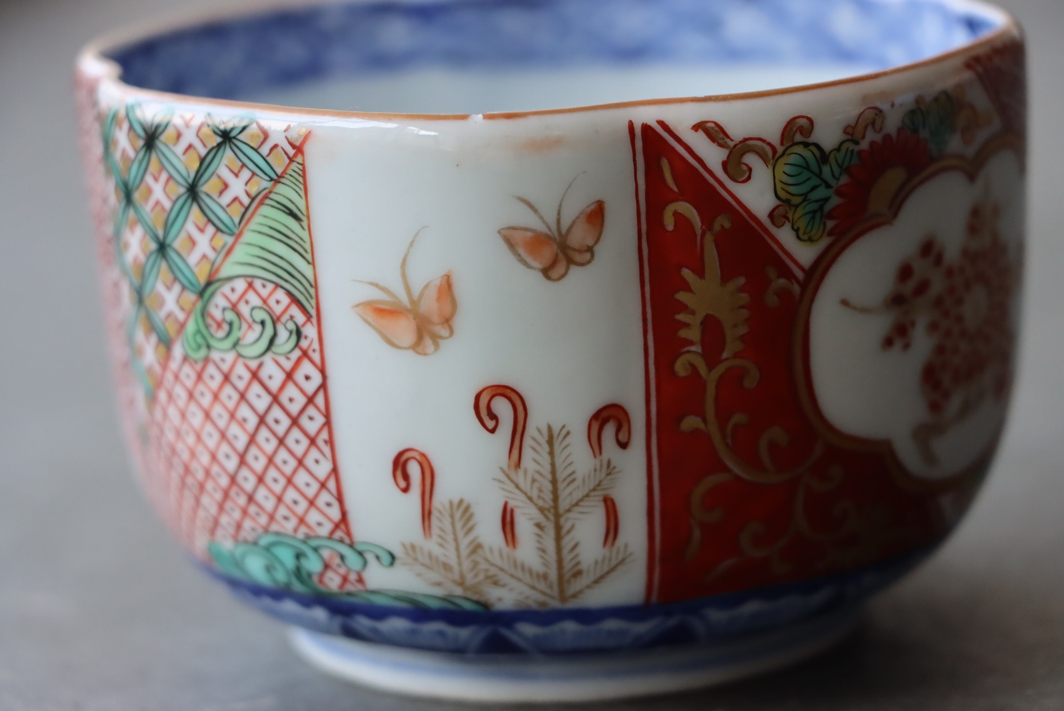 焼成時に窯の中でできる鉄分、くっつき、かまきず、ピンホール、経年による釉薬の薄れがございます。また、一枚一枚手描き、手作りですので器のサイズ(ミリ)、色味、描かれている文様の大きさなど個体差があり、ひとつとして同じものはございません。そういった時代感、個性をご理解いただき、楽しんでくだされば幸いです。電子レンジや食器洗い乾燥機のご使用はお控えください。