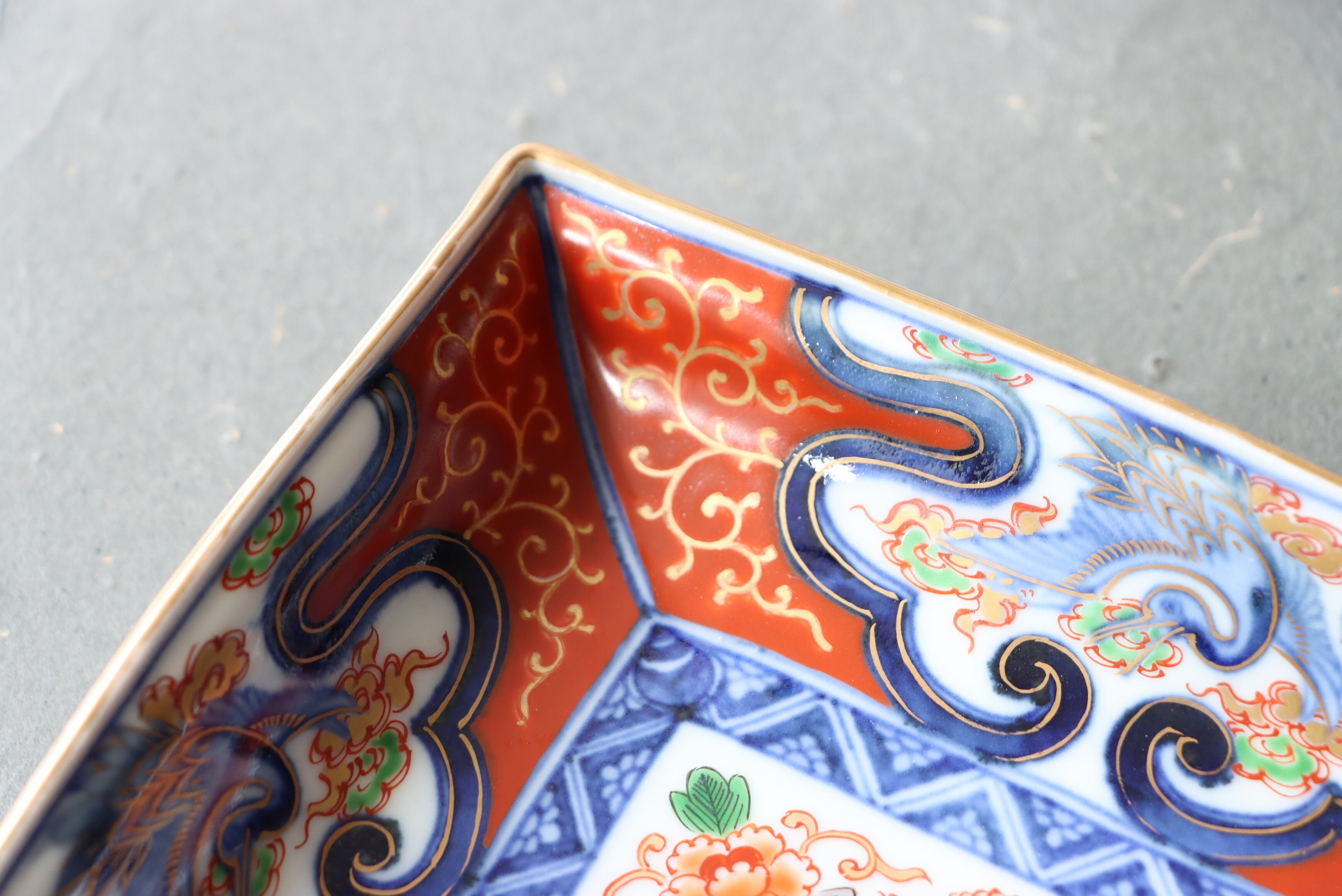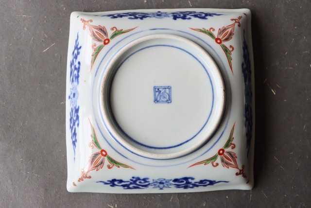 古伊万里 色絵 雲鶴文 角皿 B/Old Imari square shaped plate