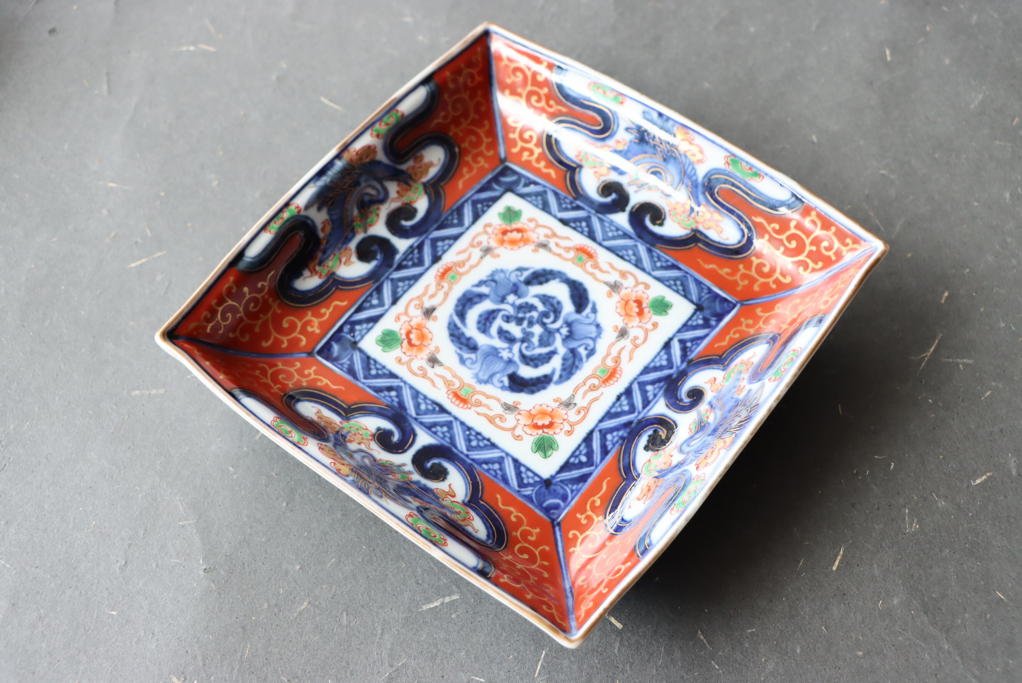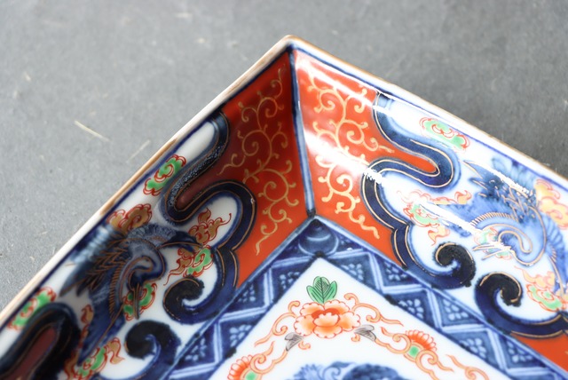 古伊万里 色絵 雲鶴文 角皿 A/Old Imari square shaped plate