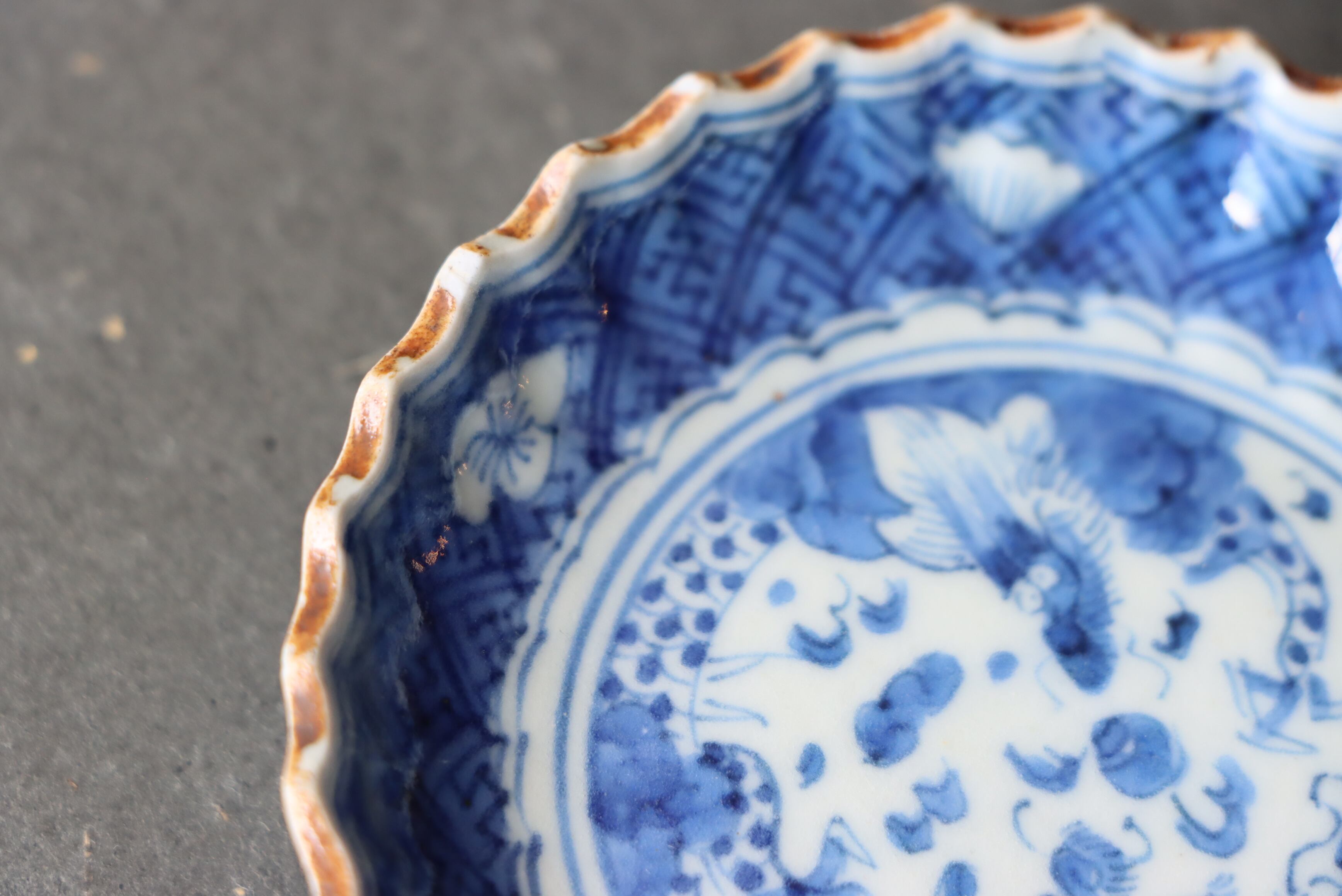 伊万里焼 染付 龍宝珠文 綾花 豆皿/Imari small plate less than 10cm