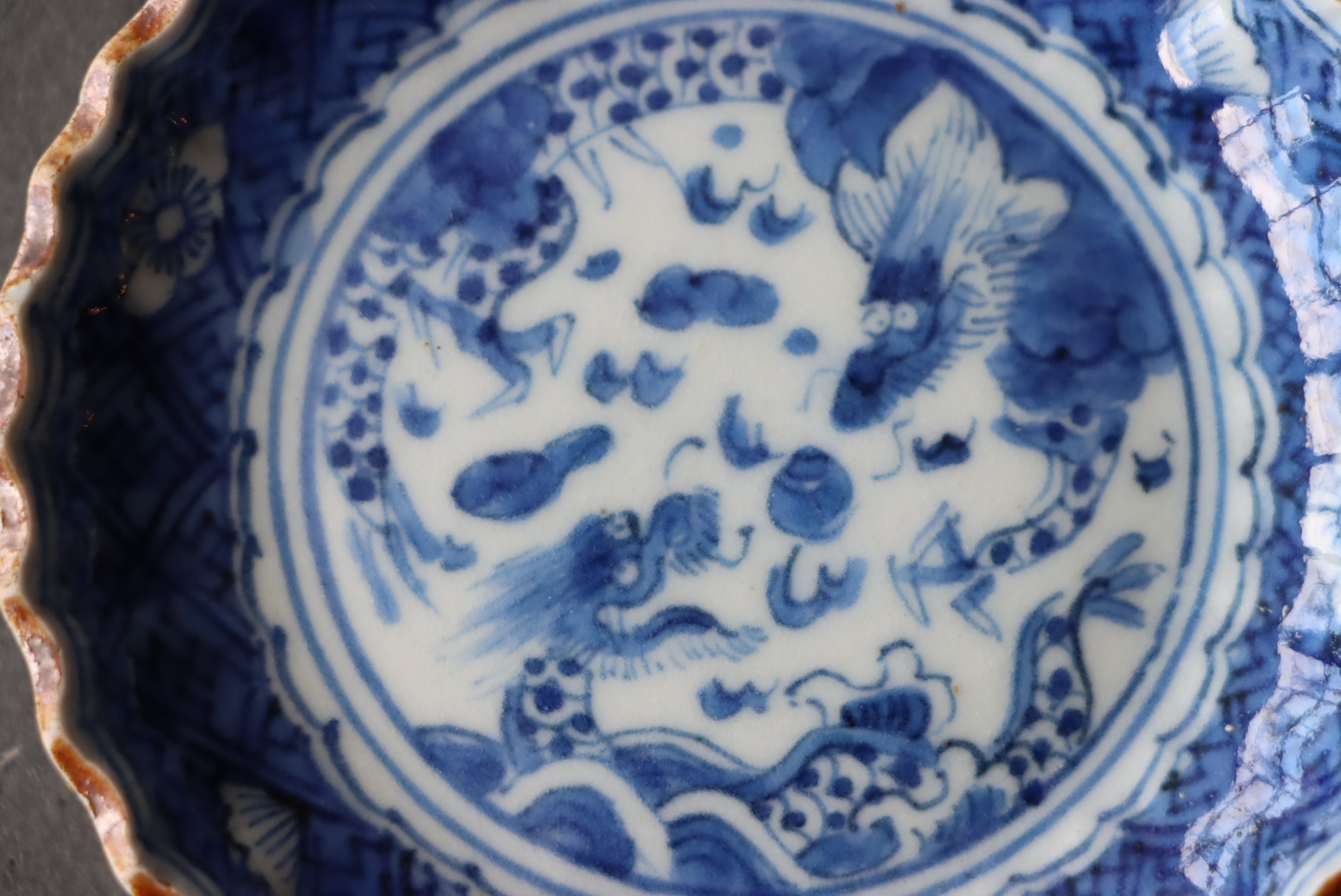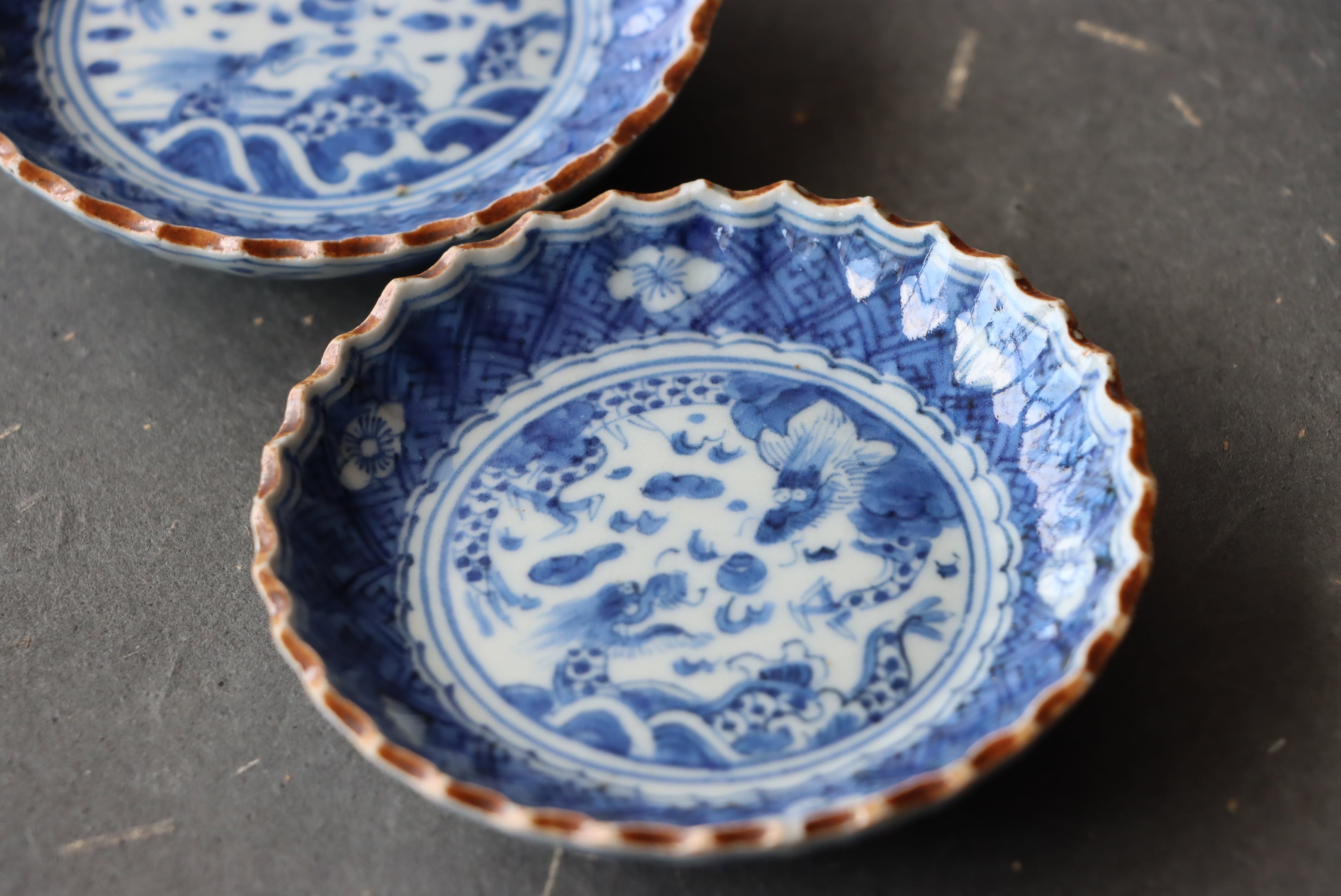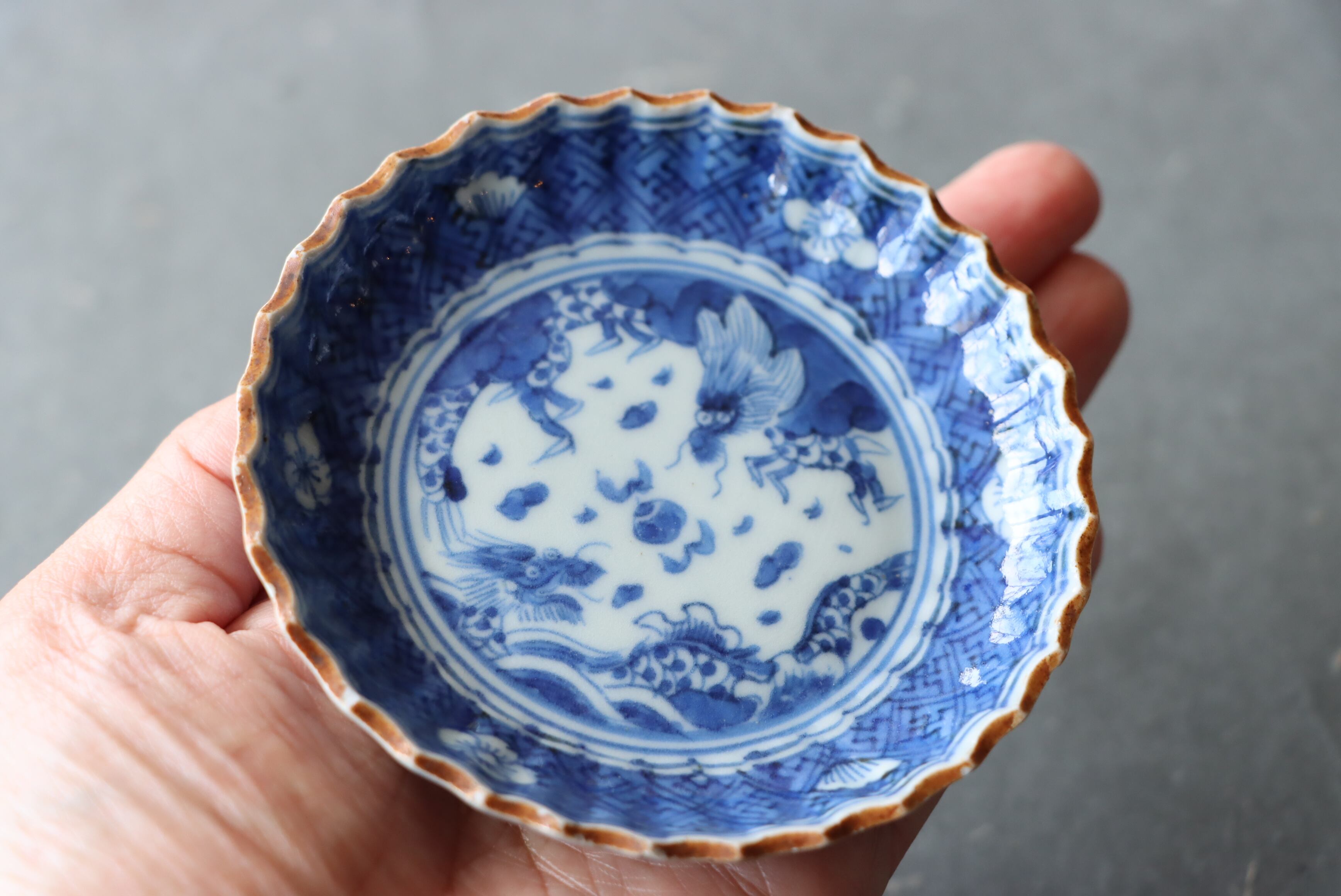 【Imari blue and white small plate less than 10 cm with dragon and jewell design.】