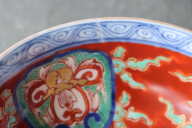 伊万里焼 色絵 赤玉瓔珞龍文 膾皿/Imari "Namasu" bowl