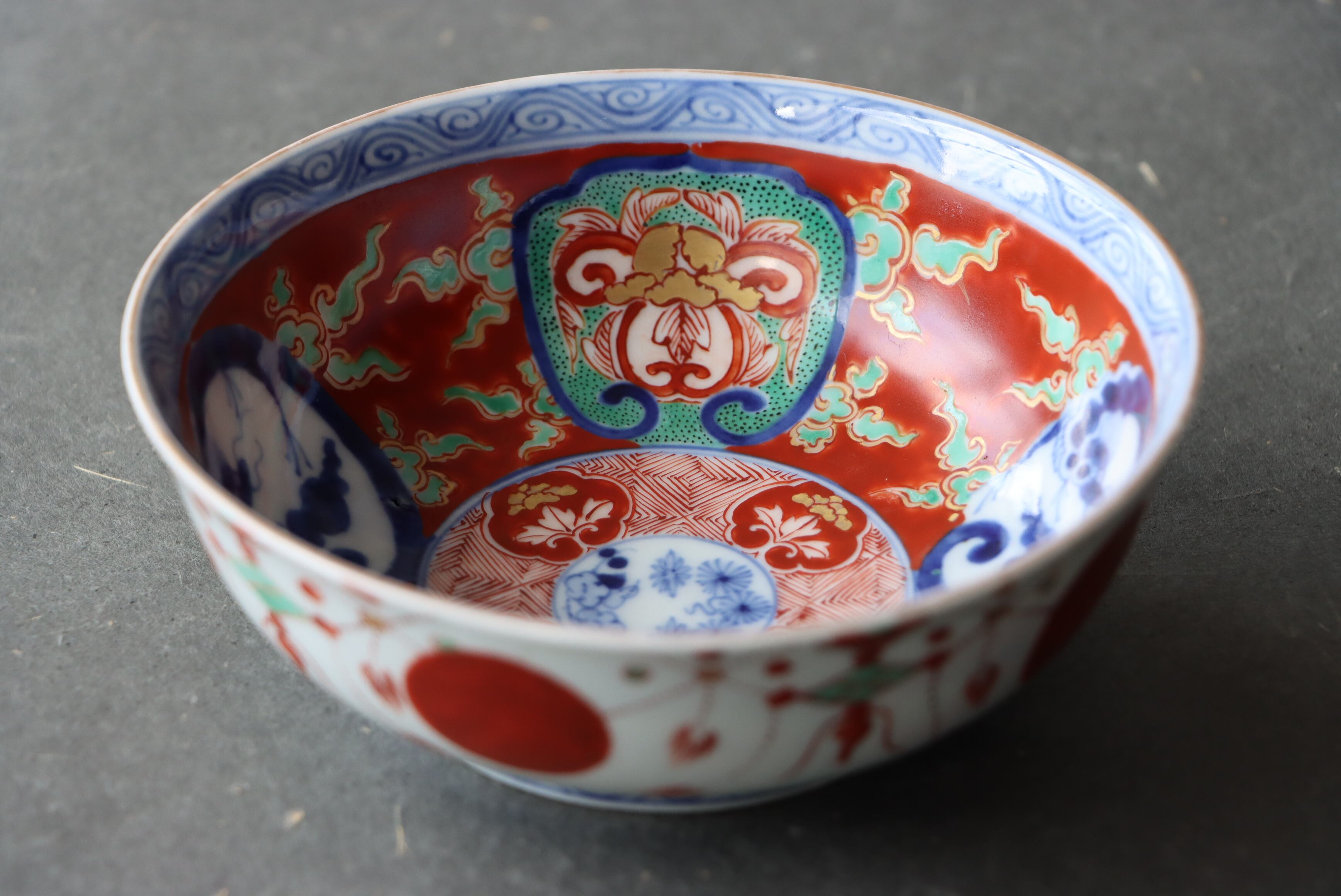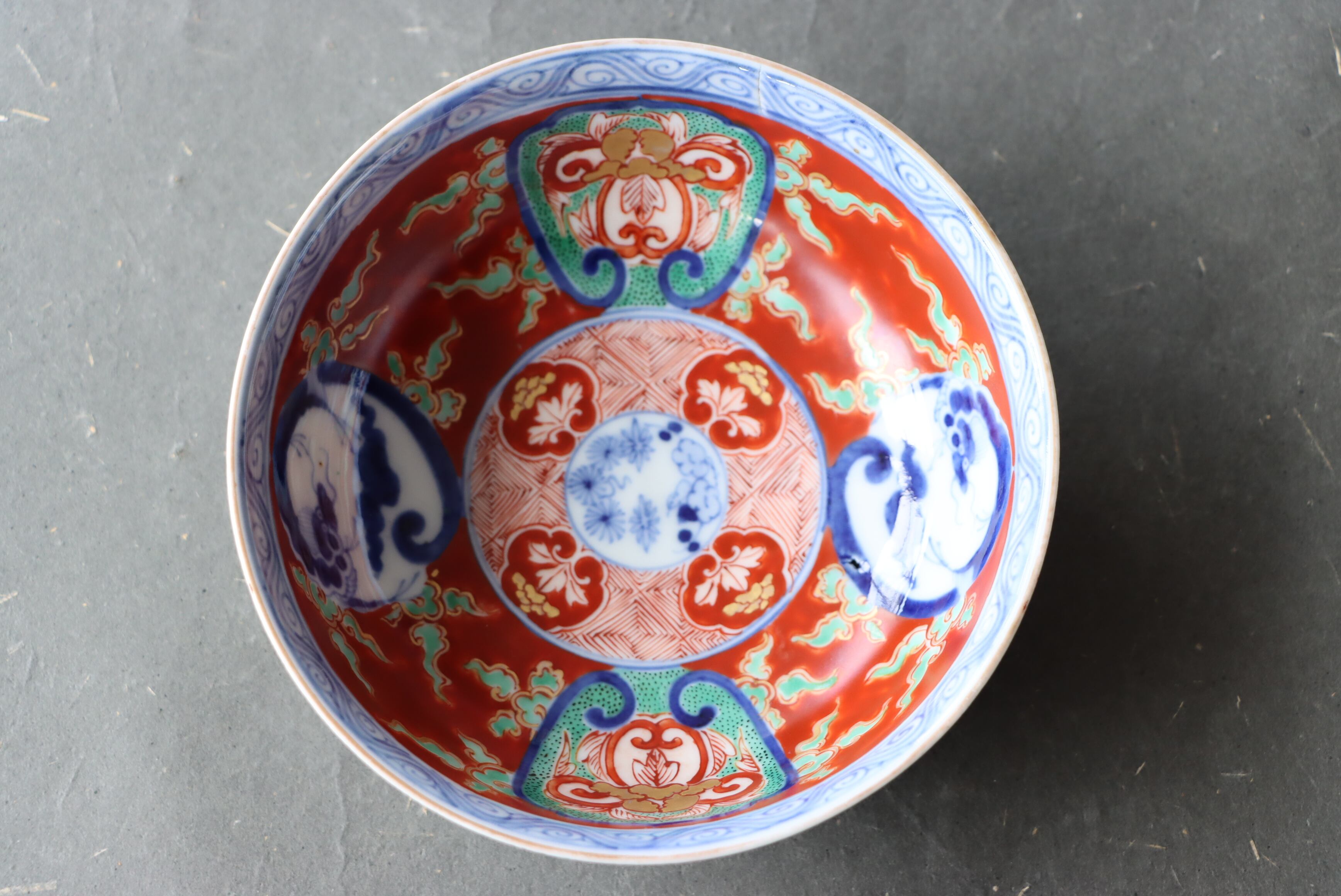 【Imari "Namasu" bowl with "Akadama Yo-raku" pattern in overglaze enamels.】