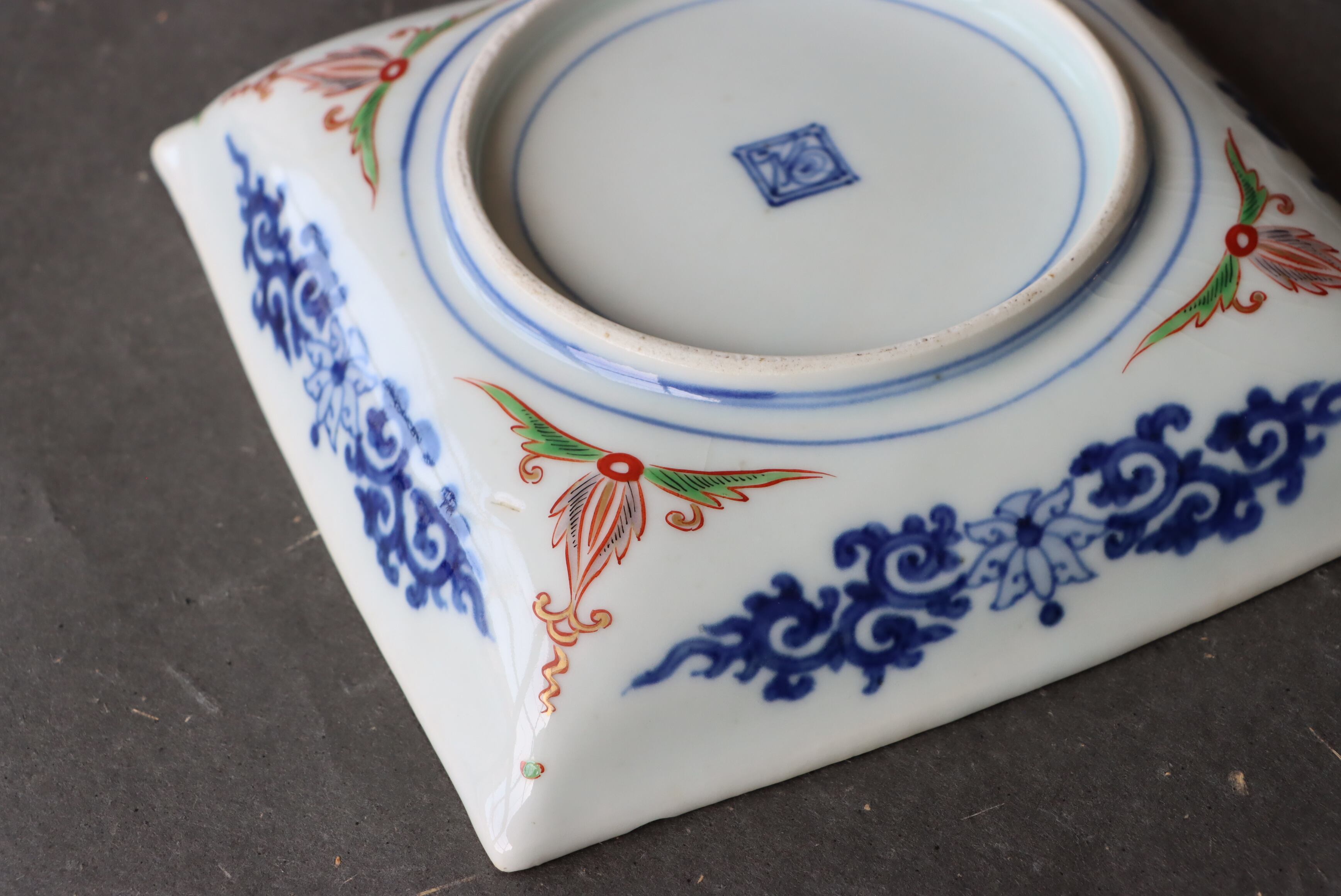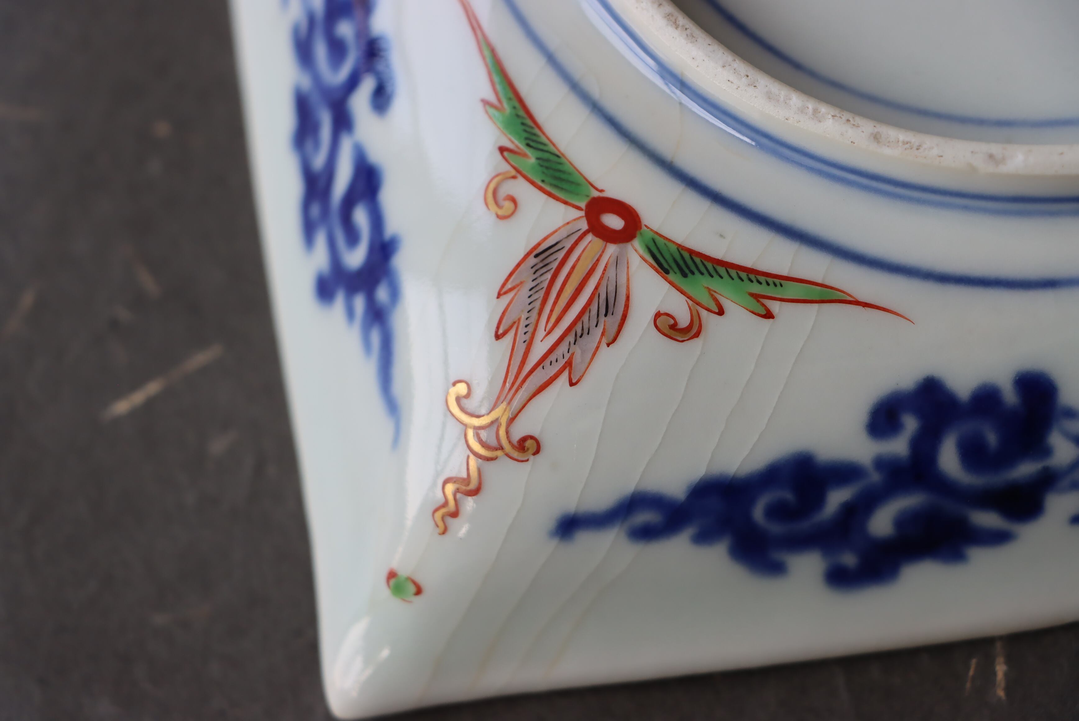 状態:こちらは胴部分が一部色絵のものです。