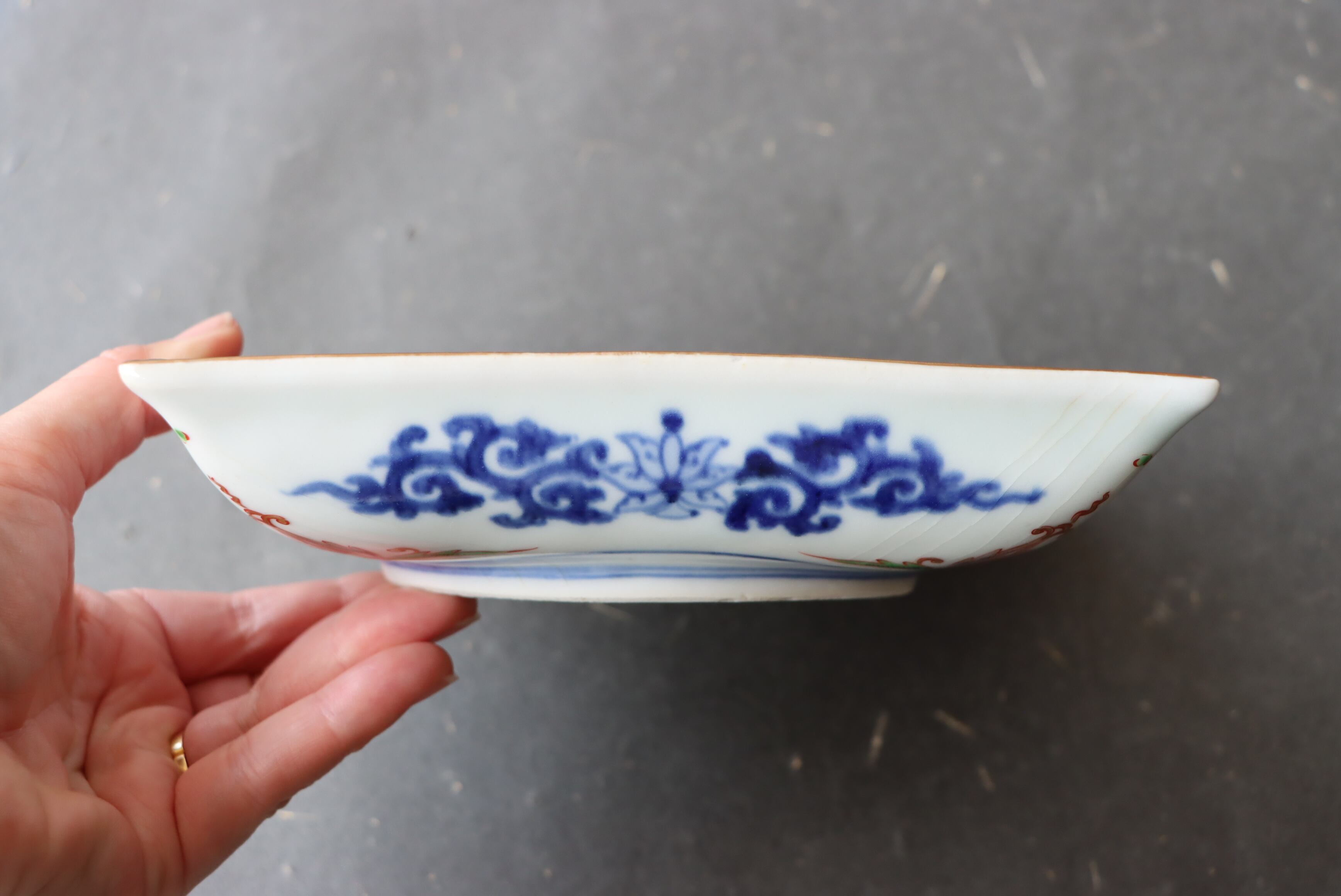 同じ木箱に入っていましたが胴部分がすべて染付のものと、一部に色絵が施されたものがございます。