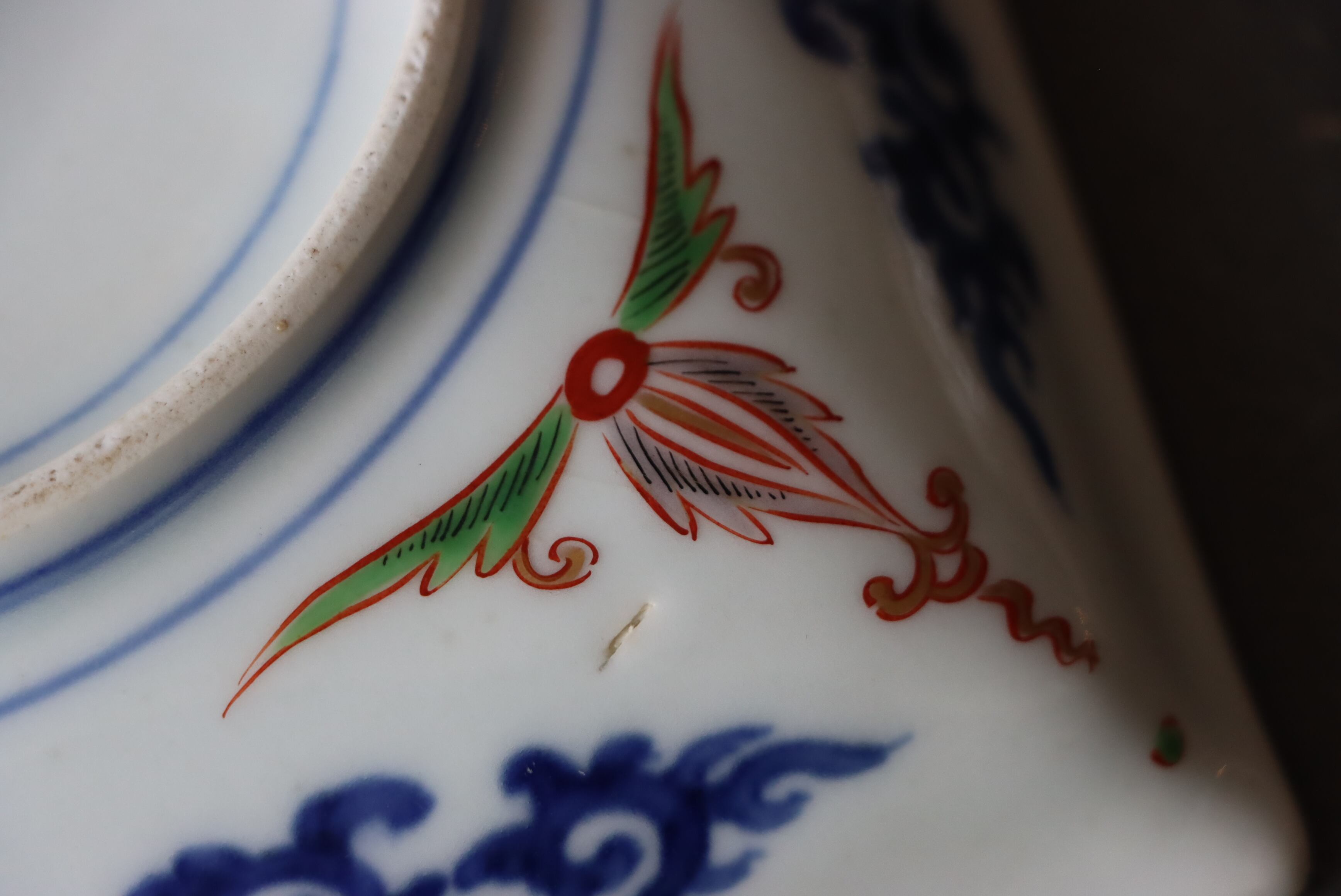 焼成時に窯の中でできる鉄分、くっつき、かまきず、ピンホール、経年による釉薬の薄れがございます。また、一枚一枚手描き、手作りですので器のサイズ(ミリ)、色味、描かれている文様の大きさなど個体差があり、ひとつとして同じものはございません。そういった時代感、個性をご理解いただき、楽しんでくだされば幸いです。電子レンジや食器洗い乾燥機のご使用はお控えください。