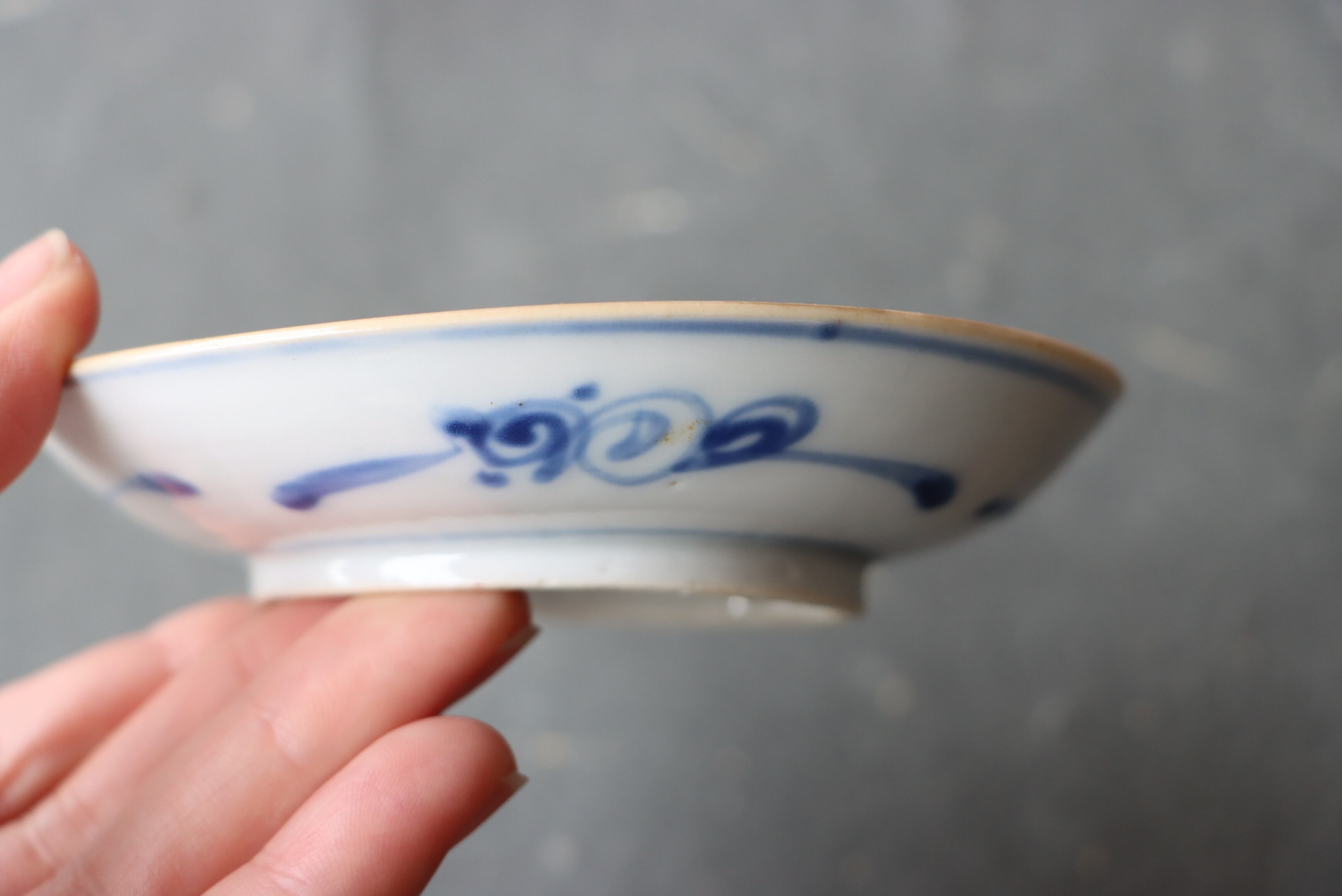 焼成時に窯の中でできる鉄分、くっつき、かまきず、ピンホール、経年による釉薬の薄れがございます。また、一枚一枚手描き、手作りですので器のサイズ(ミリ)、色味、描かれている文様の大きさなど個体差があり、ひとつとして同じものはございません。そういった時代感、個性をご理解いただき、楽しんでくだされば幸いです。電子レンジや食器洗い乾燥機のご使用はお控えください。