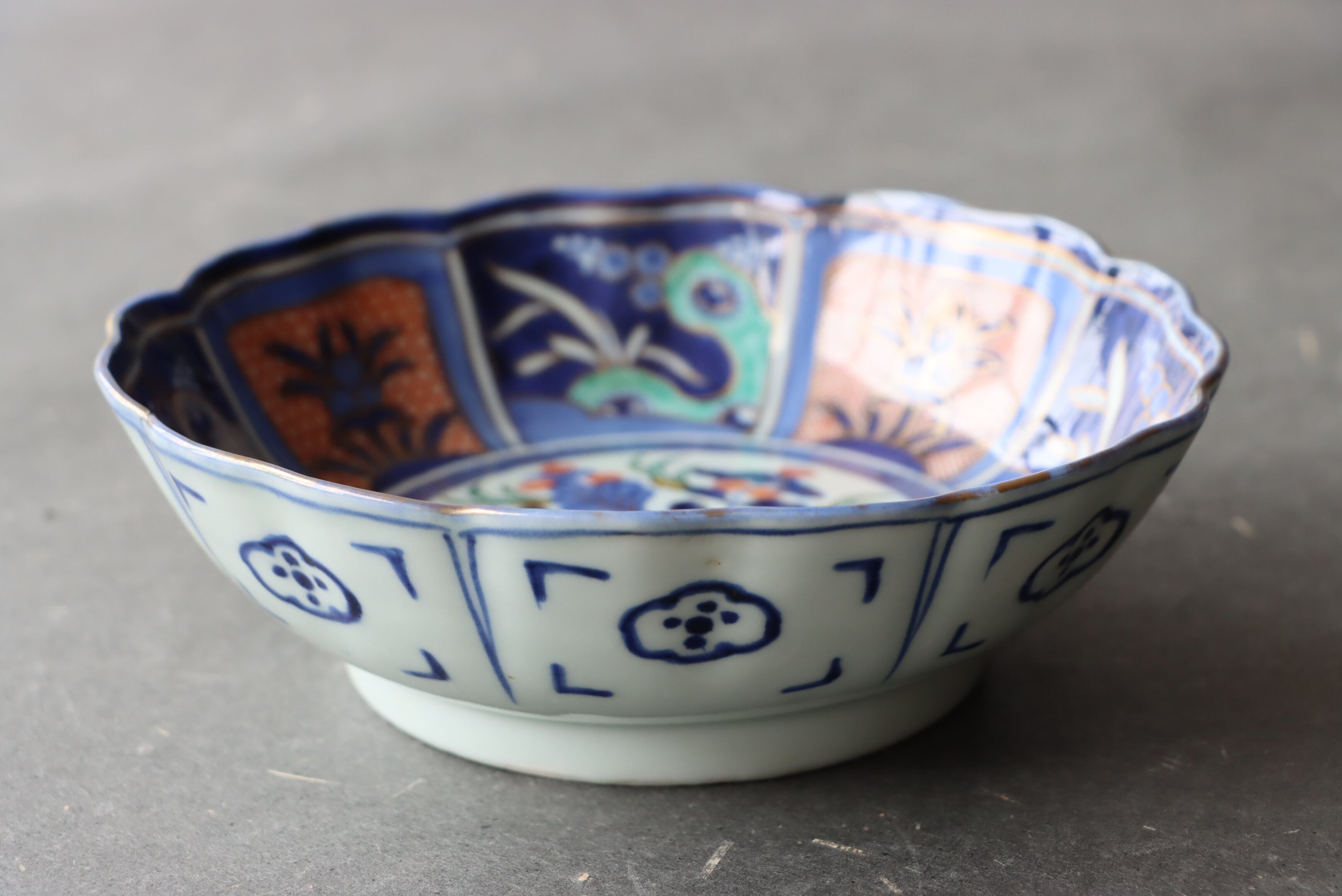 焼成時に窯の中でできる鉄分、くっつき、かまきず、ピンホール、経年による釉薬の薄れがございます。また、一枚一枚手描き、手作りですので器のサイズ(ミリ)、色味、描かれている文様の大きさなど個体差があり、ひとつとして同じものはございません。そういった時代感、個性をご理解いただき、楽しんでくだされば幸いです。電子レンジや食器洗い乾燥機のご使用はお控えください。