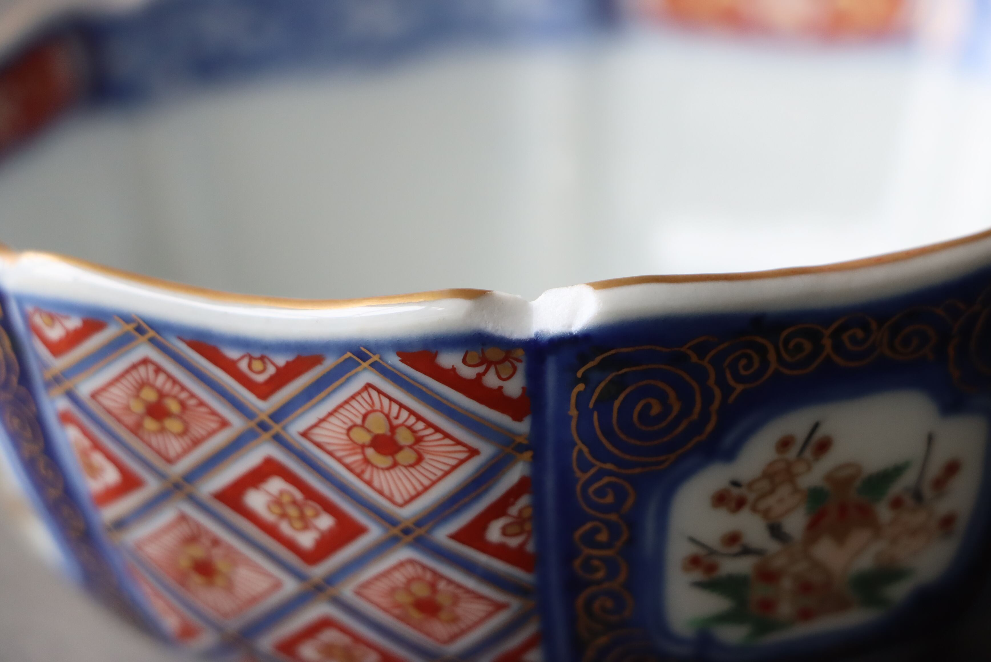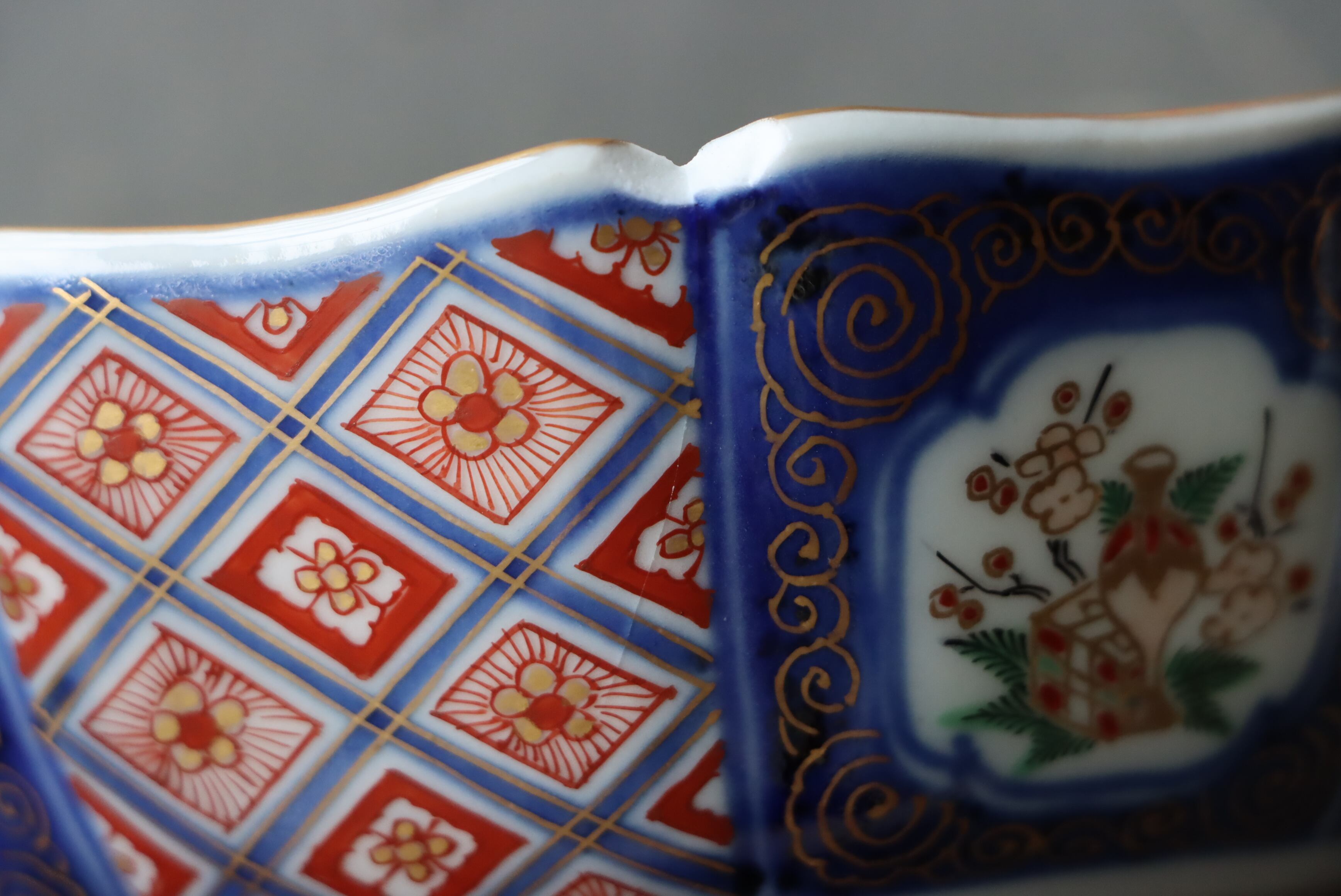 状態:カケ(約1センチ)、カケと同じ箇所からニュウ(約3センチ)あり。お写真で状態をご確認ください。