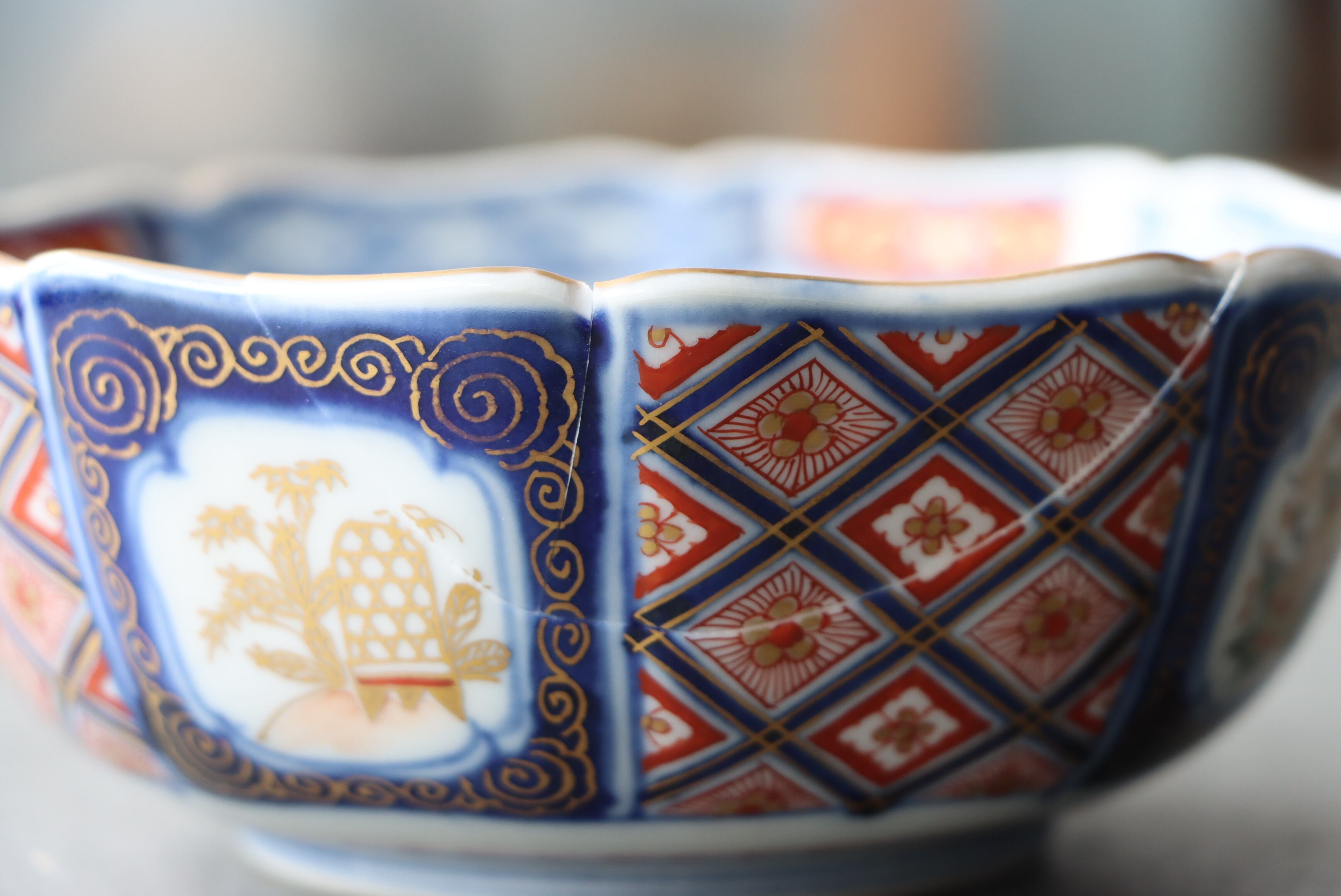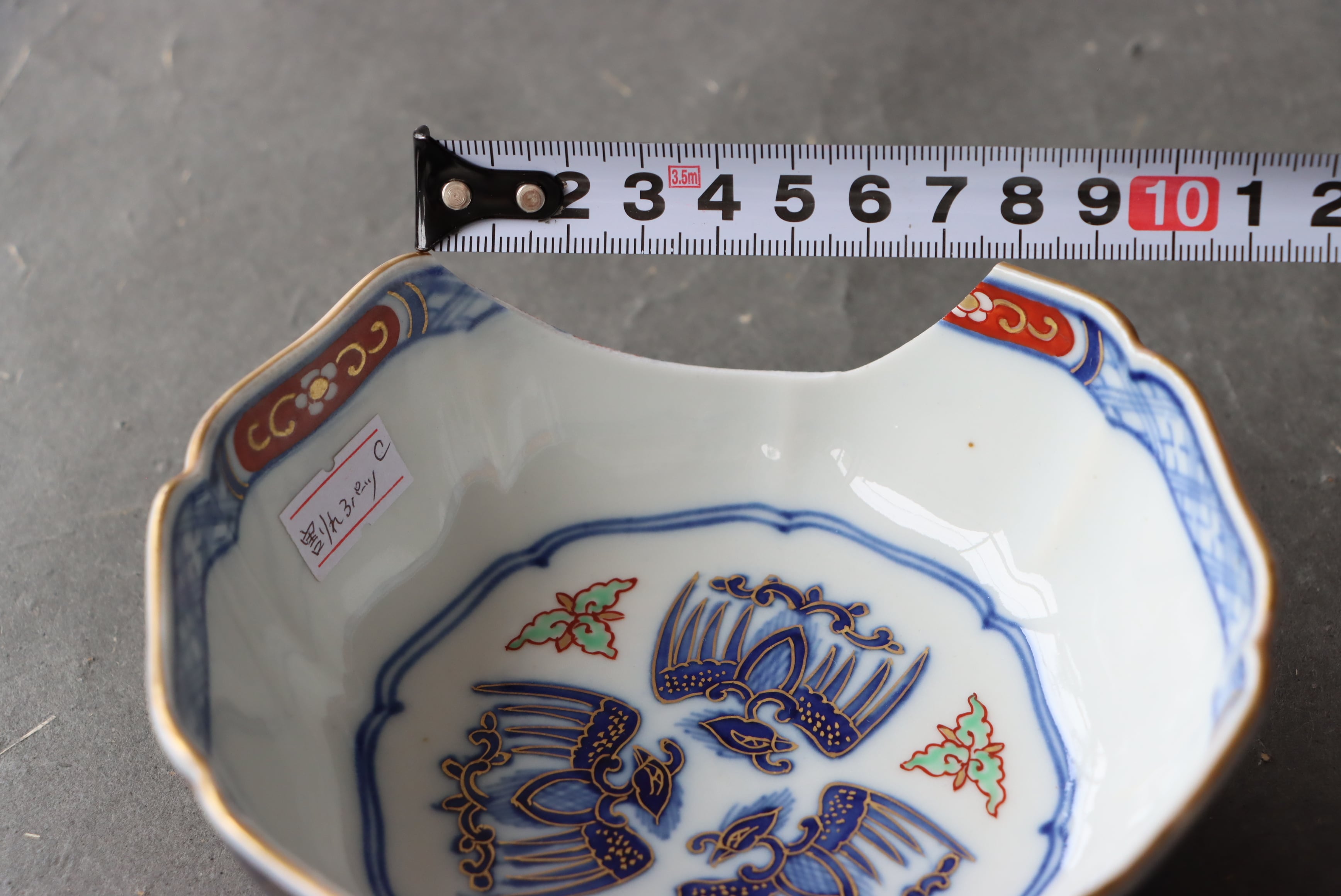 焼成時に窯の中でできる鉄分、くっつき、かまきず、ピンホール、経年による釉薬の薄れがございます。また、一枚一枚手描き、手作りですので器のサイズ(ミリ)、色味、描かれている文様の大きさなど個体差があり、ひとつとして同じものはございません。そういった時代感、個性をご理解いただき、楽しんでくだされば幸いです。電子レンジや食器洗い乾燥機のご使用はお控えください。
