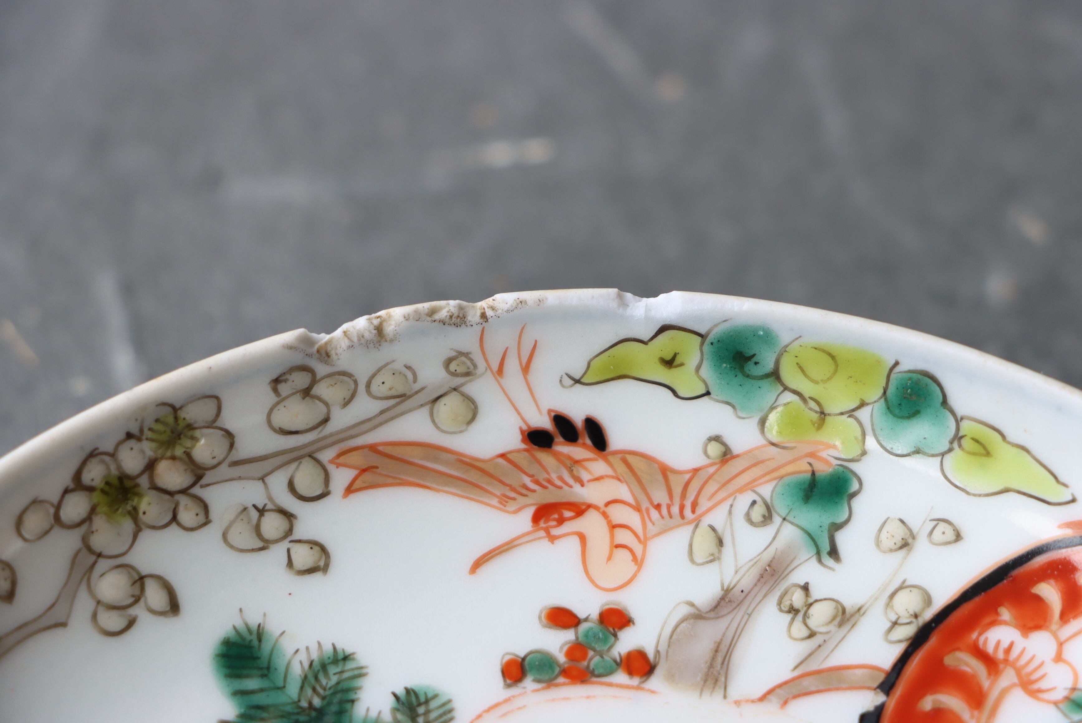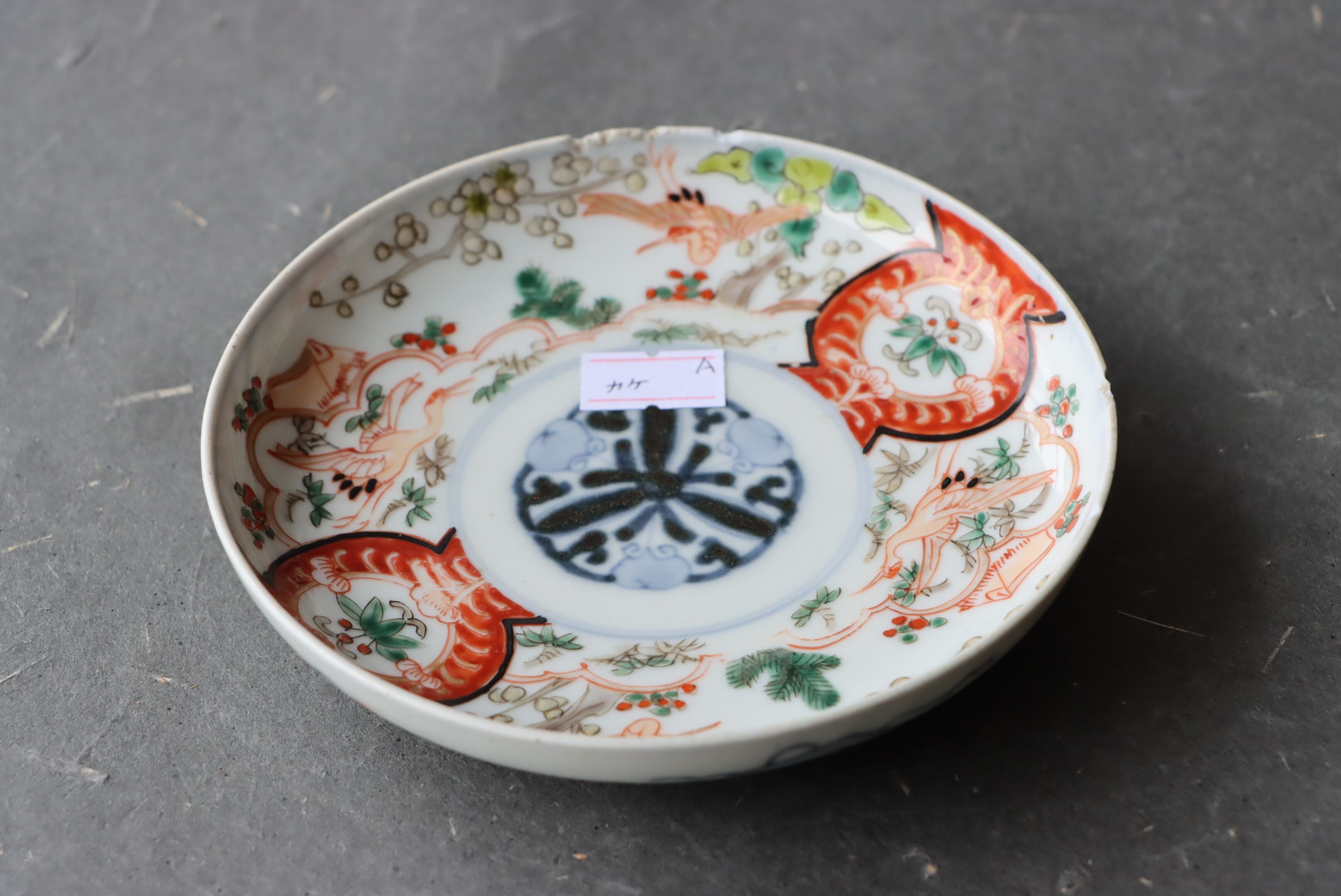 焼成時に窯の中でできる鉄分、くっつき、かまきず、ピンホール、経年による釉薬の薄れがございます。また、一枚一枚手描き、手作りですので器のサイズ(ミリ)、色味、描かれている文様の大きさなど個体差があり、ひとつとして同じものはございません。そういった時代感、個性をご理解いただき、楽しんでくだされば幸いです。電子レンジや食器洗い乾燥機のご使用はお控えください。