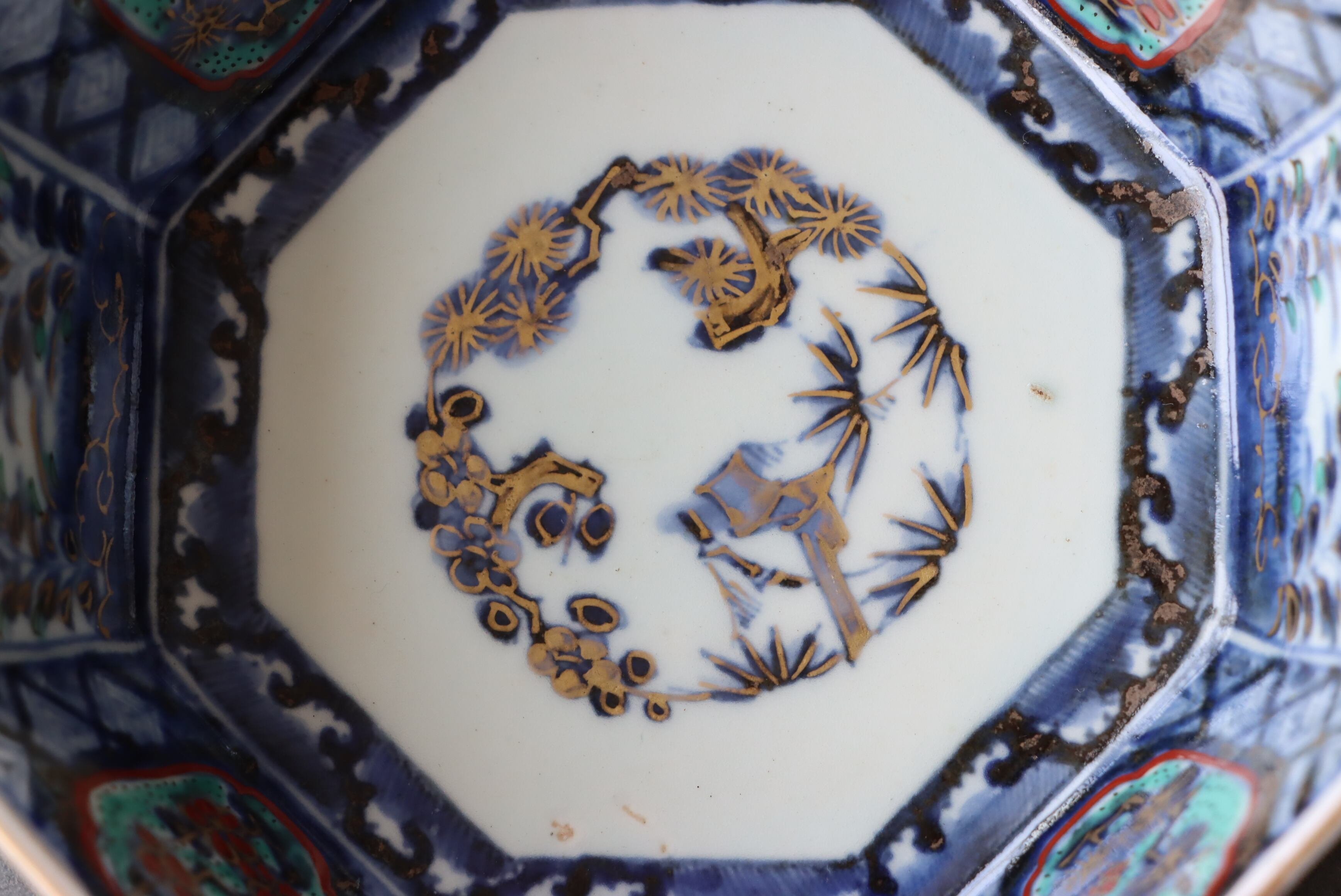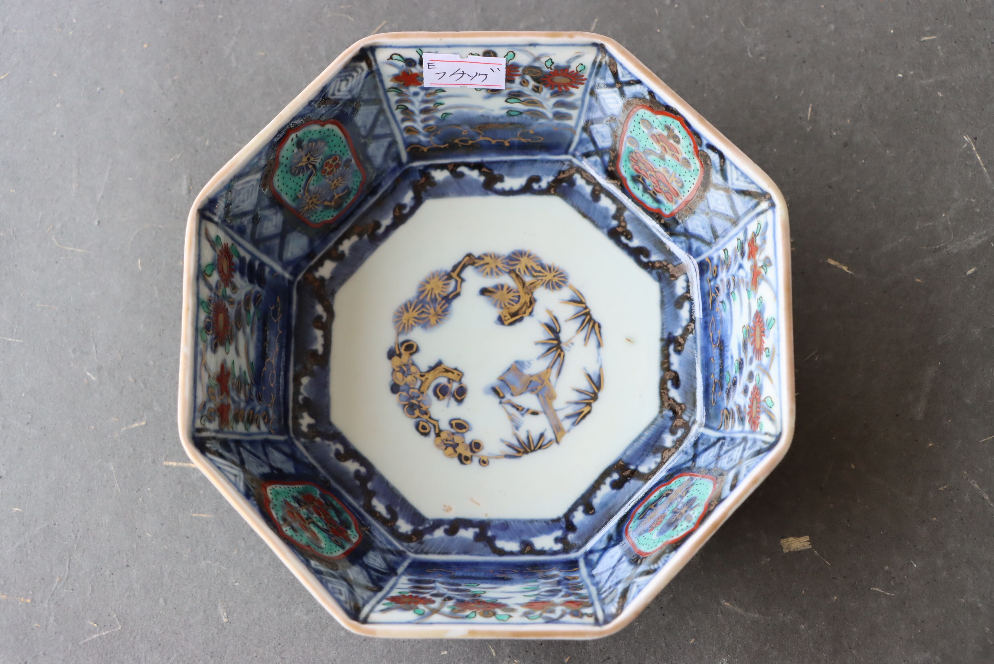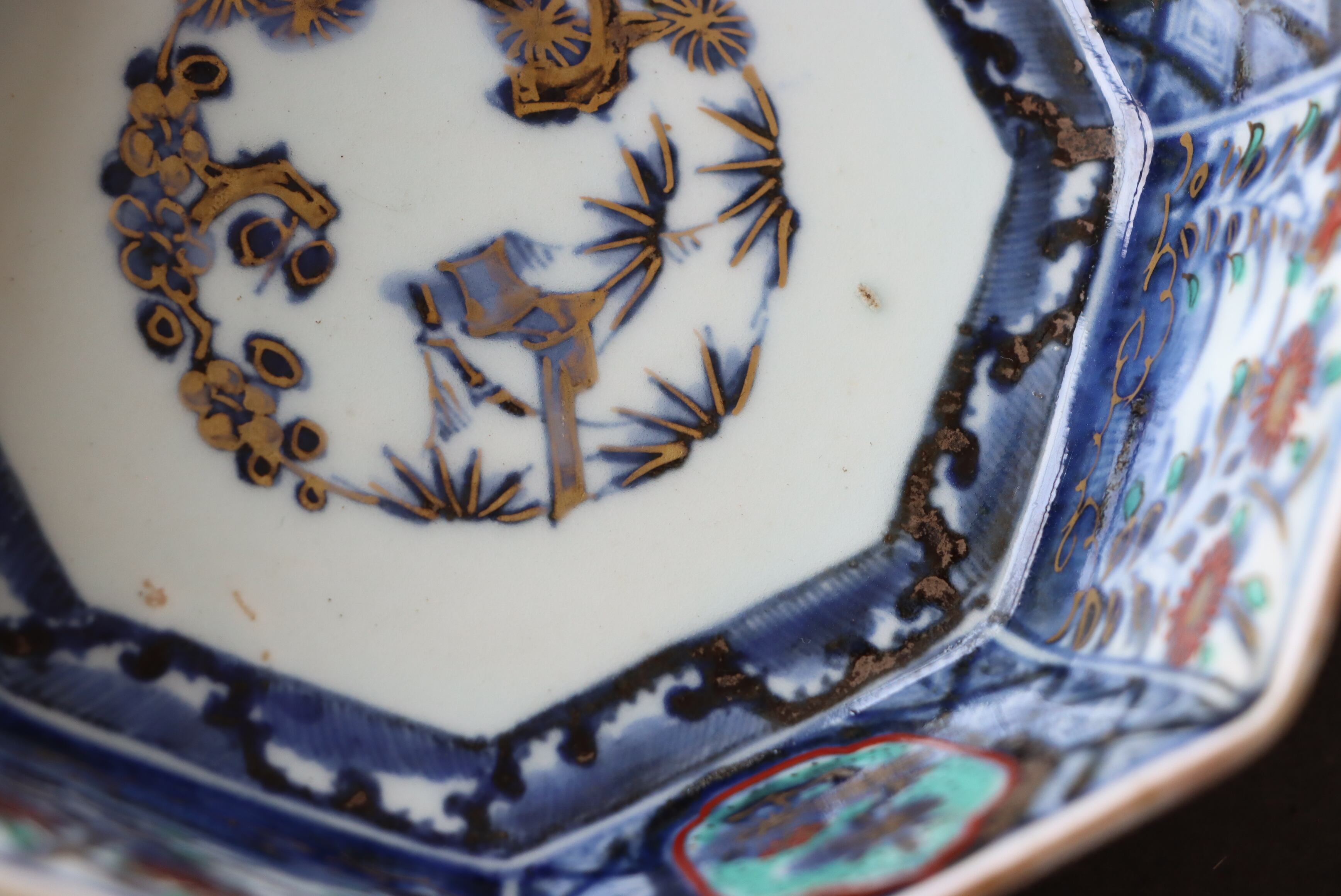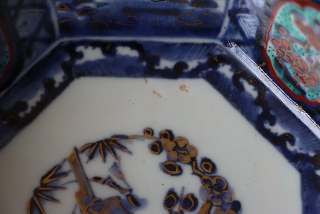 状態:フチソゲ(約0.5センチ)×2あり。また、口縁周囲に施された金彩が剥落、または薄くなっている箇所がございます。普段使い可能です。