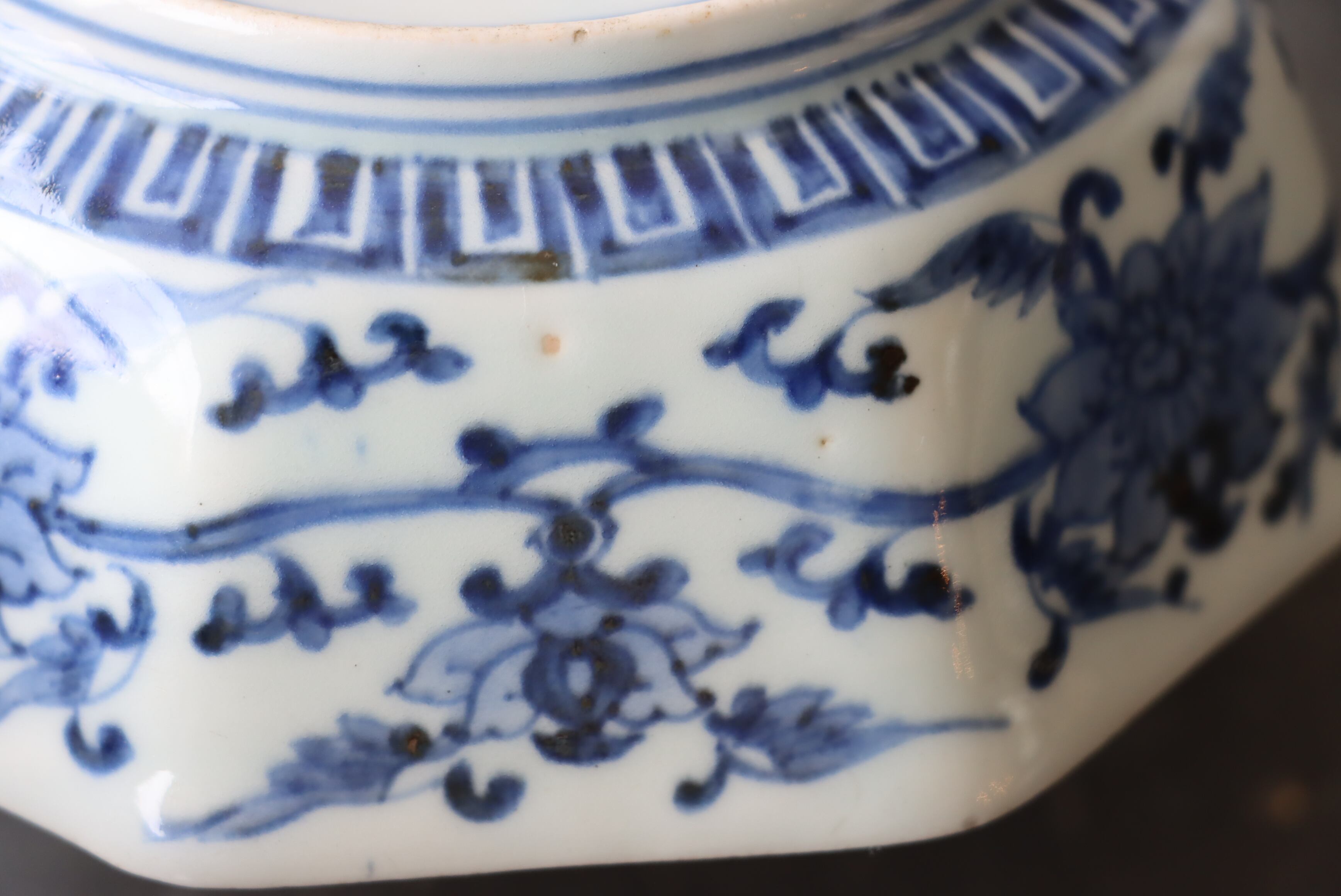 焼成時に窯の中でできる鉄分、くっつき、かまきず、ピンホール、経年による釉薬の薄れがございます。また、一枚一枚手描き、手作りですので器のサイズ(ミリ)、色味、描かれている文様の大きさなど個体差があり、ひとつとして同じものはございません。そういった時代感、個性をご理解いただき、楽しんでくだされば幸いです。電子レンジや食器洗い乾燥機のご使用はお控えください。