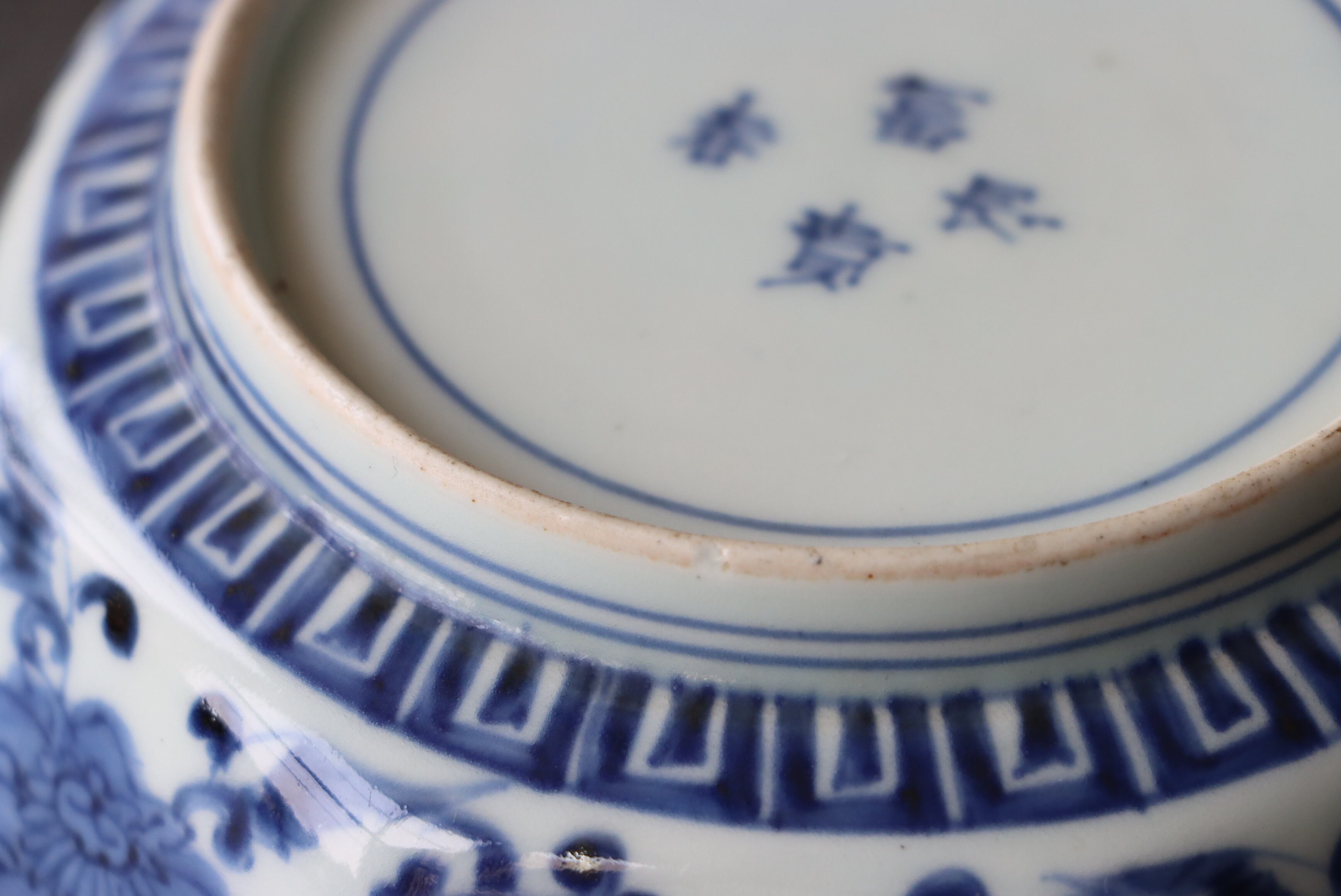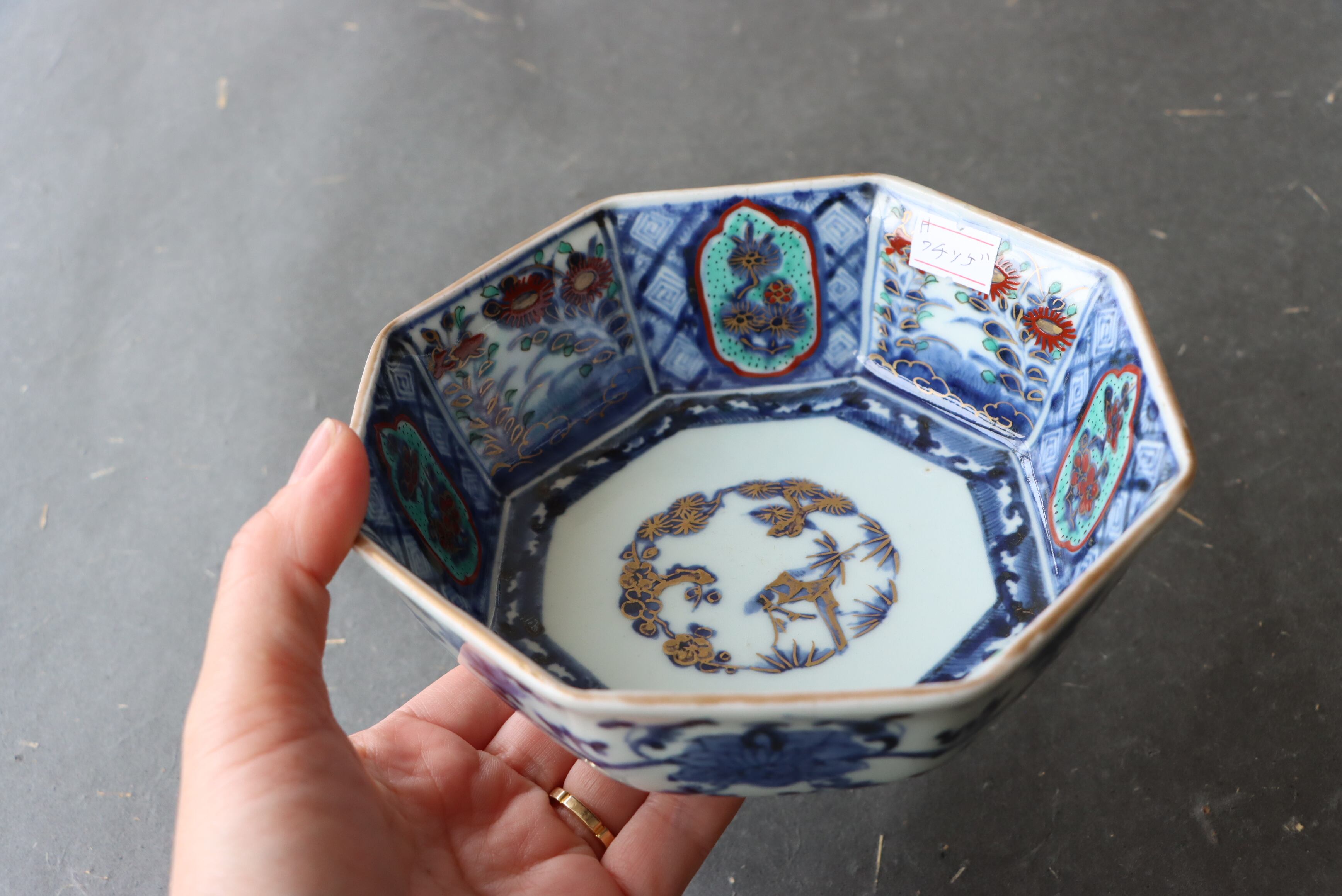 焼成時に窯の中でできる鉄分、くっつき、かまきず、ピンホール、経年による釉薬の薄れがございます。また、一枚一枚手描き、手作りですので器のサイズ(ミリ)、色味、描かれている文様の大きさなど個体差があり、ひとつとして同じものはございません。そういった時代感、個性をご理解いただき、楽しんでくだされば幸いです。電子レンジや食器洗い乾燥機のご使用はお控えください。