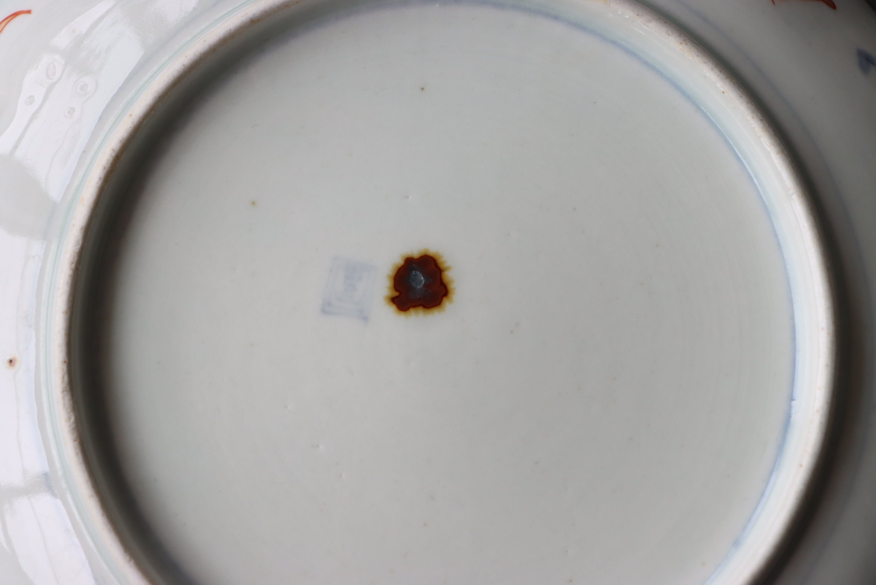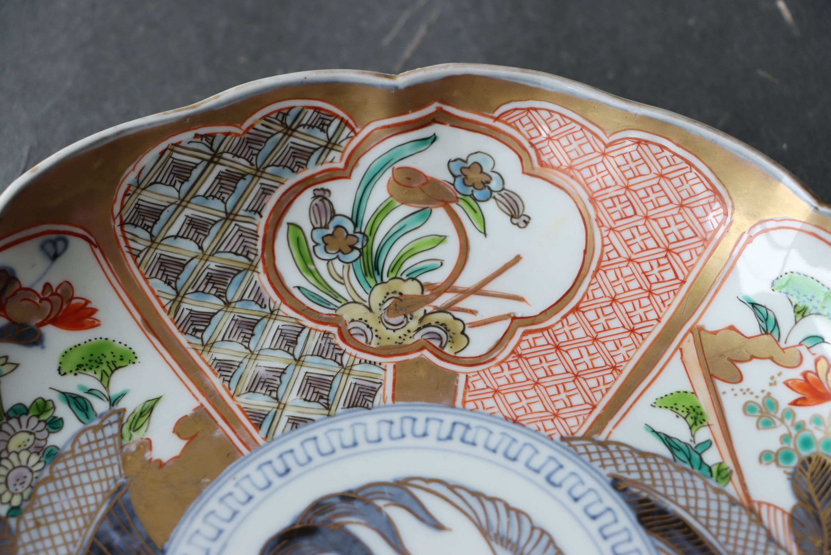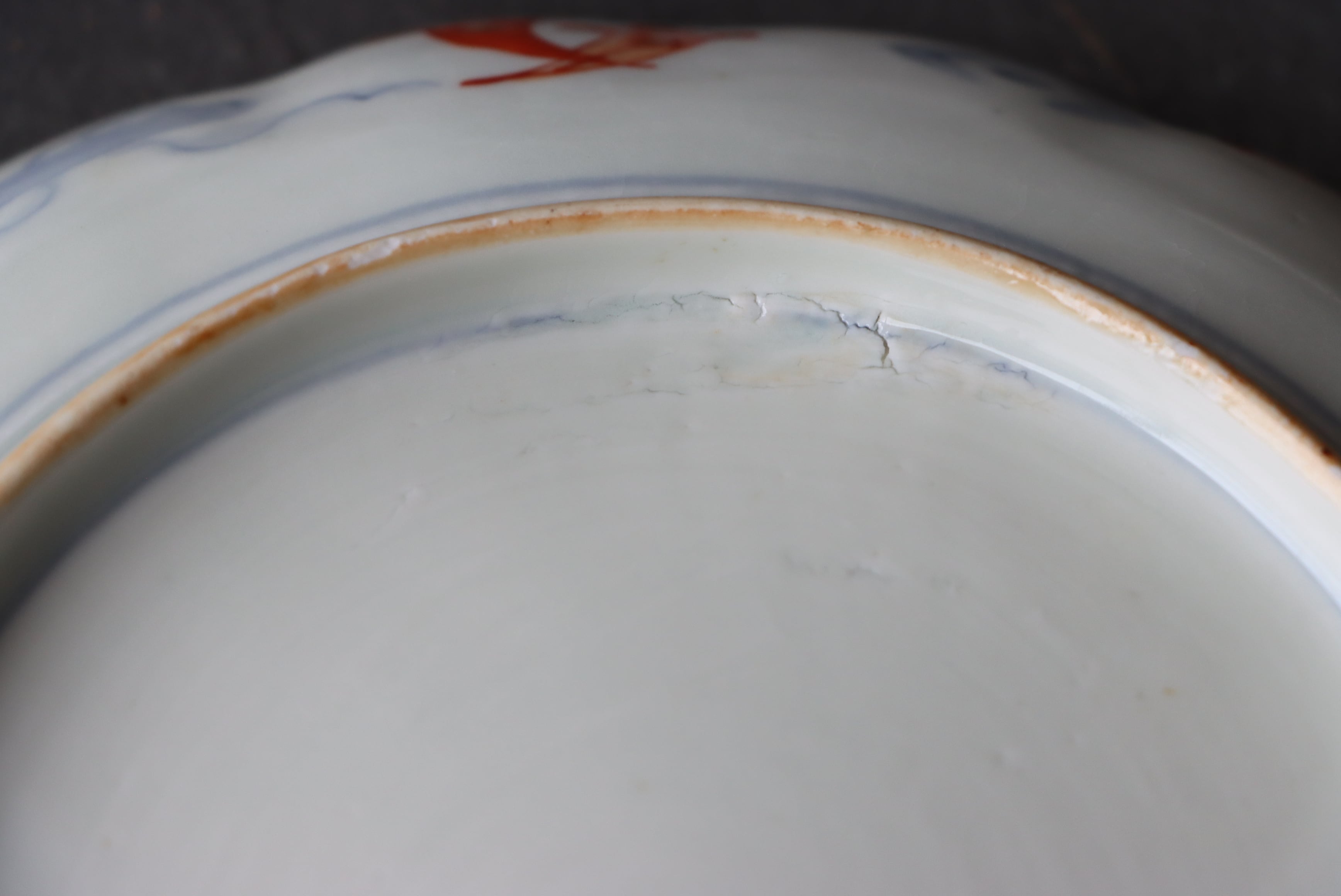 【Imari medium size plate with crane, turtle and flower design in overglaze enamels.】