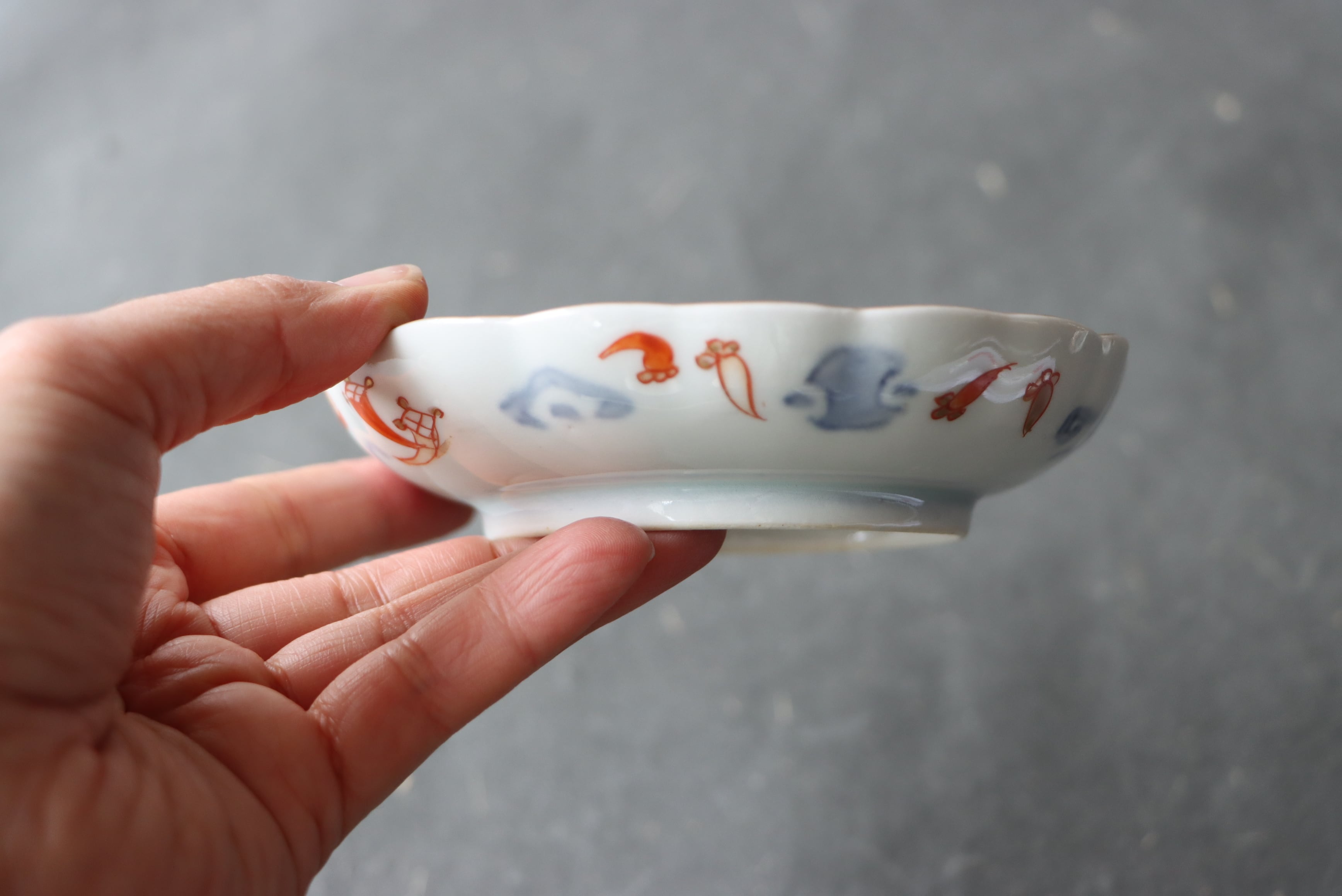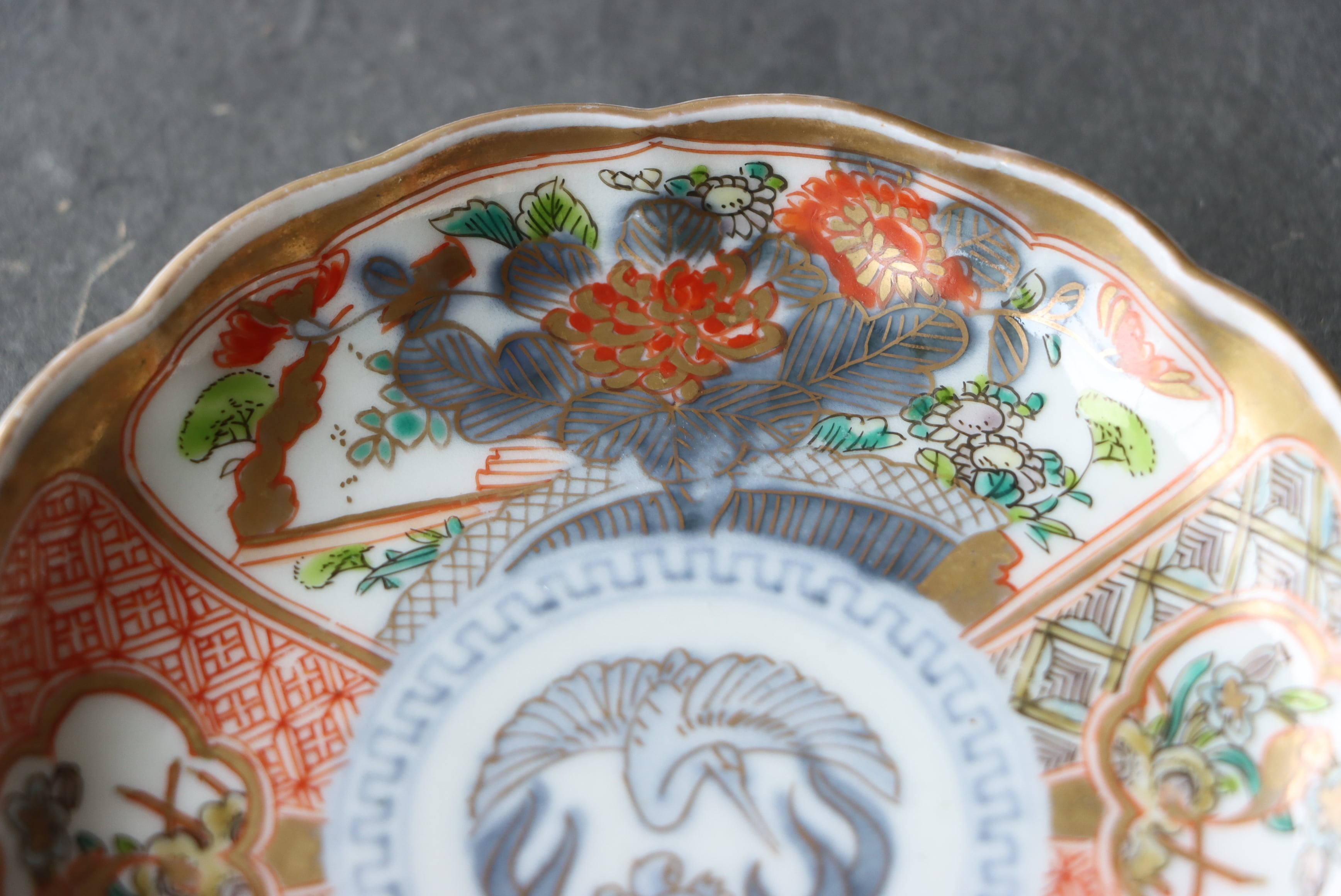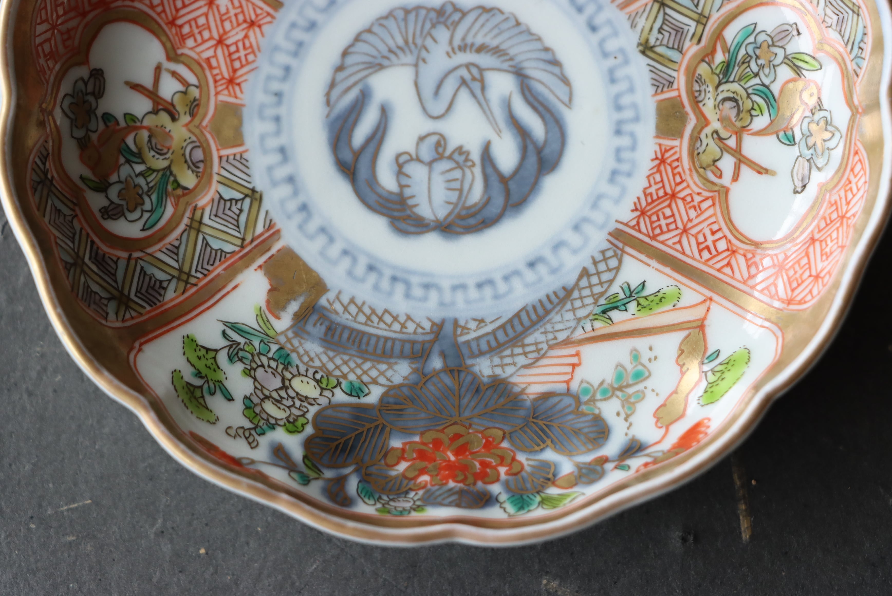 伊万里焼 色絵 鶴亀花鳥文 小皿 通りもの/Imari small size plate