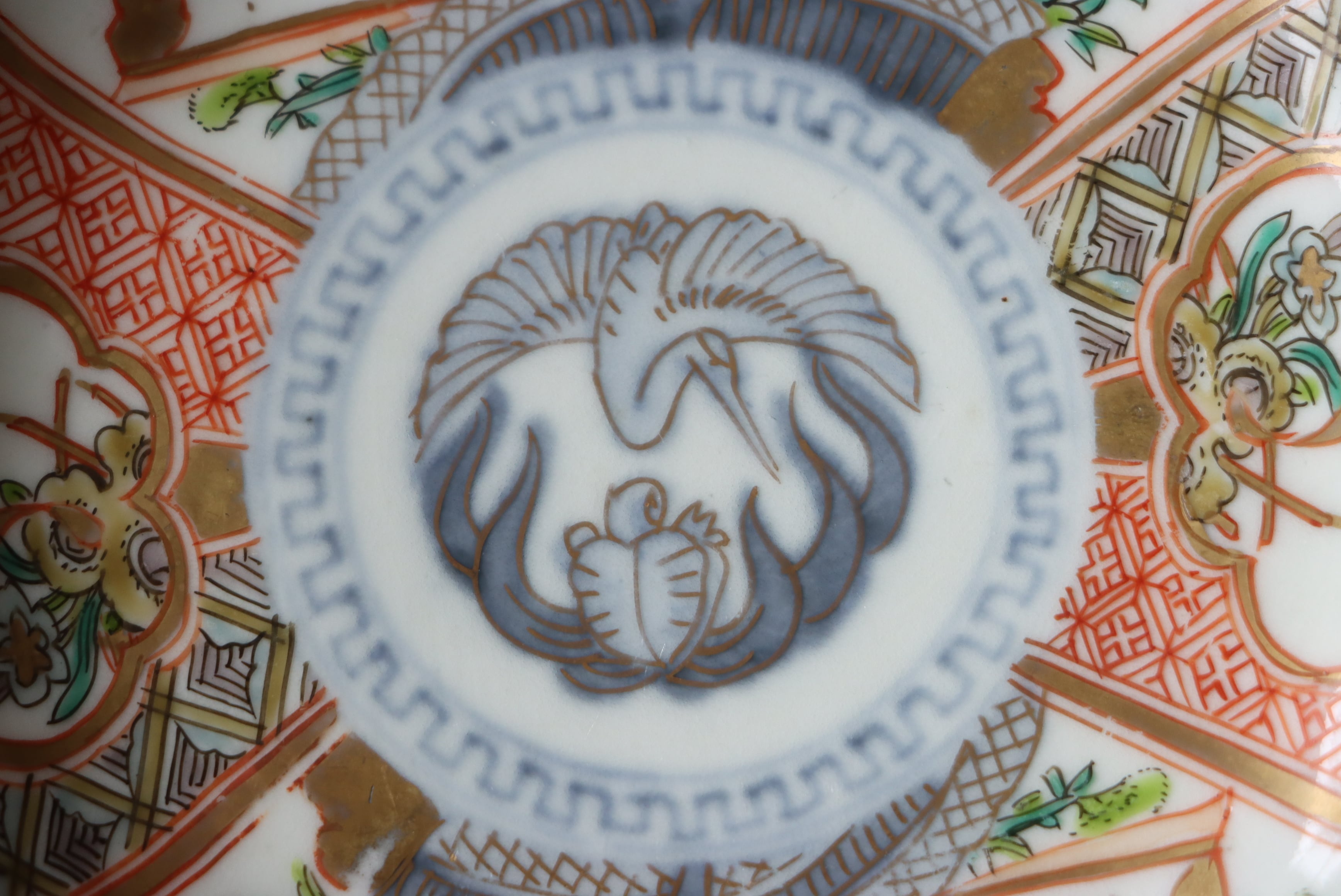 【Imari small size plate with crane, turtle and flower design in overglaze enamels.】