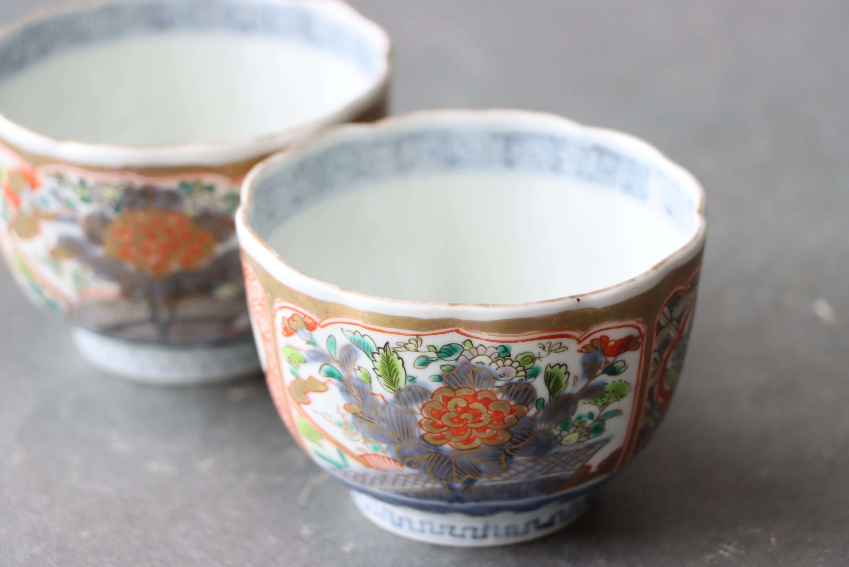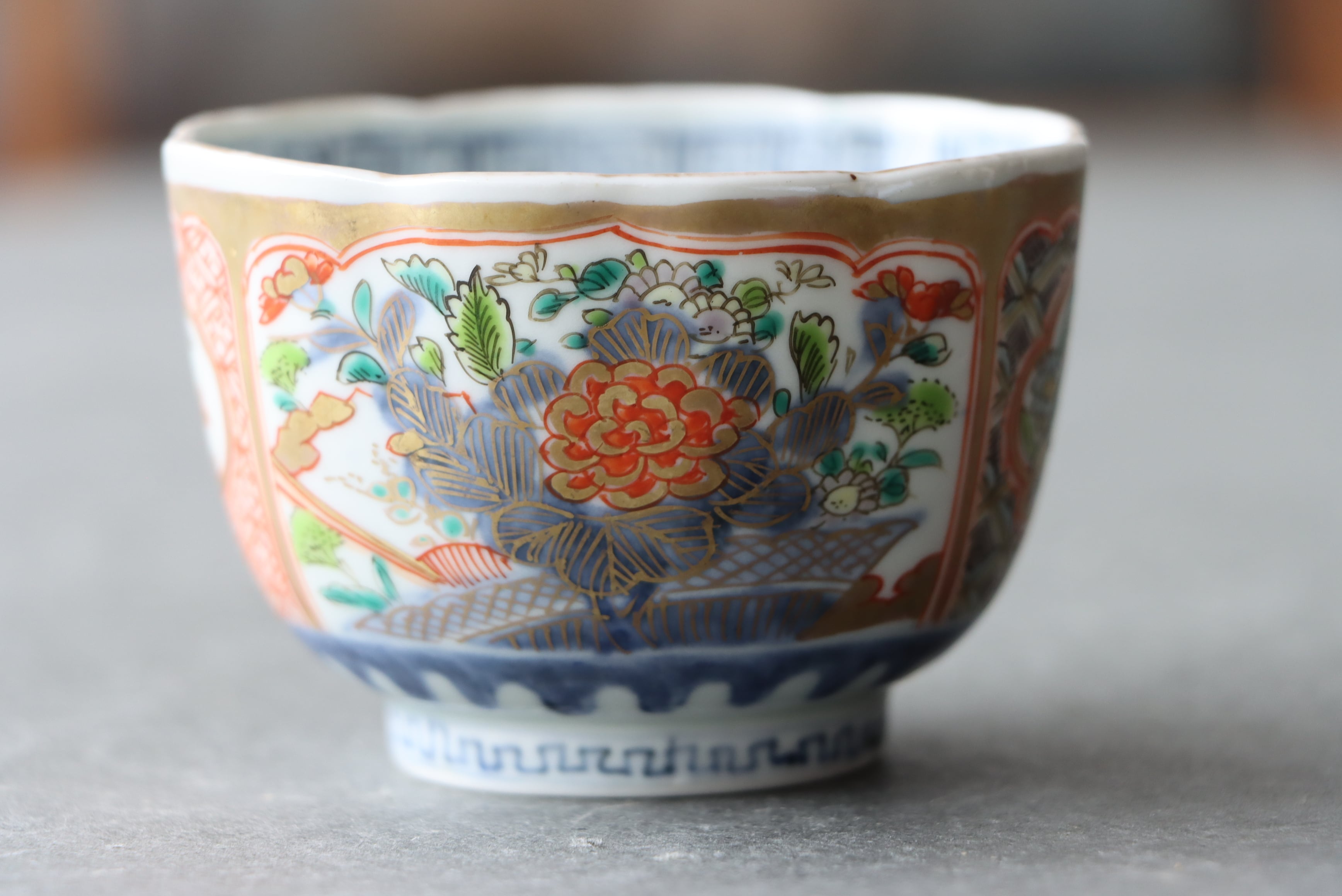 【Imari cup with crane, turtle and flower design in overglaze enamels.】