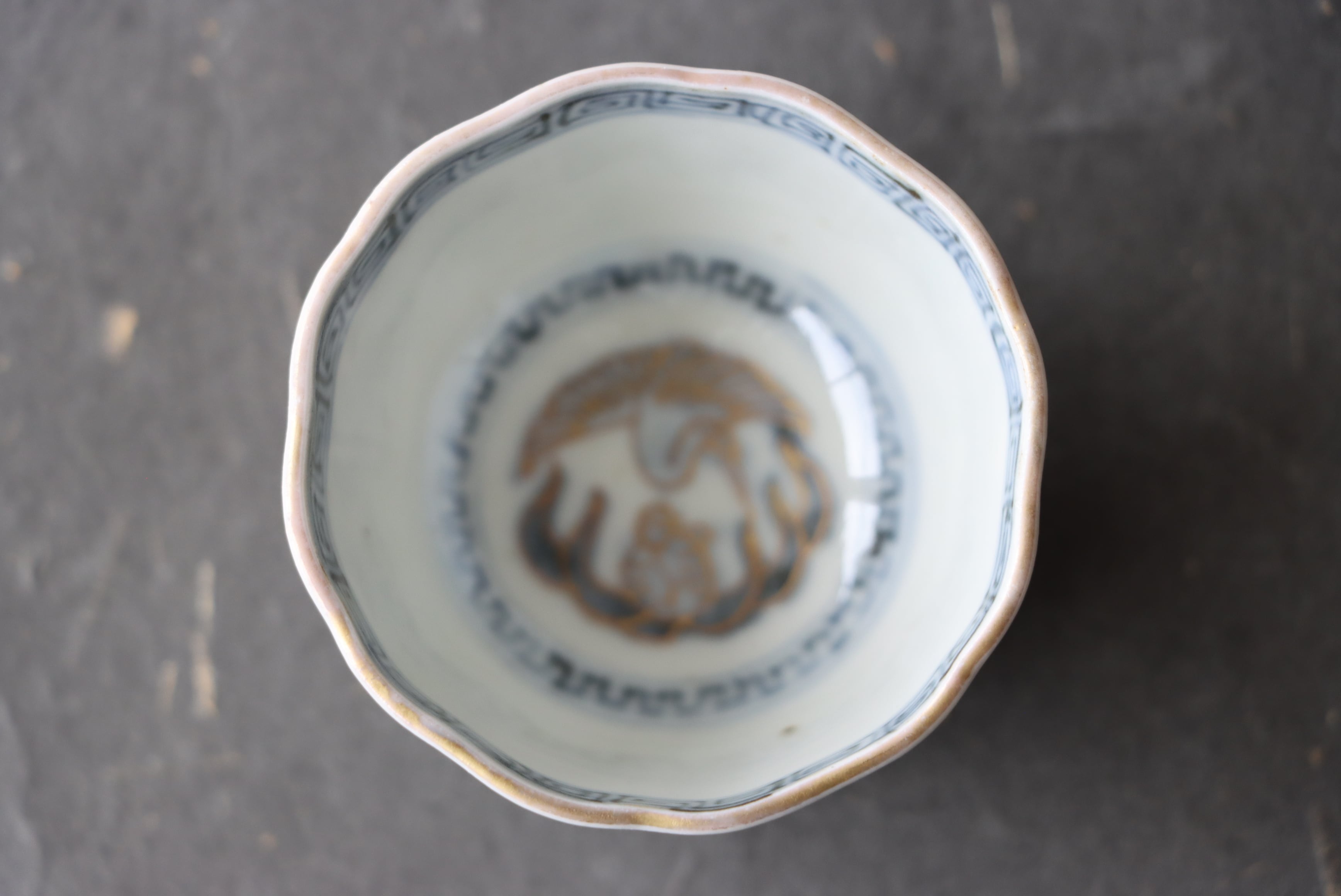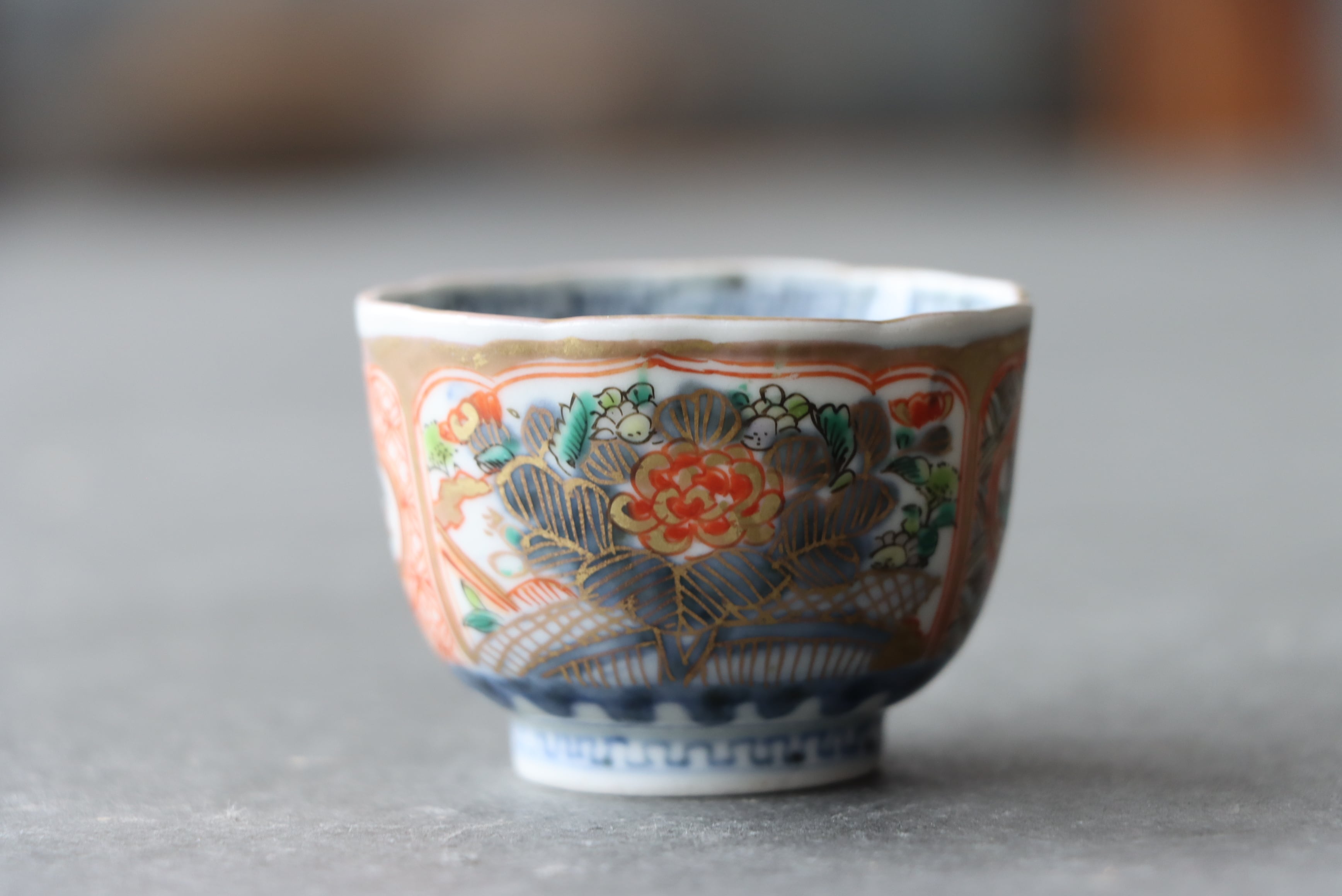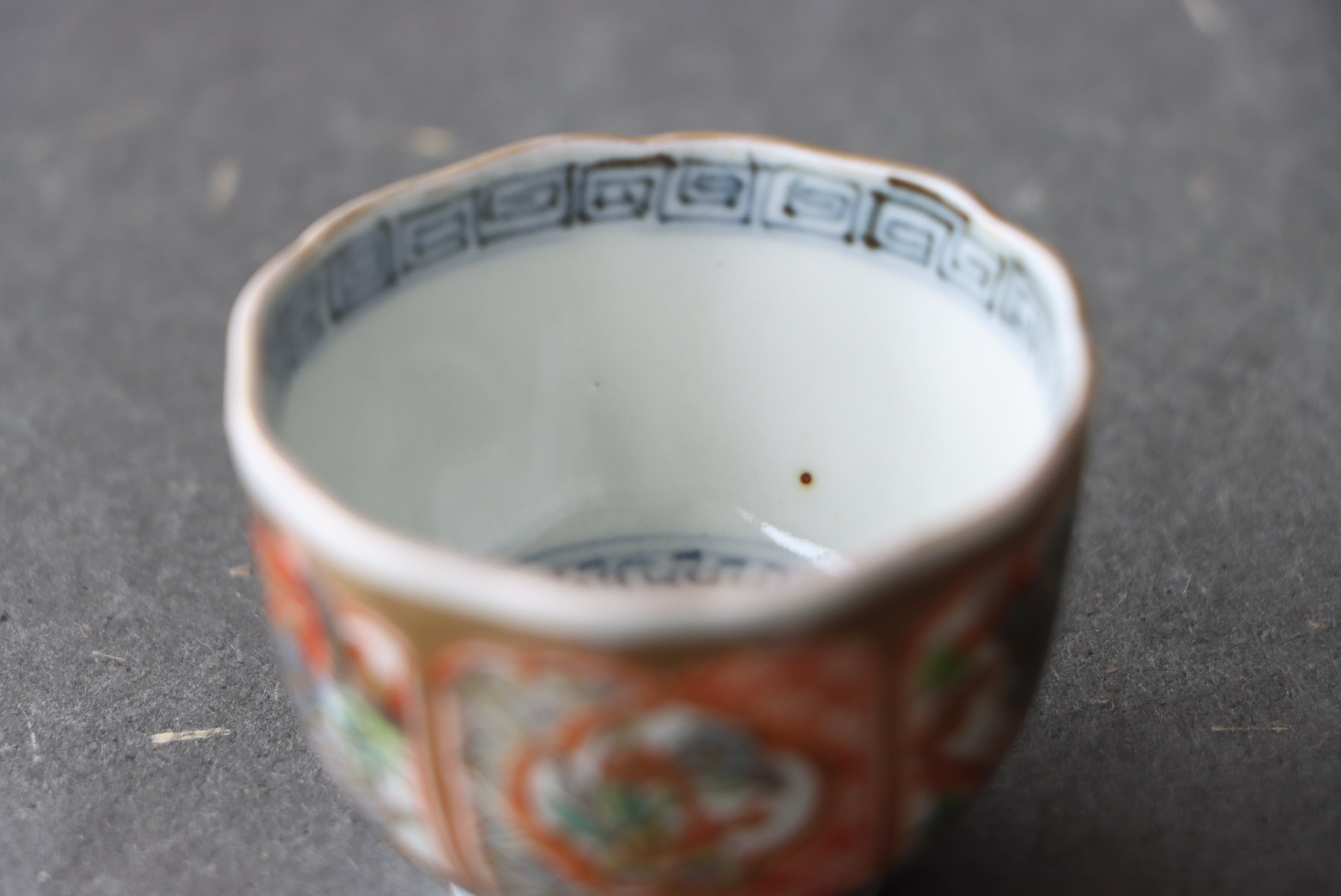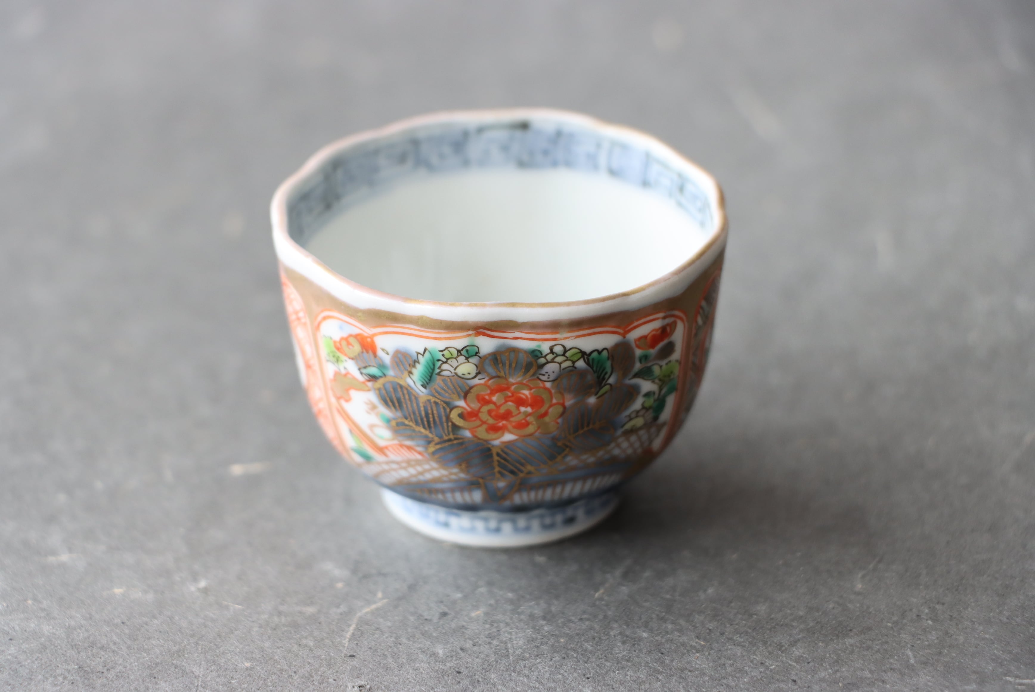 伊万里焼 色絵 鶴亀花鳥文 猪口 通りもの/Imari small cup