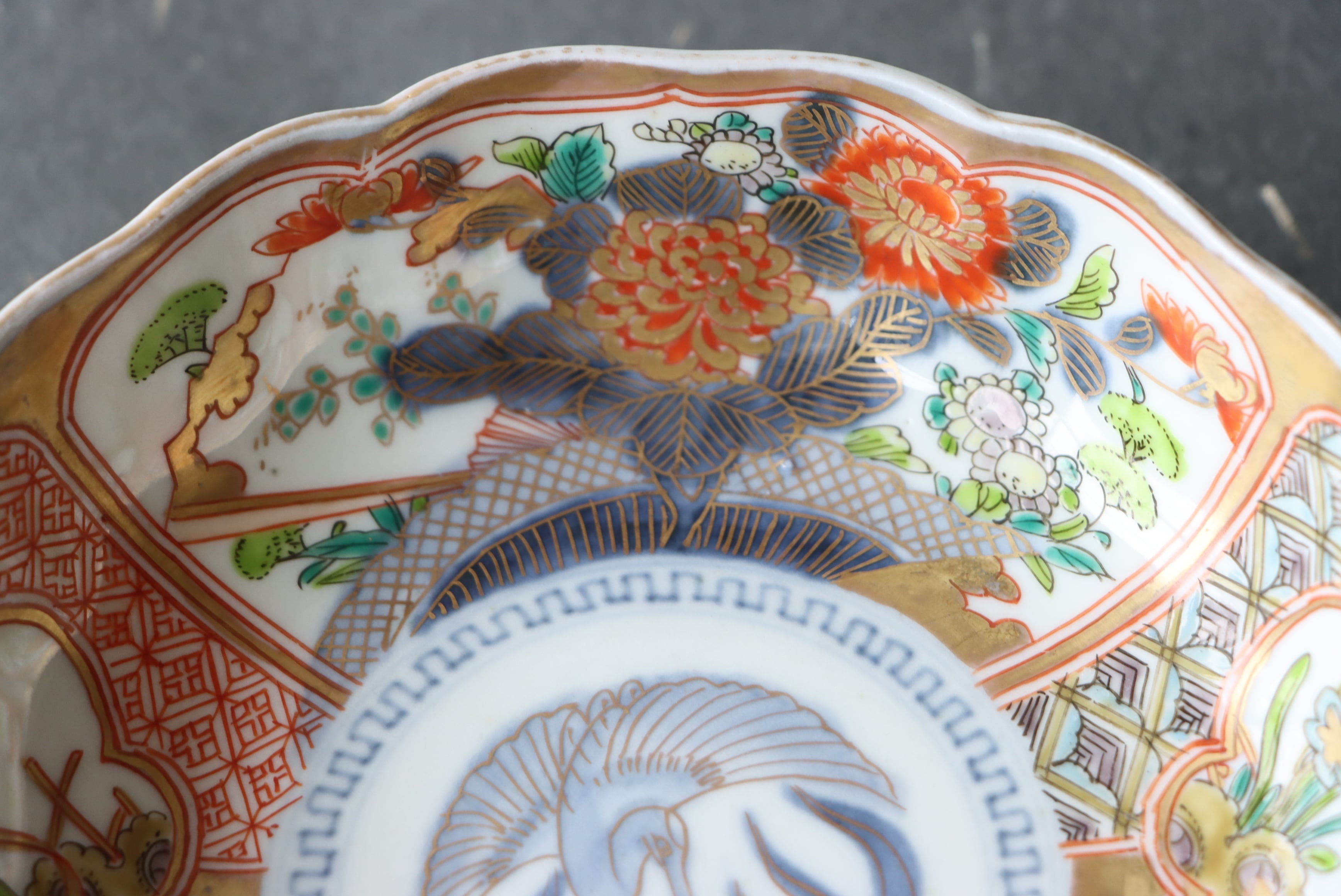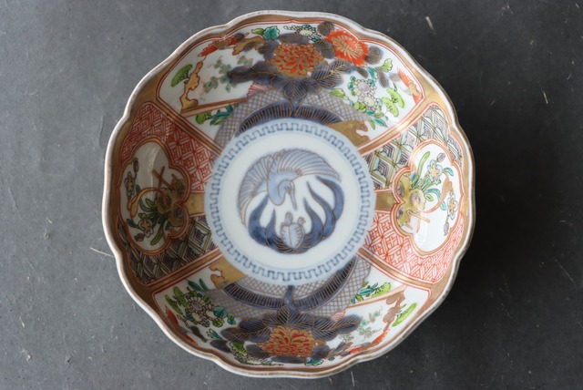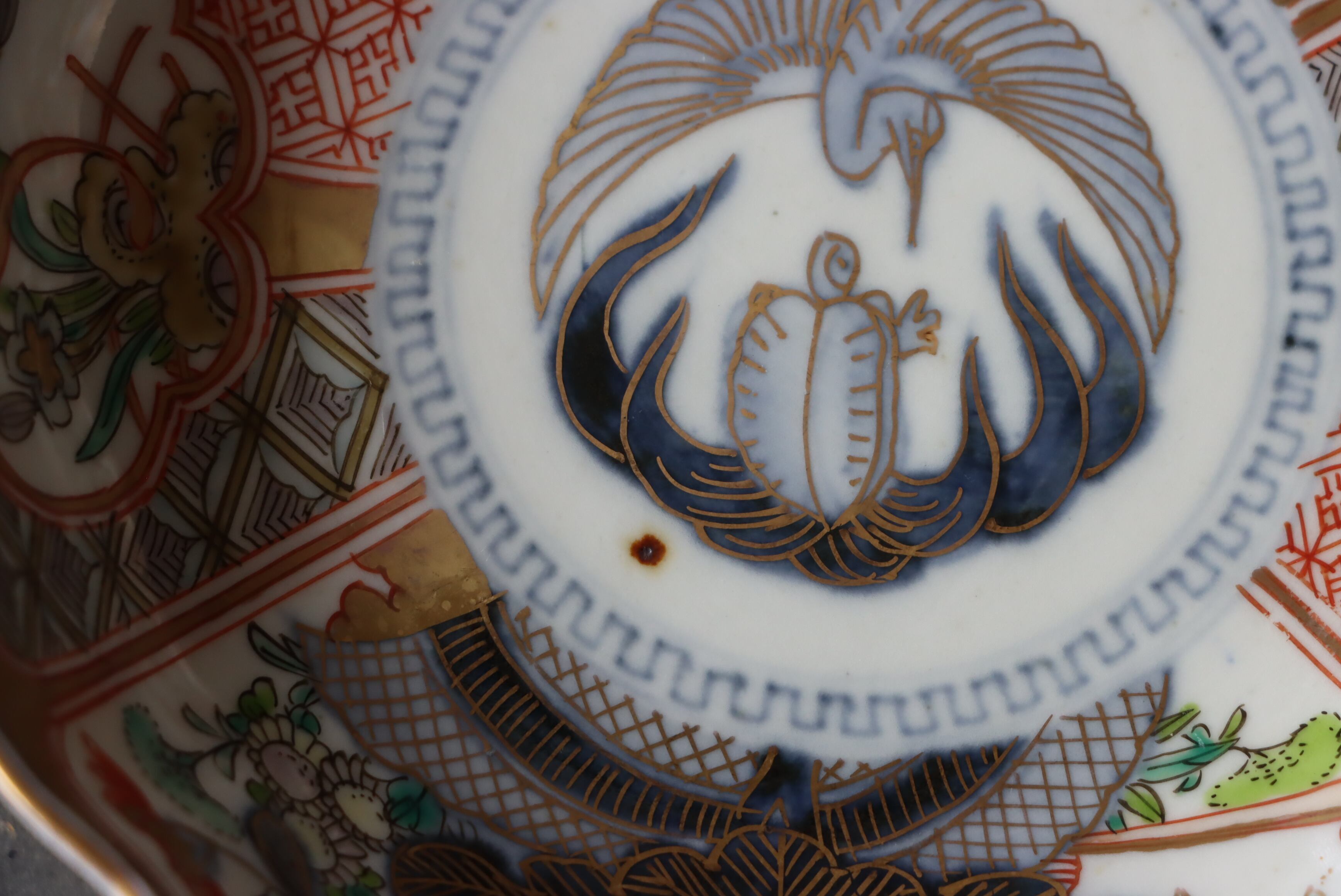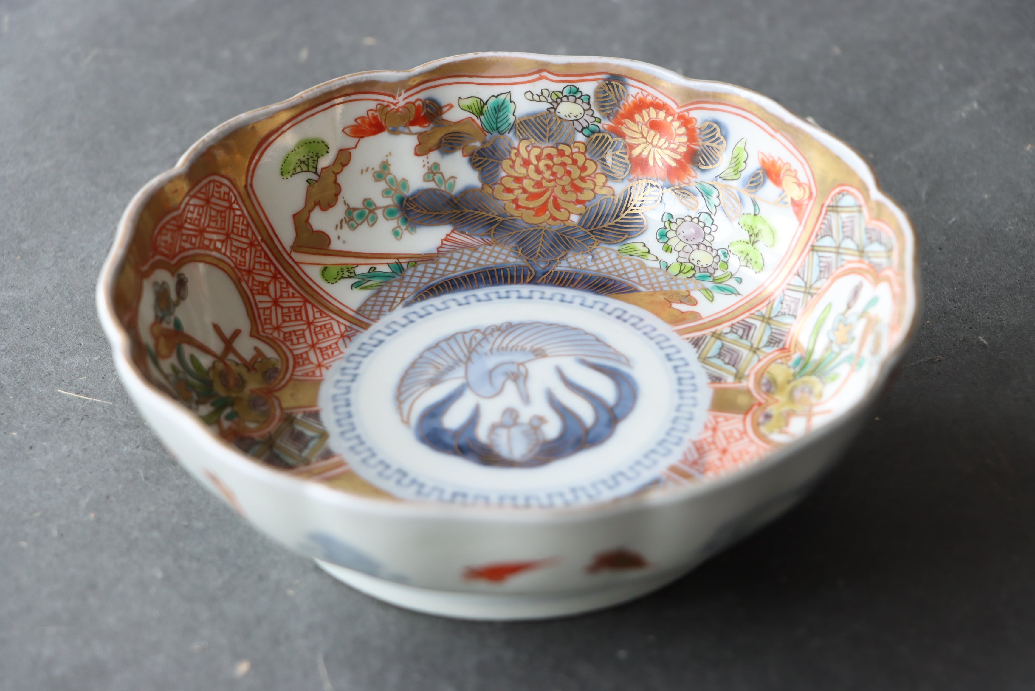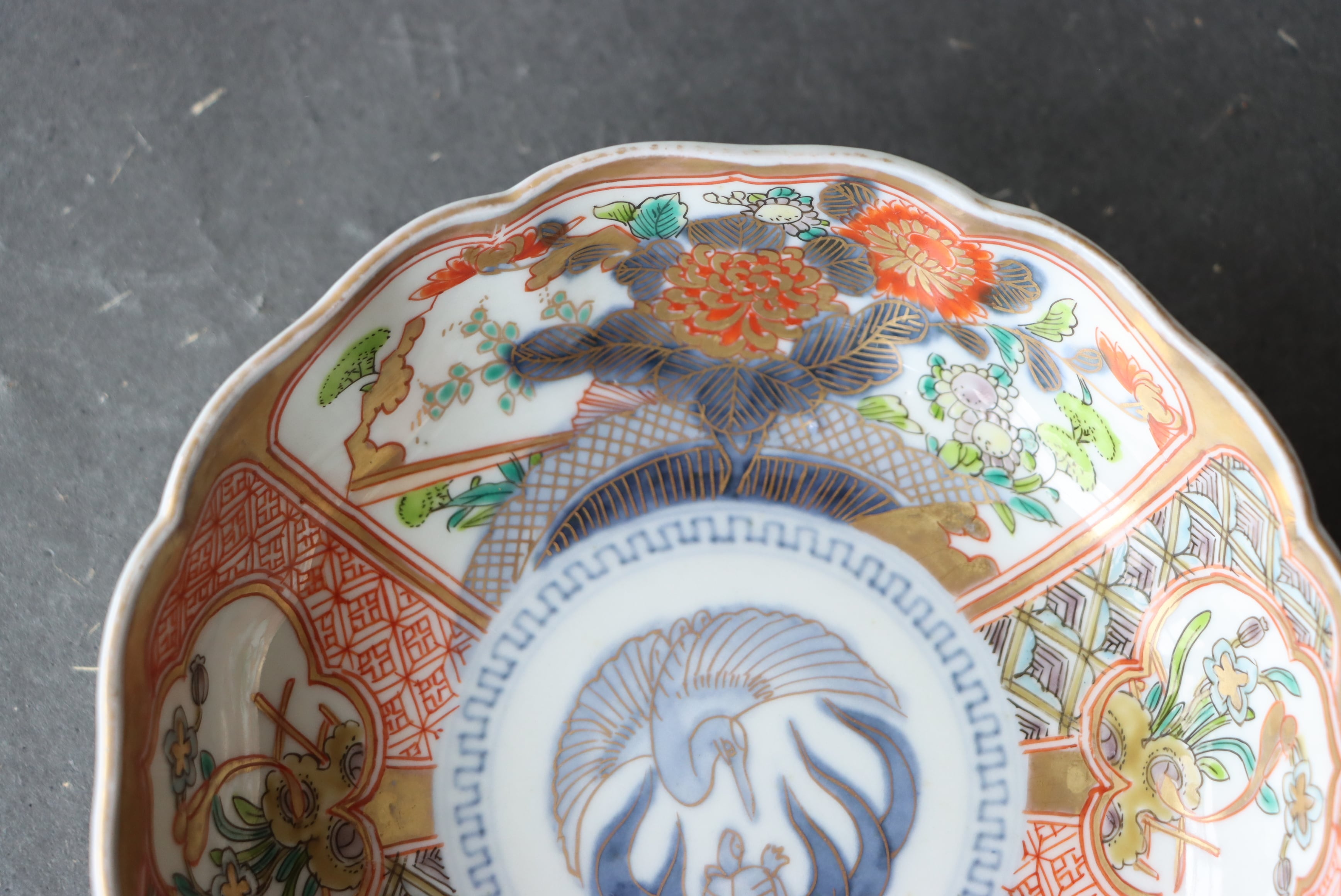 【Imari "Namasu" bowl with crane, turtle and flower design in overglaze enamels.】